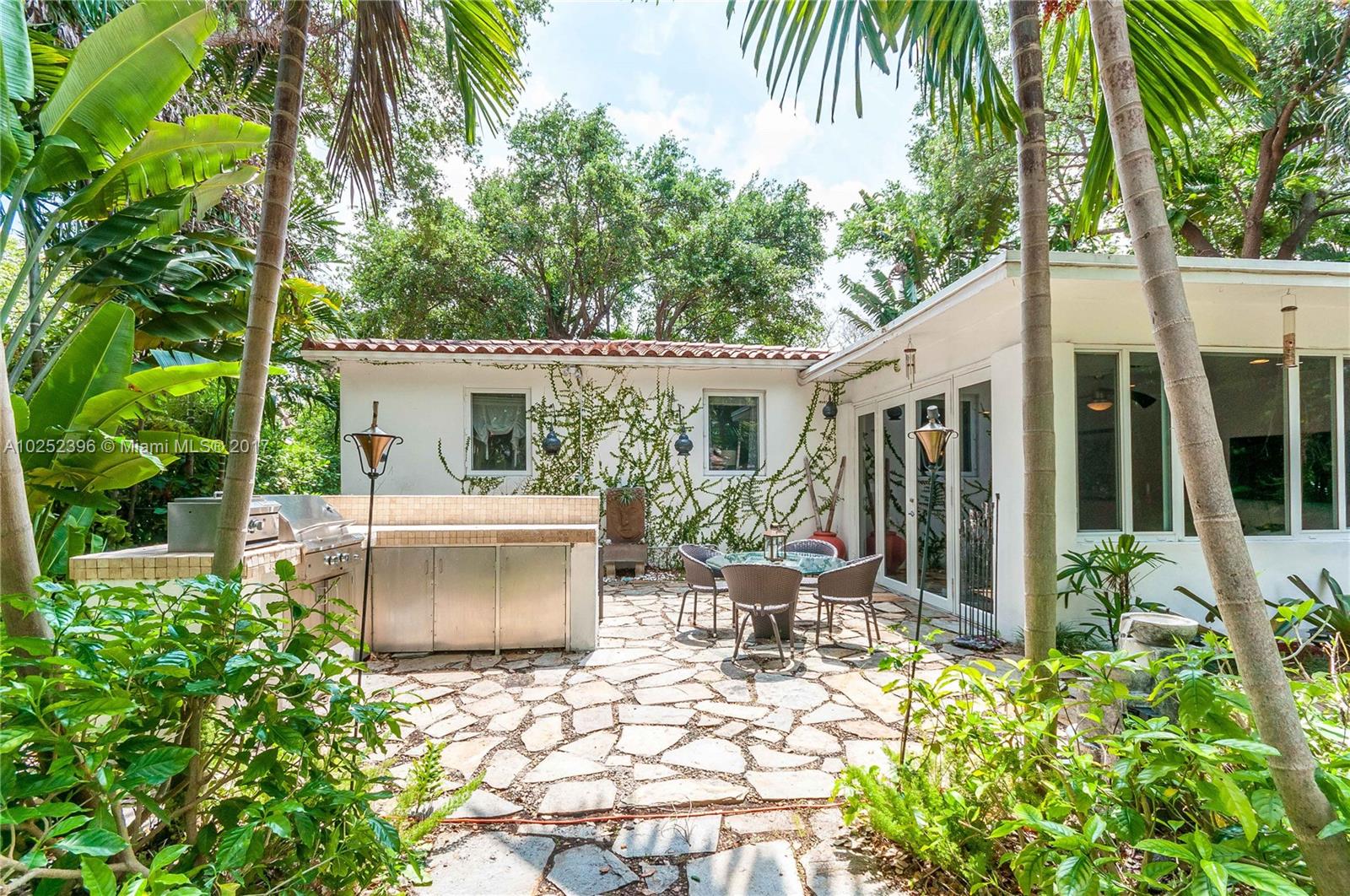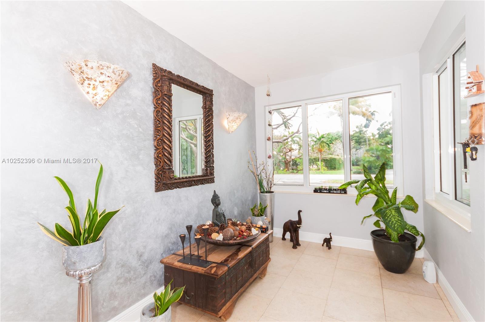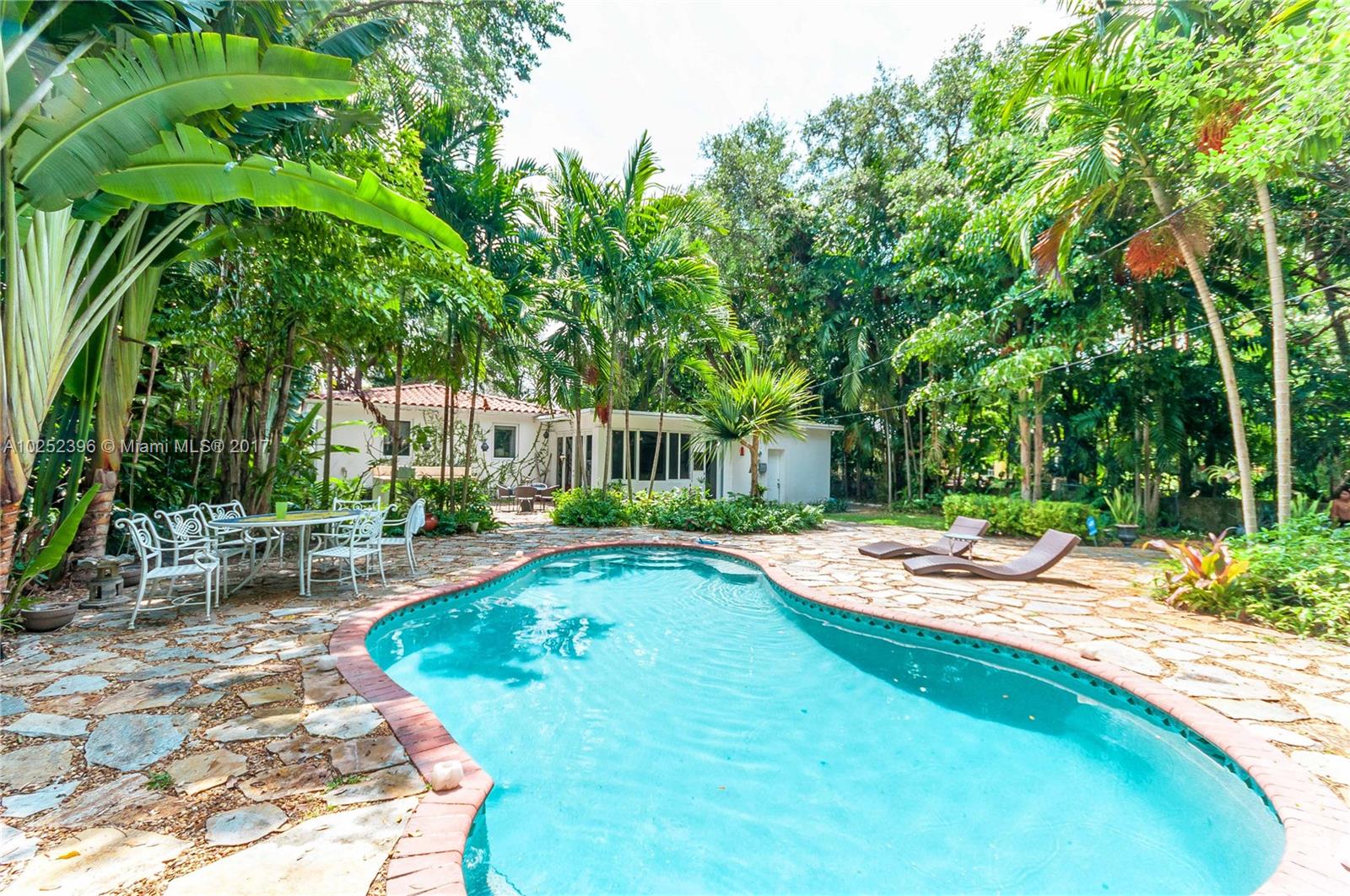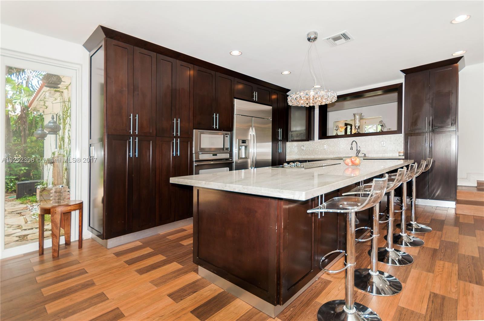 Quaint 1948 home surrounded by luscious landscaping nestled at the end of quiet cul-de-sac street. Located in the heart of Miami Shores this 3 bedrooms, 2 full bathrooms home features an open combined kitchen/family room. The modern kitchen boasts a large marble island with stainless steel appliances. This picturesque combo overlooks the spacious backyard and pool and patio ideal for entertainment with a mini outdoor kitchen, bar, and built in bbq. New hurricane impact windows. It is a must see!