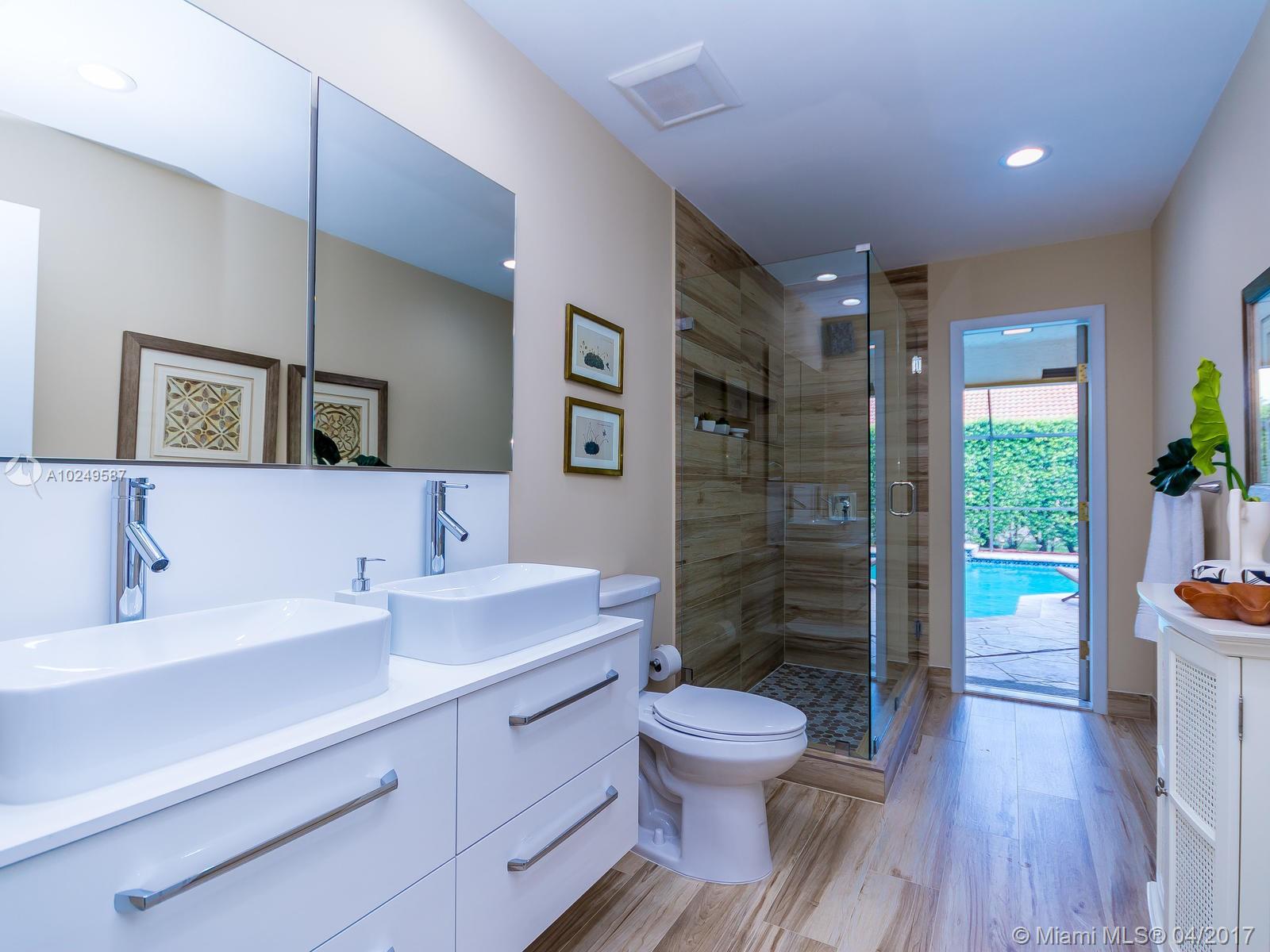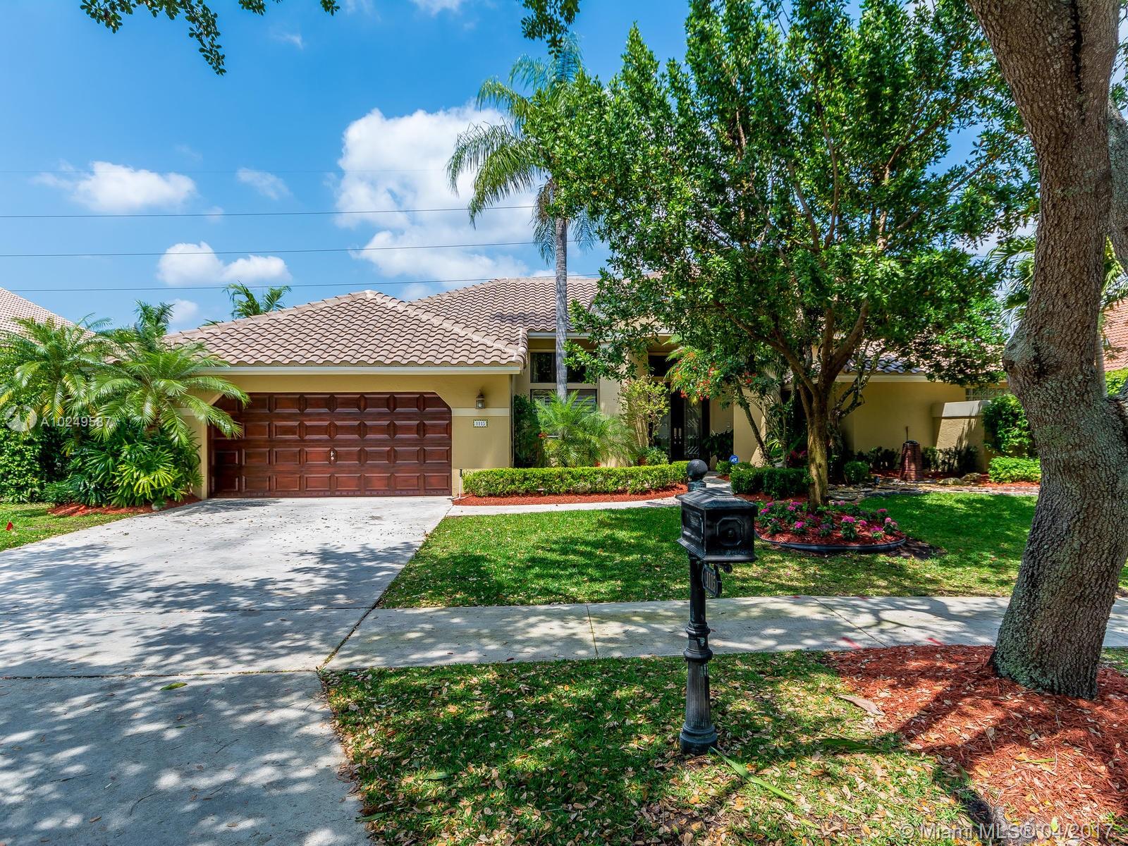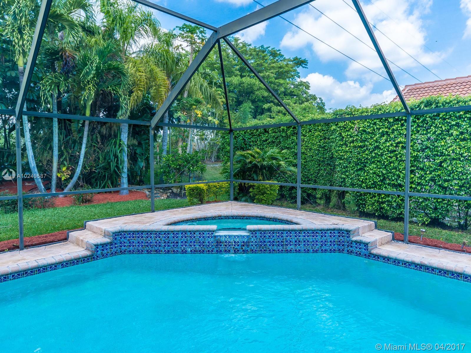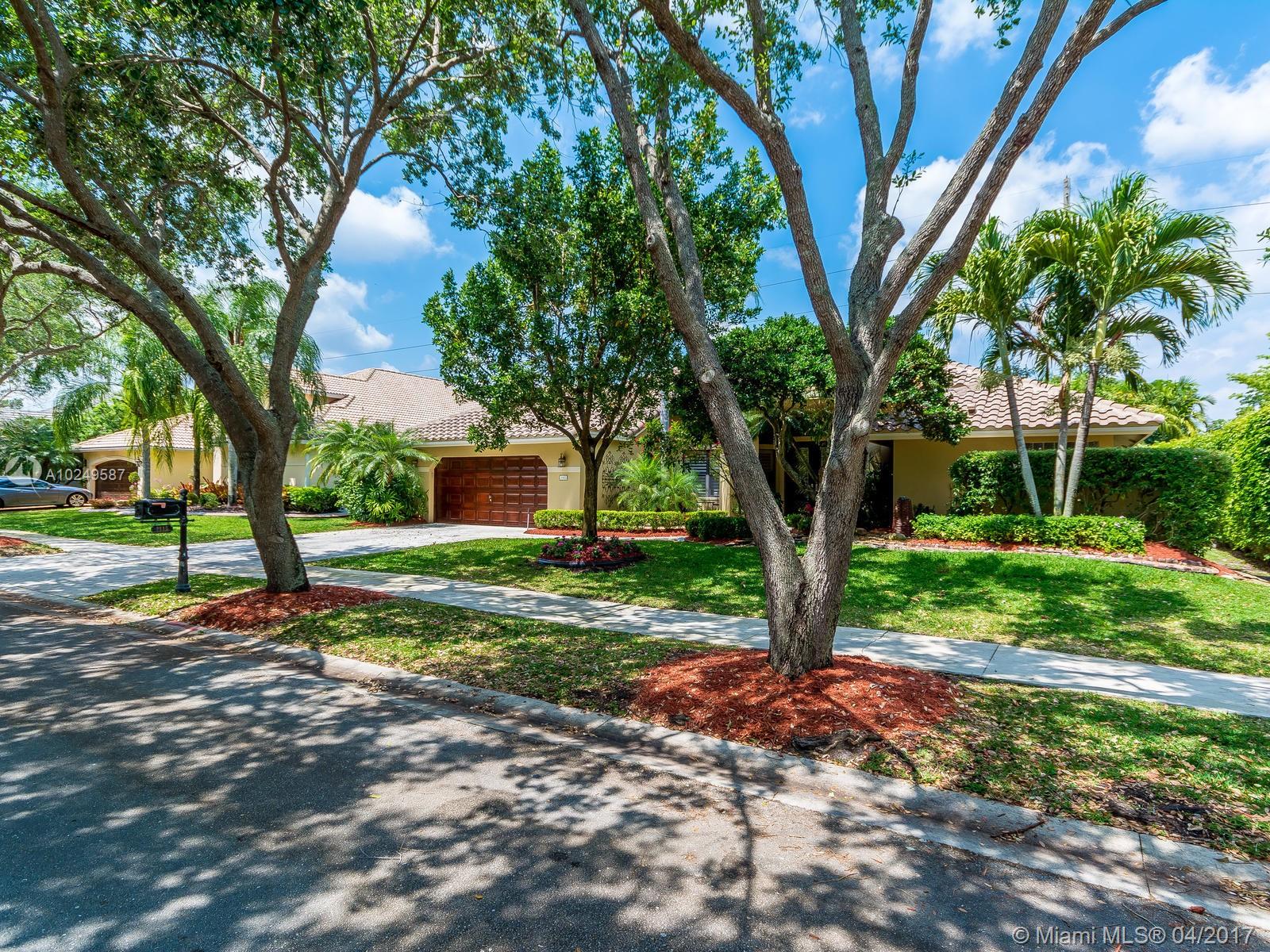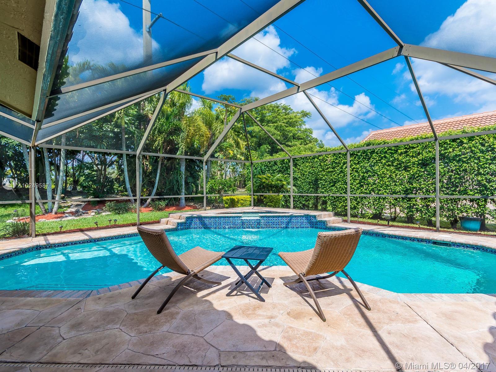 Beautifully maintained, completely renovated 5/3/2CG situated in charming boutique Weston comm! Large granite/wood kitchen, stainless appli, long snack bar, stone tile in living areas. 3-split floor plan, newer roof, LED lights, no popcorn/flat walls, freshly painted inside & out, newer air conditioner, custom closets, stunning updated bathrooms, w/heated pool, raised spa,lush landscaping in a totally private setting! Magnificent Peace Mound Park close by, 24HR guard gate, A+ Schools. WELCOME HOME!