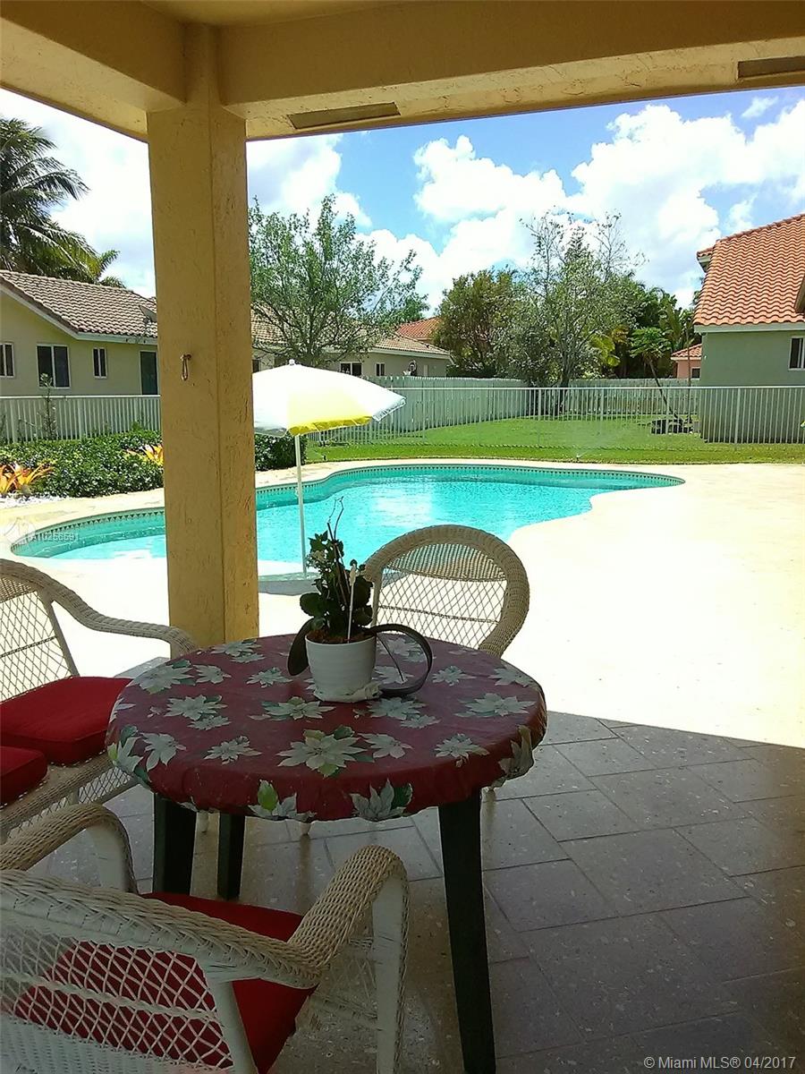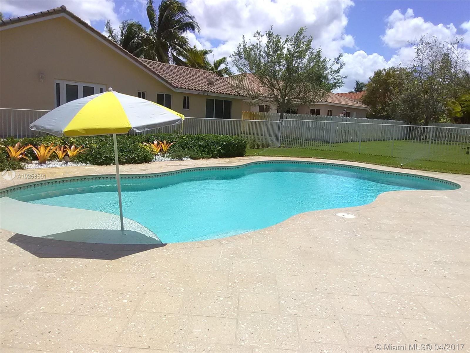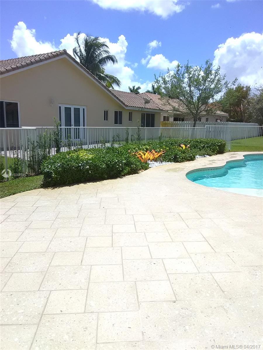 Jewel of property located in the most desire neighborhood of Miramar. Completely renovated & immaculate 3/2 + DEN, 1 story house. 2017: new granite counter top.2016: new 4 tons A/C ,new interior painting, new laminated floors and new tiles in living area.2015: new SS kitchen appliances.2011:new S tile roof, new rain gutters,new shellock artist pavers,new exterior painting.2008:New freedom form salt pool 18x30. Crown molding-fully framed.Grand vaulted ceiling in foyer and family, master and cabana bath completely remodeled,travertine floors, large high efficiency washer and dryer, electric 2014: tankless water heater.internal circuit sound system.Complete hurricane panel 2012:Professional finishing on garage and doors.Ceiling fans in all rooms. Excellent A+ school. Low maintenance!