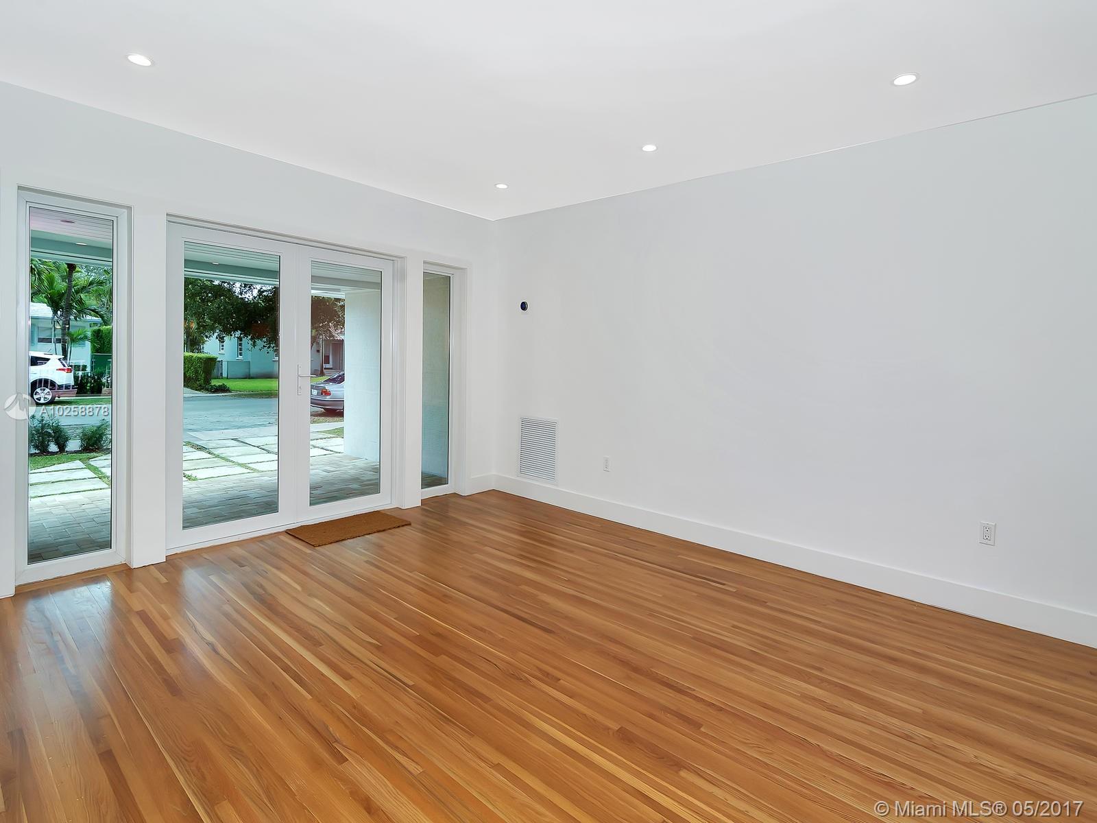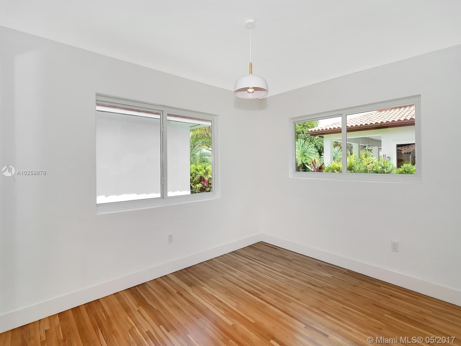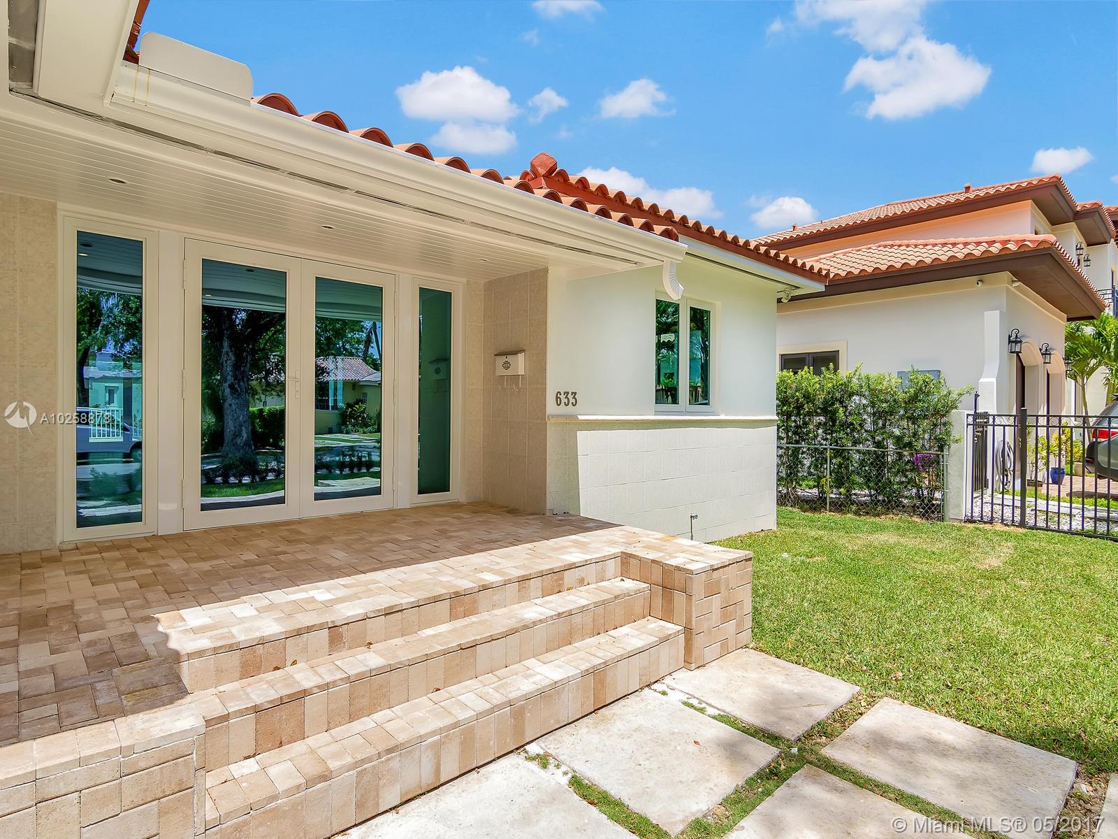 Priced for Immediate Sale! Clean Modern Lines Define this well located Tastefully Updated, North Gables Home. A Wide Covered Porch leads to a Double Door Entry and the warm Light Filled Open Spacious Floor Plan. The Master Suite is split and positioned at the rear to provide the utmost in privacy. An Air Conditioned Laundry Room w/ Storage or Pantry is adjacent to the Kt. The bonus Rm has access to the rear covered patio and is ideal for an office/den or playroom. This home provides New Impact Windows and Doors, New Modern Kitchen, New High Efficiency Central A/C. New Impact Garage Door. Easy to show, please see Broker Remarks.
