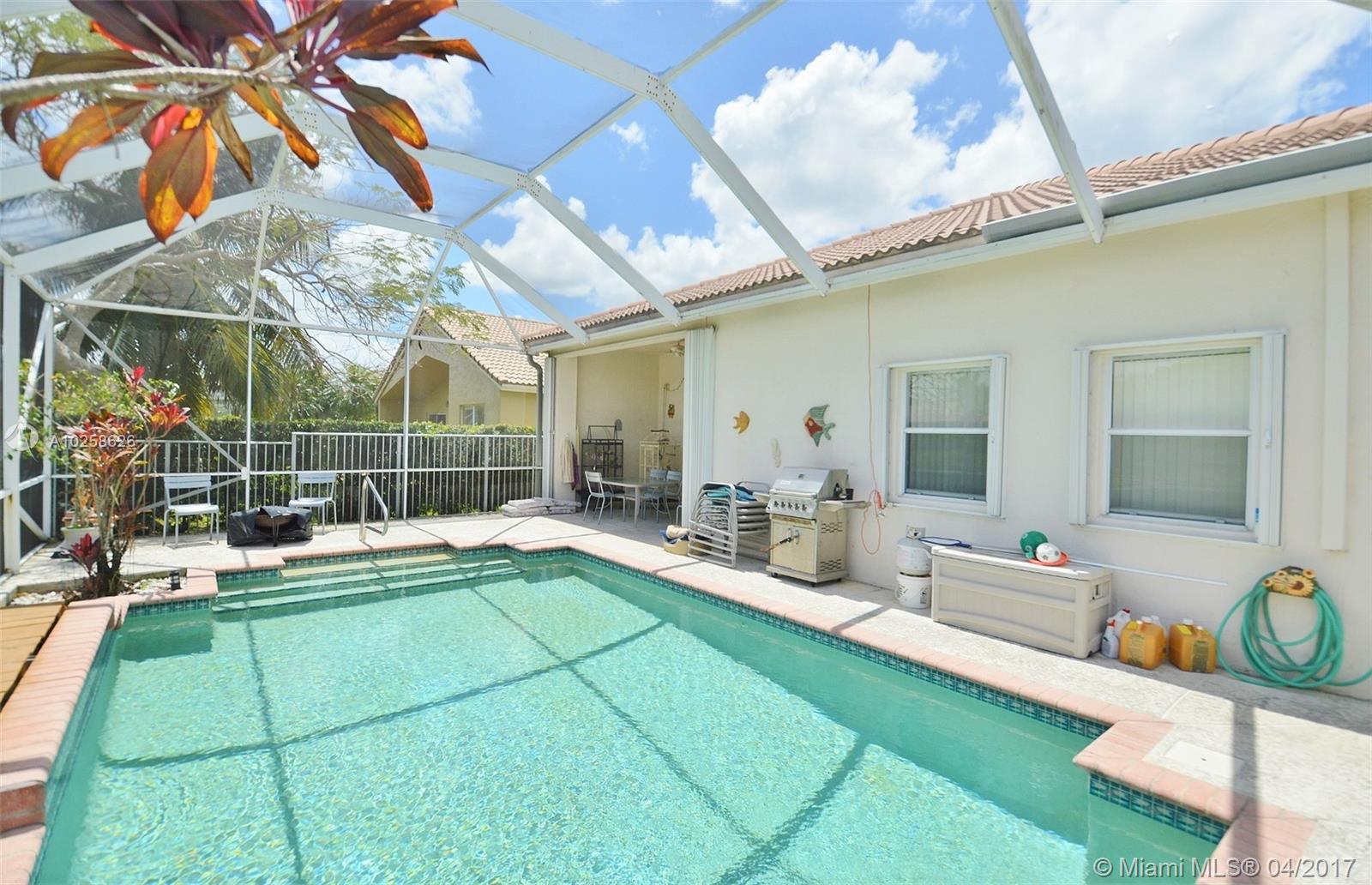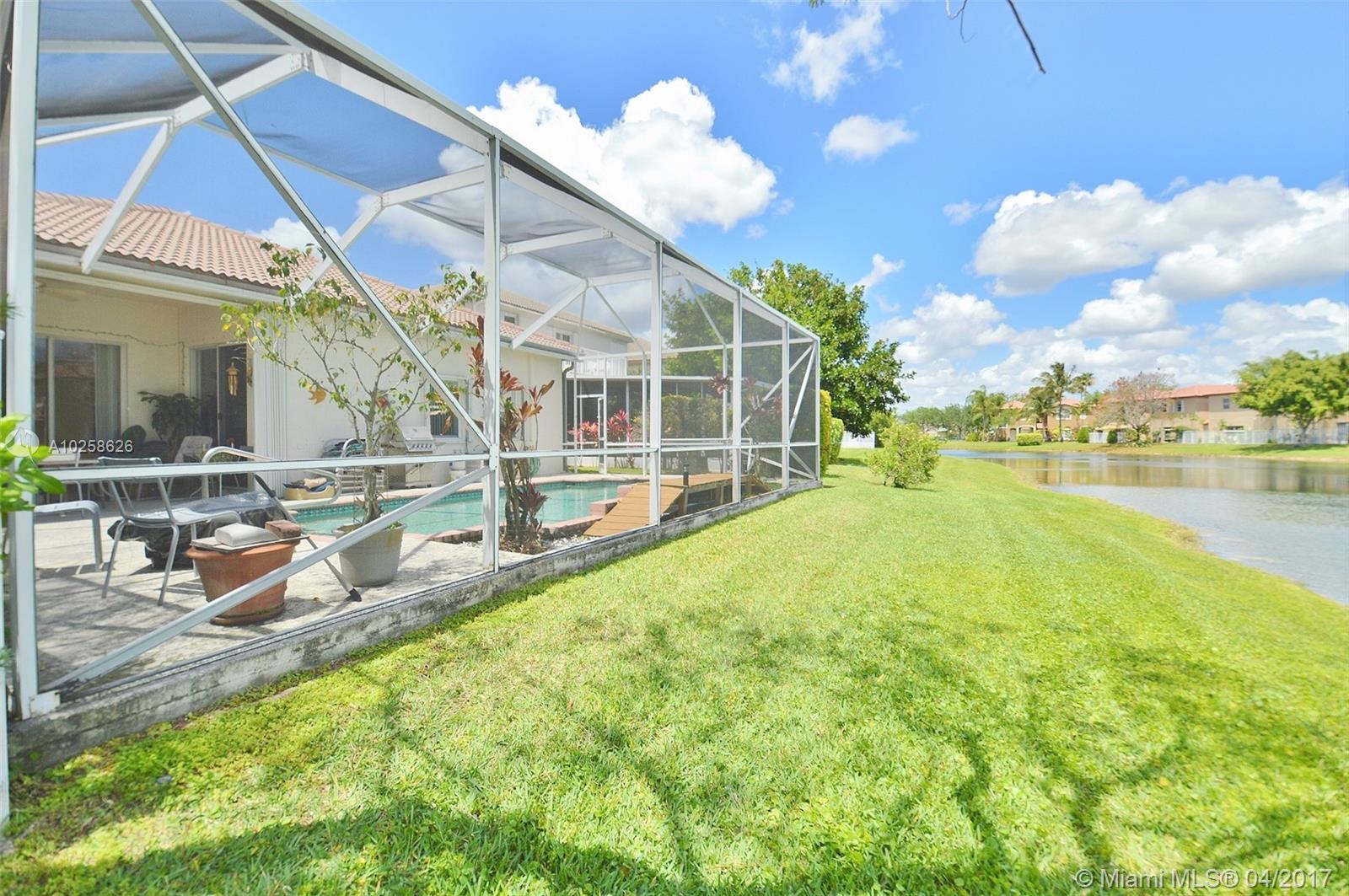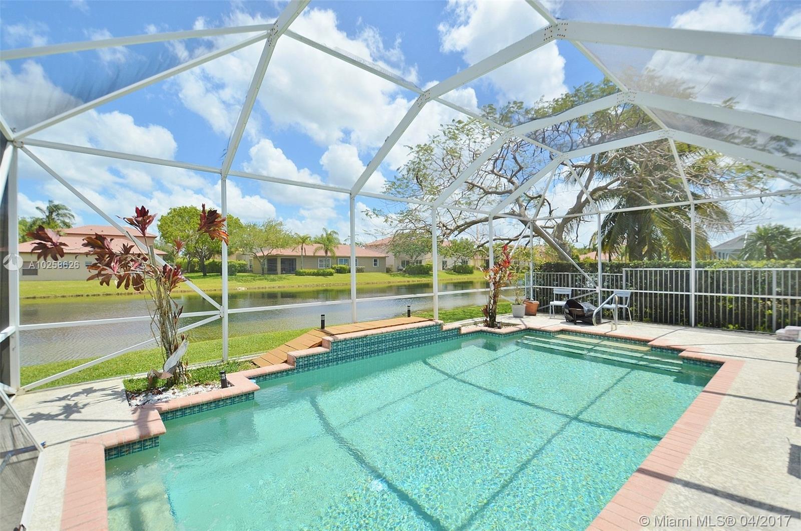 Beautiful 3 bedroom, 2 bathroom home in the sought after gated community of Emerald Estates! Enjoy pool parties in your backyard or relax on the screened in patio with gorgeous views of the lake. Master Suite includes walk-in closet and a separate sitting room/office which can be a 4th bedroom. Accordion shutters on all windows and doors. Emerald Estates offers tons of amenities including yard maintenance, alarm monitoring, basic cable, sprinkler maintenance, guard gate, exercise room, community pool, tot lot, etc! Close to excellent schools and shopping!