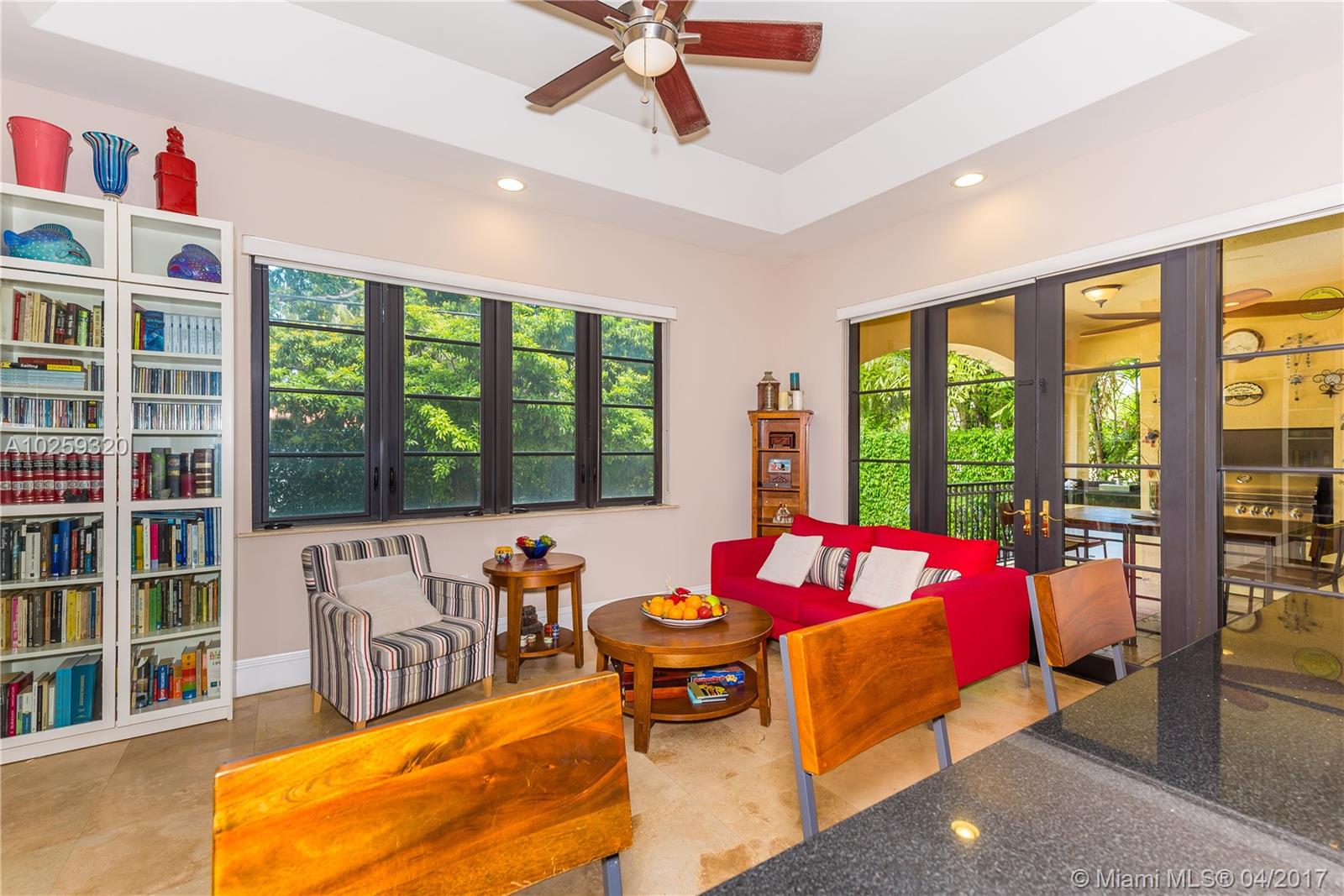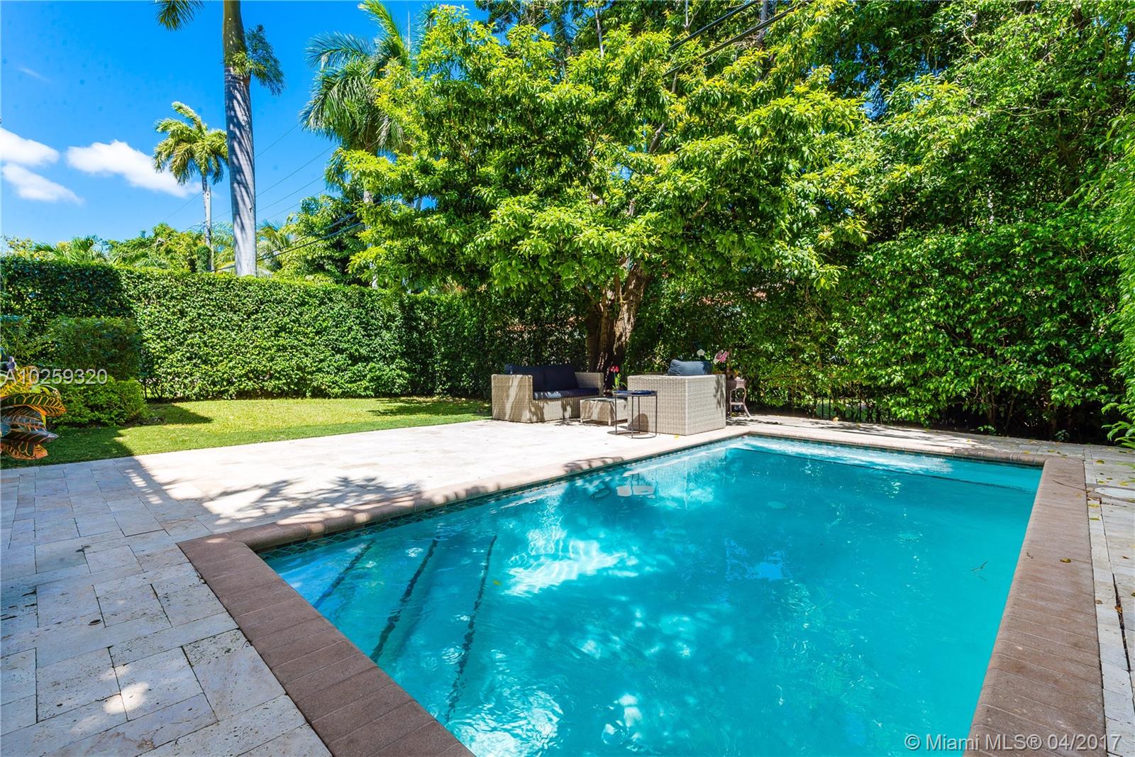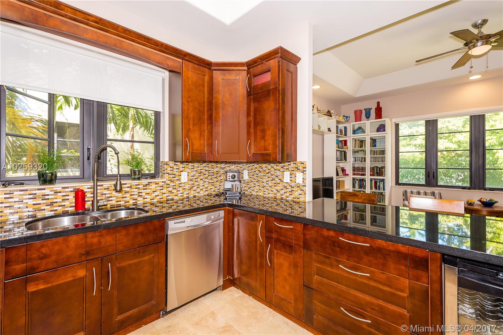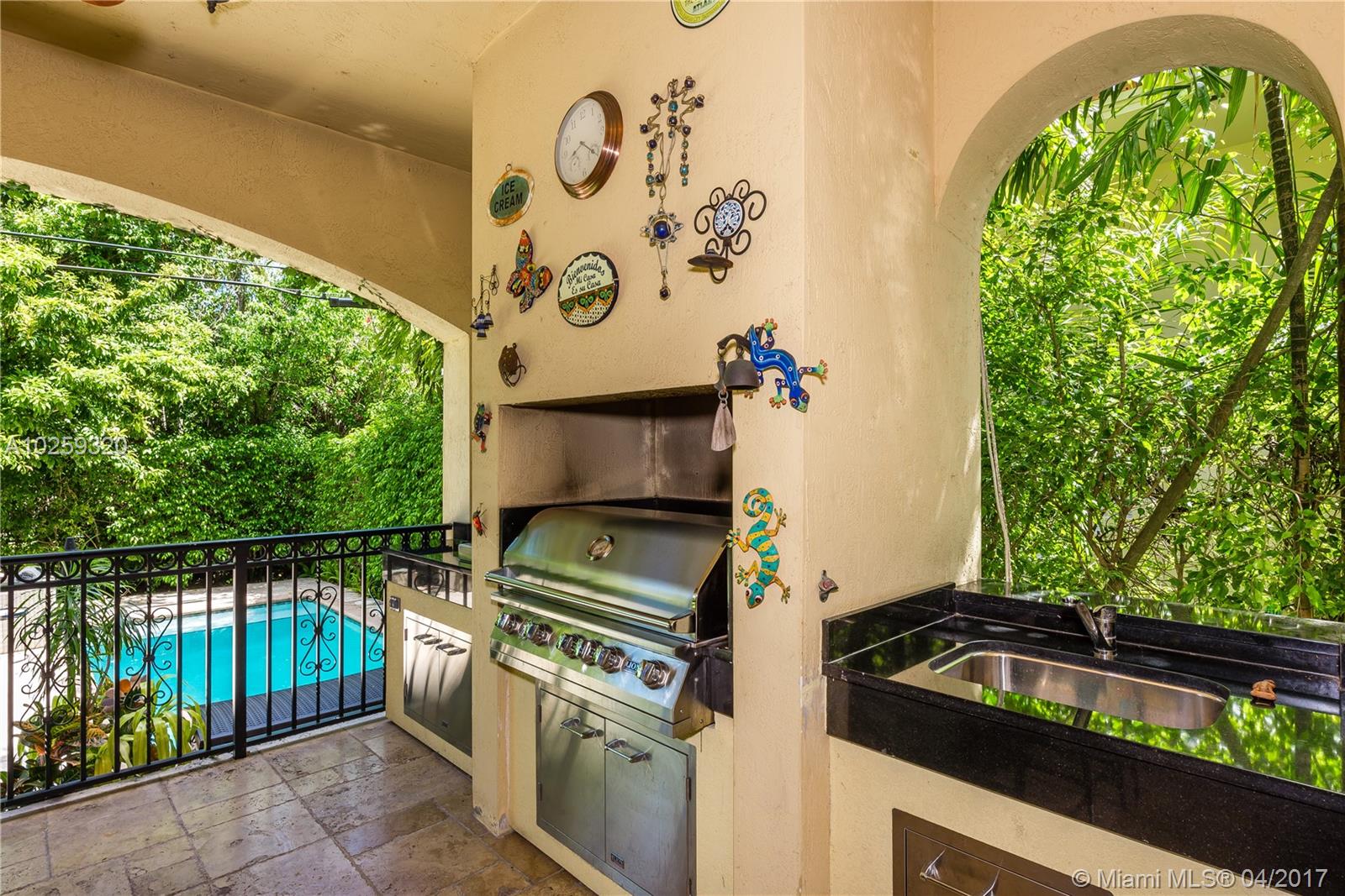 REDUCED, REDUCED!!! Gorgeous family home with outstanding outdoor area. 4 bedrooms, 3 baths. One bedroom and one full bath downstairs. Designer kitchen w/ granite counters and top of the line appliances open to ample family room. Open french doors to enter covered terrace with newer outdoor kitchen and barbecue area overlooking pool and cozy garden. Master bedroom opens to ample balcony. Impact doors and windows, marble floors throughout, big size rooms, separate loft and laundry room, built-in closets, high ceilings and designer touches everywhere make this newer home an unusual jewel in Coral Gables. NO HOA. A pleasure to show!