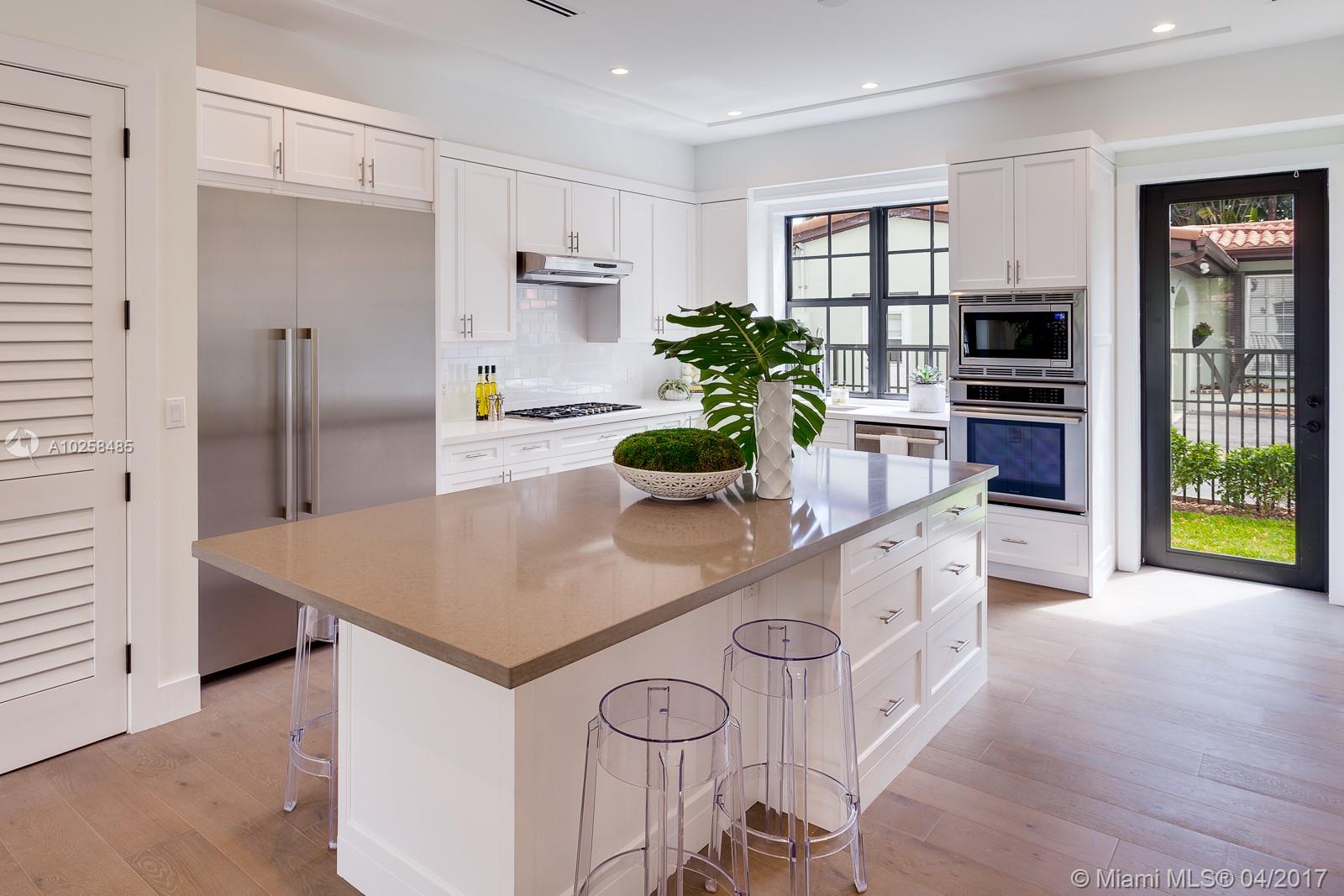 New Coral Gables construction, adjacent to historic French Village, has just been completed. The location is idyllic. Beautiful interior, with 10 foot ceilings, has fine finishes that are both sophisticated & elegant. Wood floors, impacts glass, state-of-the-art kitchen with gas cooktop & Thermador appliances add to the luxury experience. Expansive 800 sf terraces on the second floor expand the living spaces and provide maximum integration for indoor/outdoor living. Do not miss this Very Special Home.