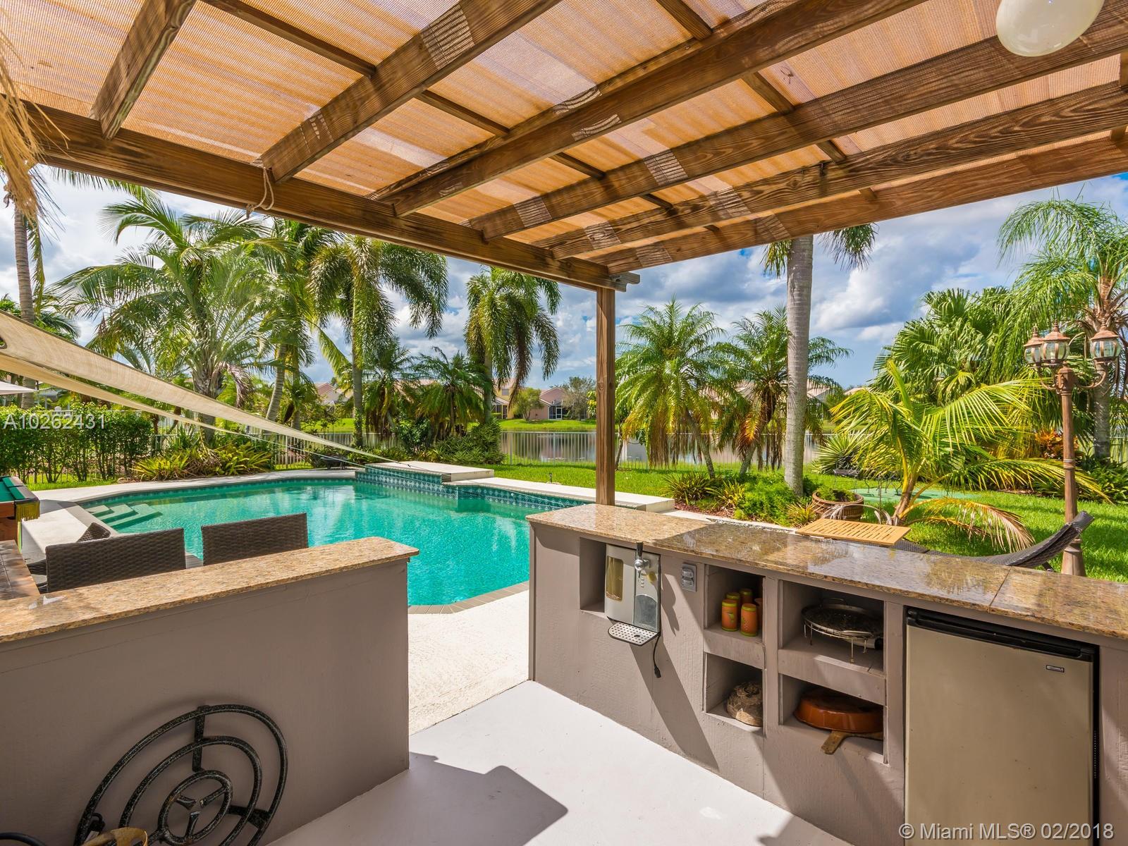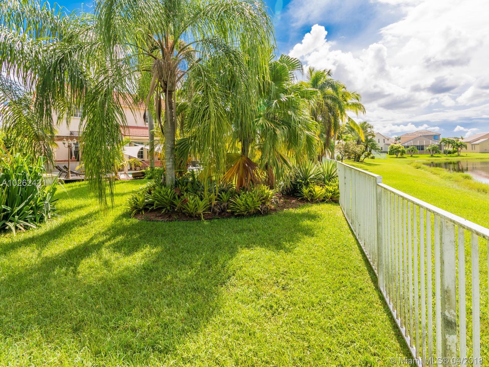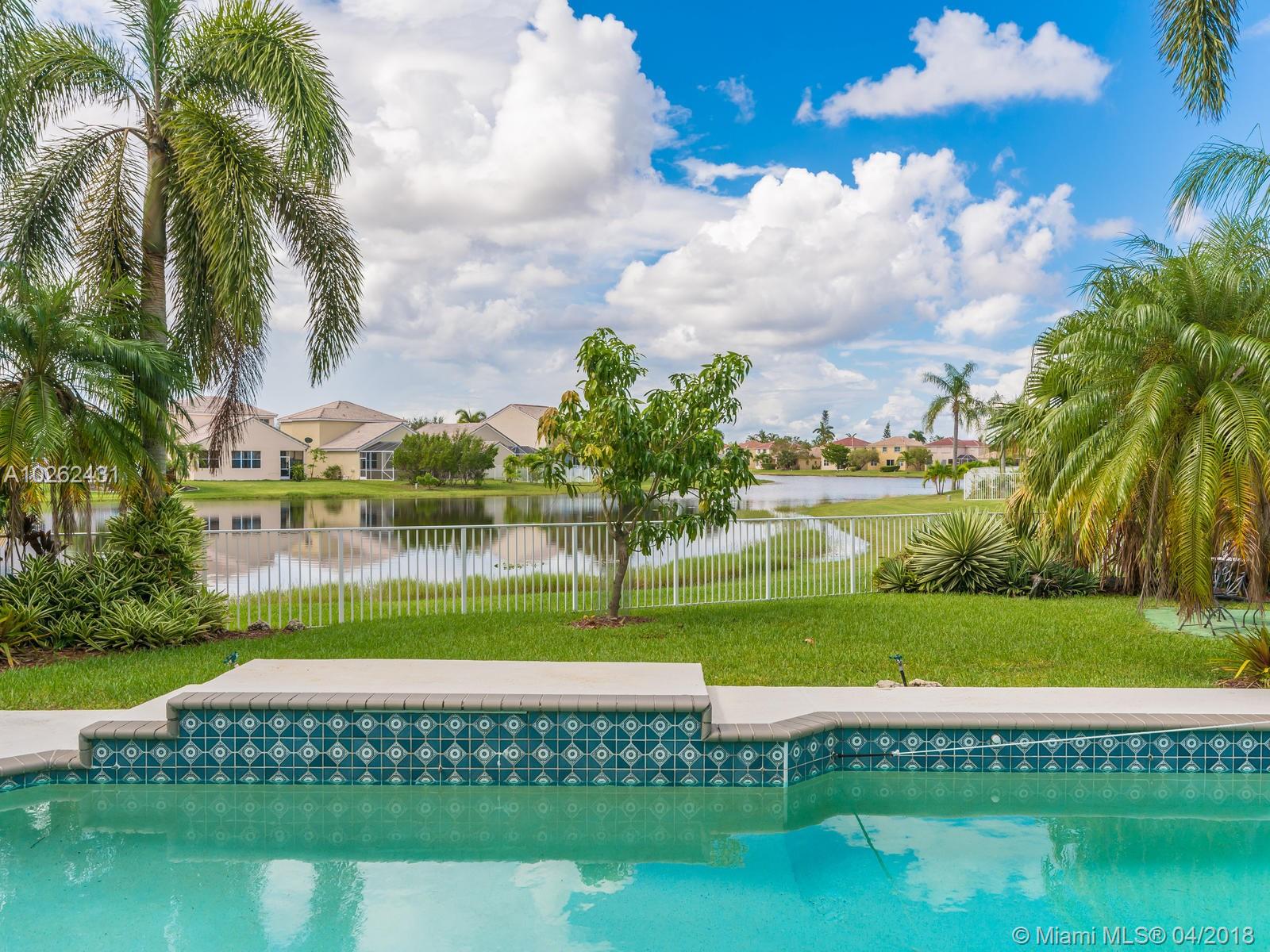This house is Unique, It is in a Cul de Sac with a very large lot, Lake view. Pool , Lake . New Bathrooms , New Stair Rails. Kitchen.new Painted.New Generation Air condition. Outdoor Kitchen and Barbecue area.out door wood Oven . California Closets . GYM .Double Phone Line . Attic.Alarm System with high security door by door, and window by window detectors, fire , Glass Broke detector by window. Cable wire, Direct Tv wired . Wifi . Crown Molding . Stone wall with fire Place and water fall.French door . Hunter Douglas Window Treatment . Fenced all around pool area . Exterior Lighys . High Impact Windows and Door , Acordeon Shutters and much much more