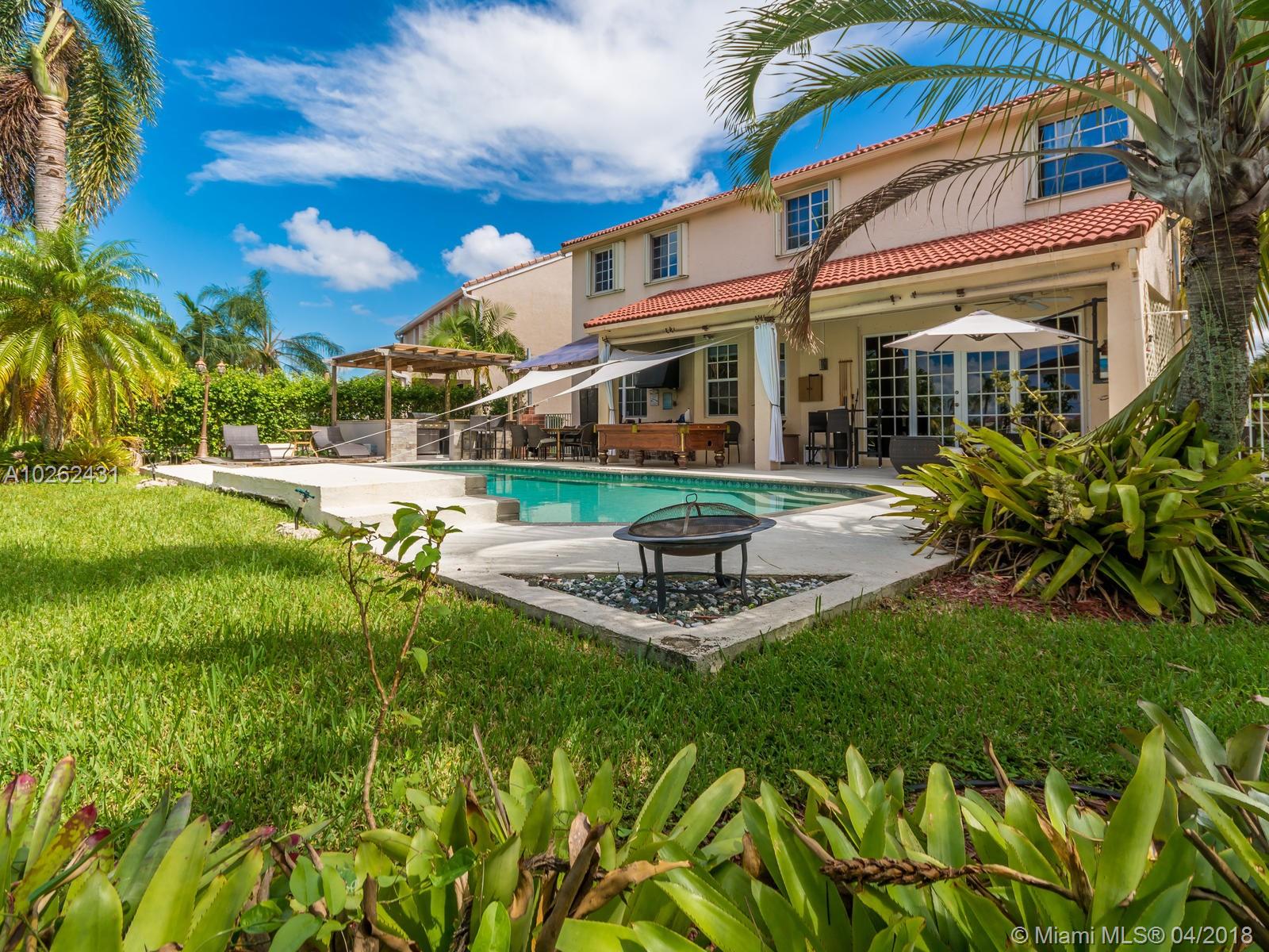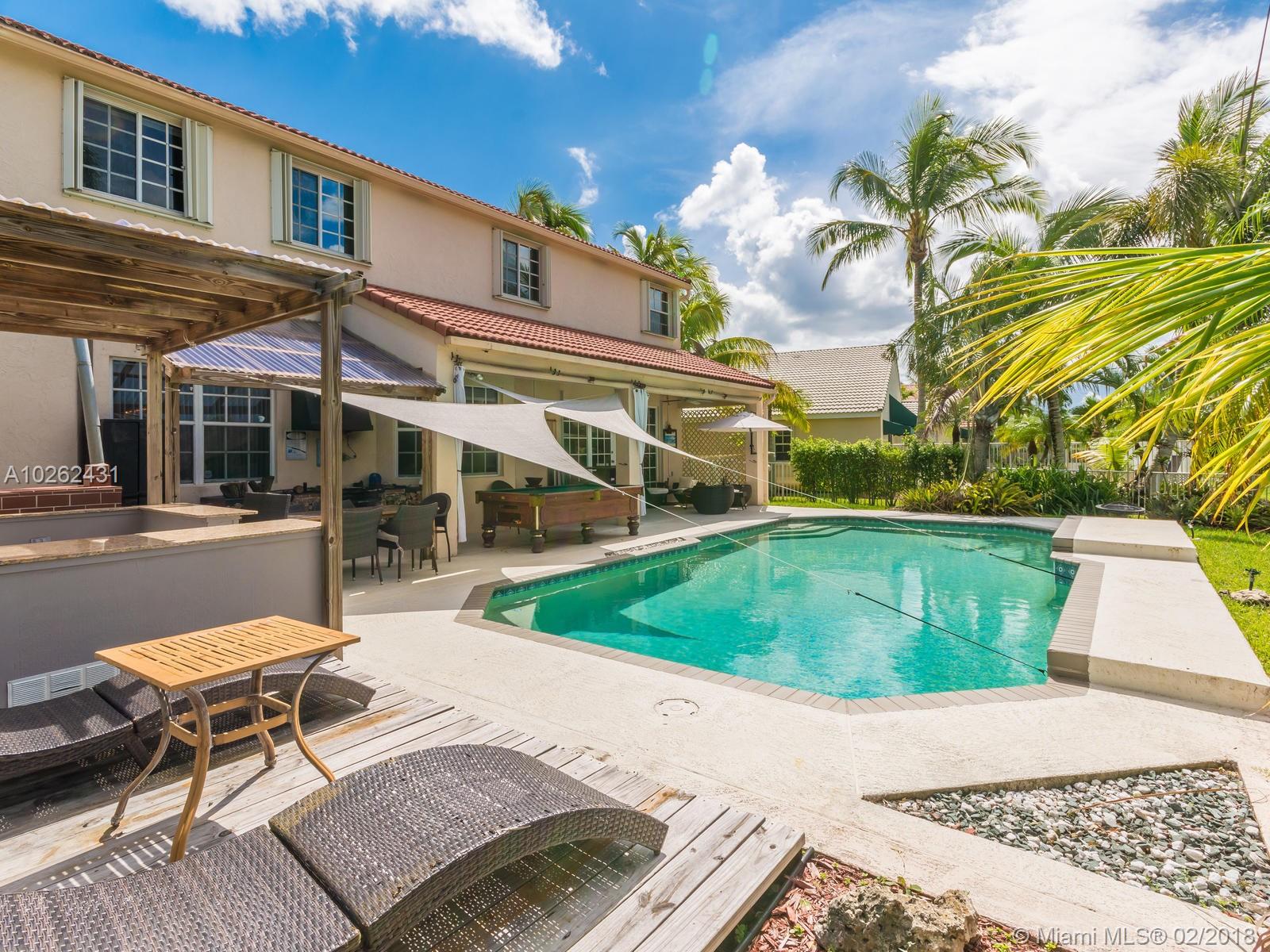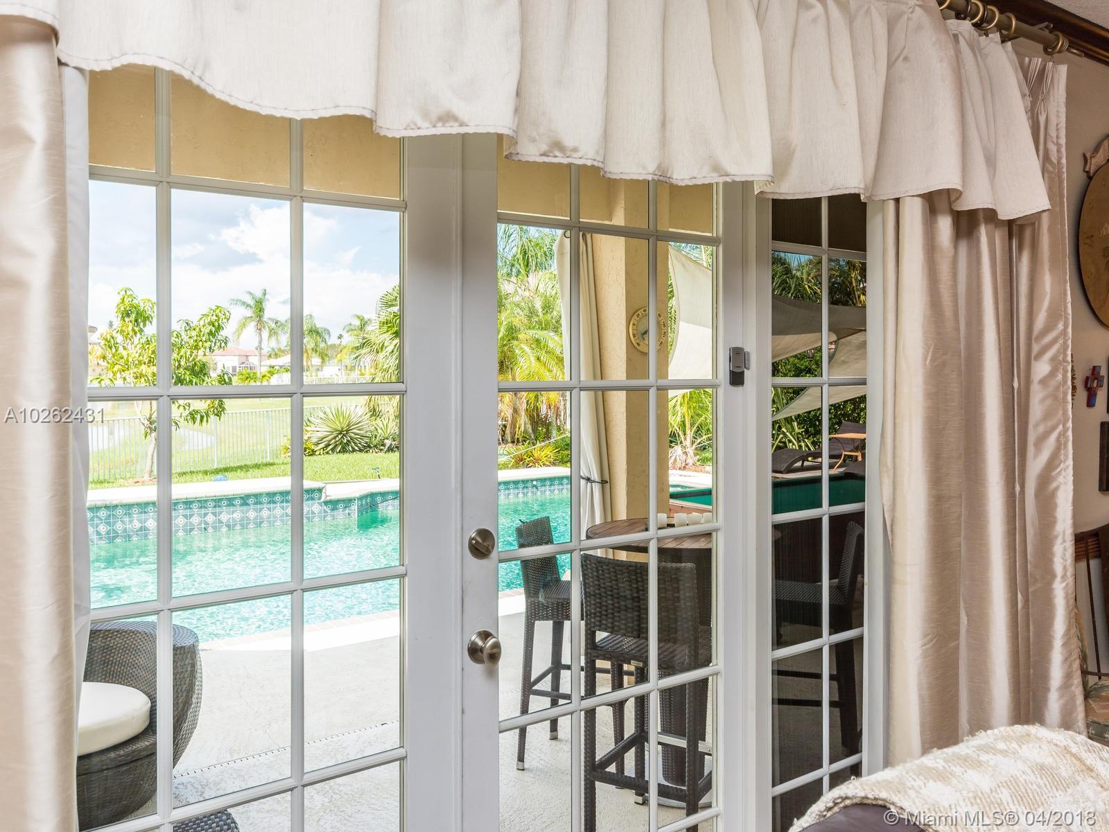 This house is Unique, It is in a Cul de Sac with a very large lot, Lake view. Pool , Lake . New Bathrooms , New Stair Rails. Kitchen.new Painted.New Generation Air condition. Outdoor Kitchen and Barbecue area.out door wood Oven . California Closets . GYM .Double Phone Line . Attic.Alarm System with high security door by door, and window by window detectors, fire , Glass Broke detector by window. Cable wire, Direct Tv wired . Wifi . Crown Molding . Stone wall with fire Place and water fall.French door . Hunter Douglas Window Treatment . Fenced all around pool area . Exterior Lighys . High Impact Windows and Door , Acordeon Shutters and much much more