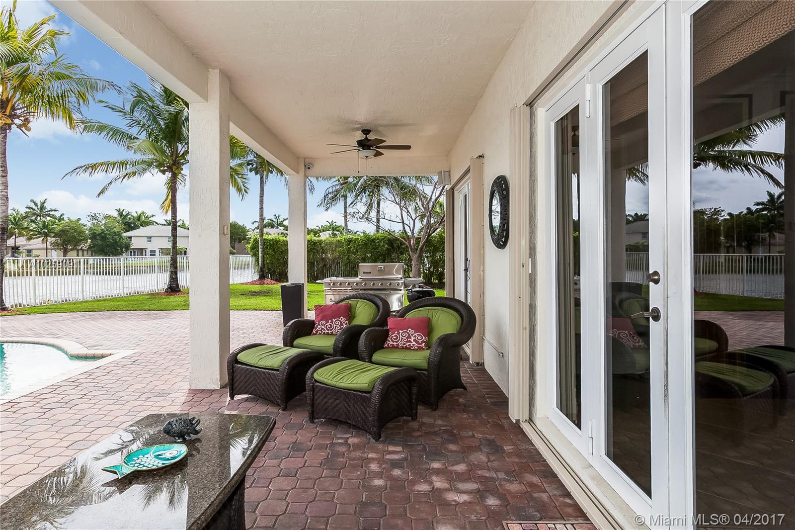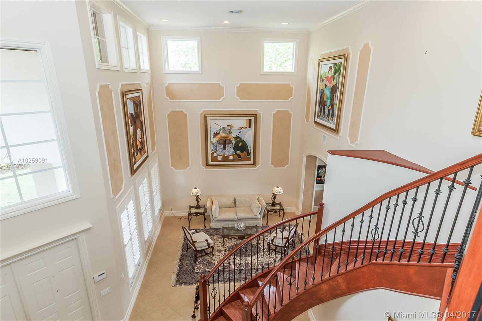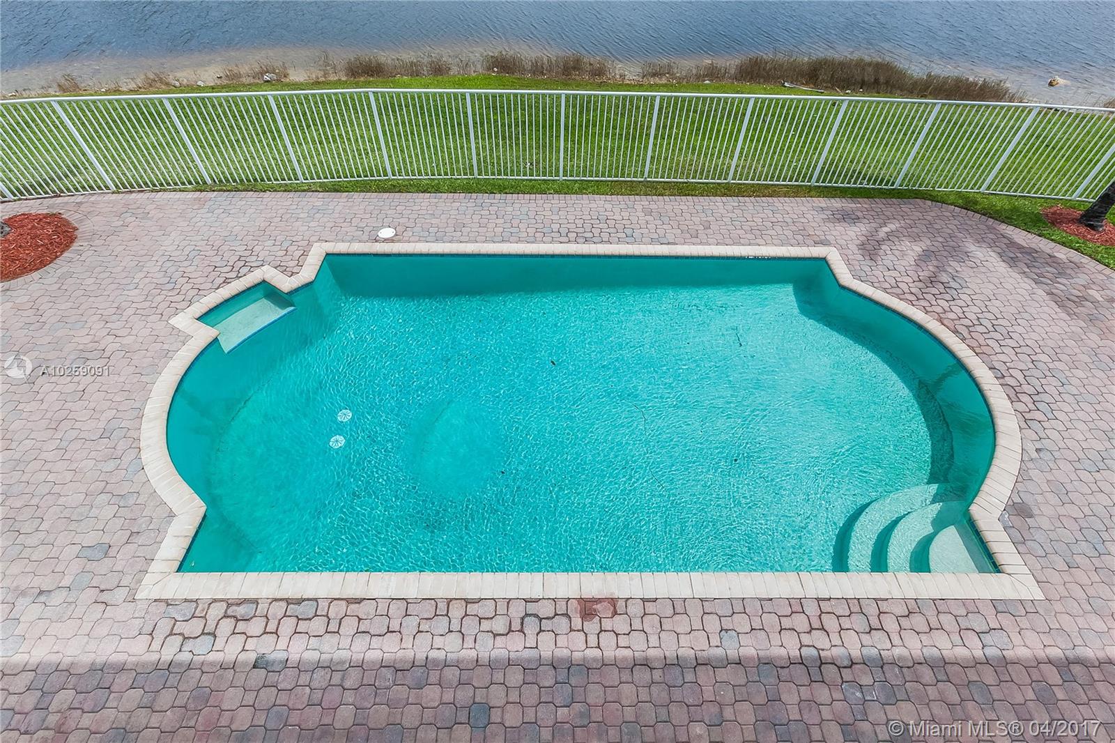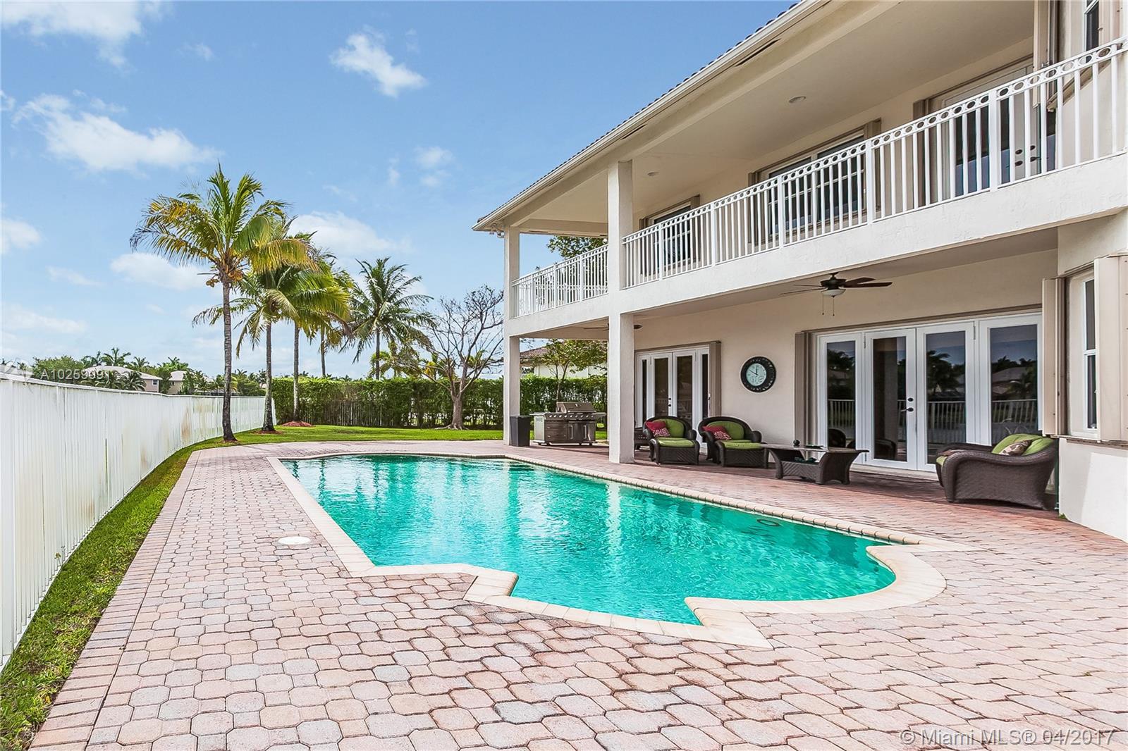 Stunning home of seven bedroom plus office offers amazing water views which surround the one half acre cul-de-sac lot. The grand entry with volume ceilings and elegant custom staircase welcomes you home! Luxurious master bedroom with sitting area features a 32 ft balcony so you can enjoy the breathtaking views from your private suite. Spacious covered patio, open pool and generous fenced yard adds to your outdoor experience. Attached guest house is a 1/1, perfect for extended family, additional office or gym. Circular driveway leads to tiled and air conditioned 3 car garage. This house has it All!