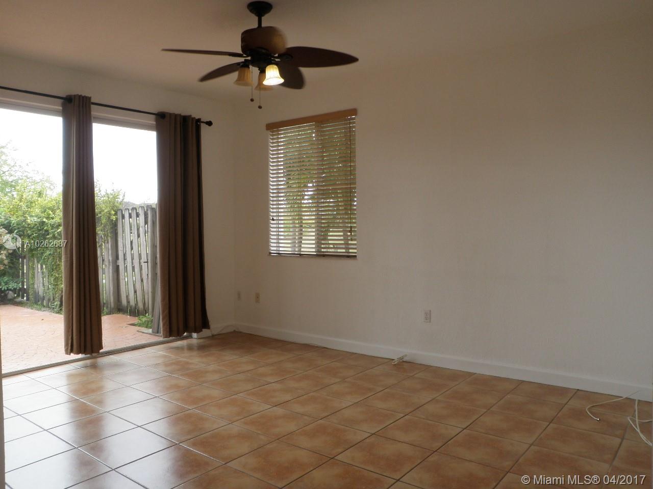 THIS ONE IS A MUST SEE! VERY WELL KEPT 4/3 TOWNHOUSE (END UNIT) WITH LOTS OF NATURAL LIGHT. READY TO MOVE IN HOME FEATURES TILES 1ST FLOOR AND CARPET UPSTAIRS. LARGE OPEN PATIO FOR ENTERTAINING. NO NEIGHBORS BEHIND UNIT. OPEN GREEN SPACE WITH JOGGING/WALKING TRAIL. THE PROPERTY IS IN EXCELLENT CONDITION AND MOVE IN READY. FRESHLY PAINTED AND HURRICANE SHUTTERS. CENTRALLY LOCATED NEAR MIAMI LAKES, MAIN STREET, I-75, PALMETTO EXPRESSWAY AND TURNPIKE. GREAT INVESTMENT OPPORTUNITY.