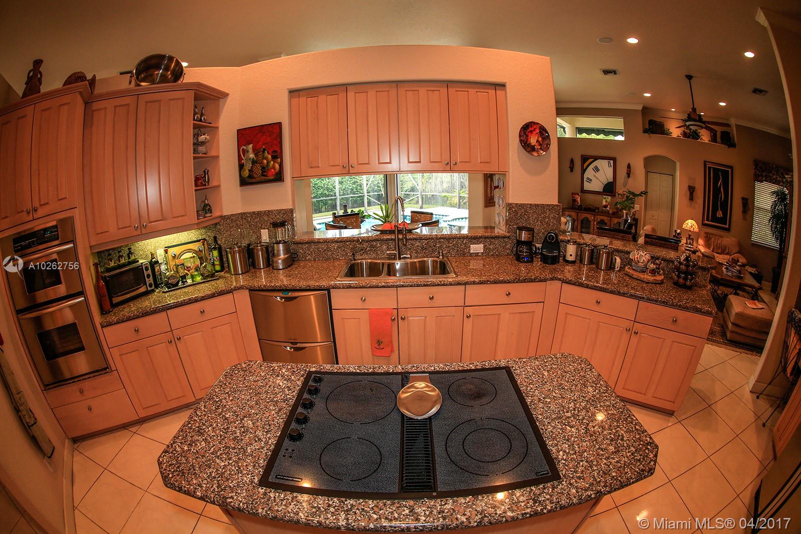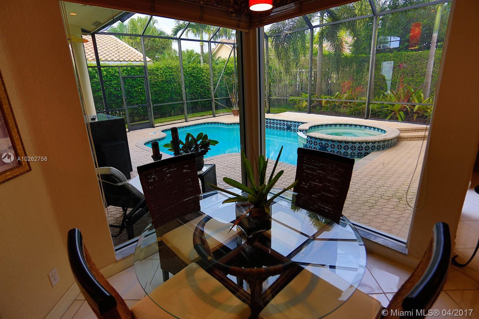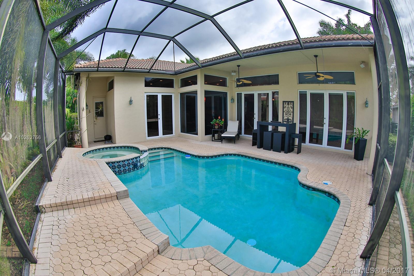 Elegant spacious rare 4 Bed/3.5 Bath estate home w/huge circular driveway in prestigious gated Weston Hills CC featuring formal living & dining rooms w/volume & tray ceilings + huge family room, kitchen & breakfast area great for entertaining! Upgraded 42" wood cabinets, granite, SS appliances, double dishwasher, wall oven, oversized master suite w/dressing area, custom-made walk-in double closets & upgraded marble master bath & upgraded baths. Huge screened-in pavered pool area. 1st time on the market!