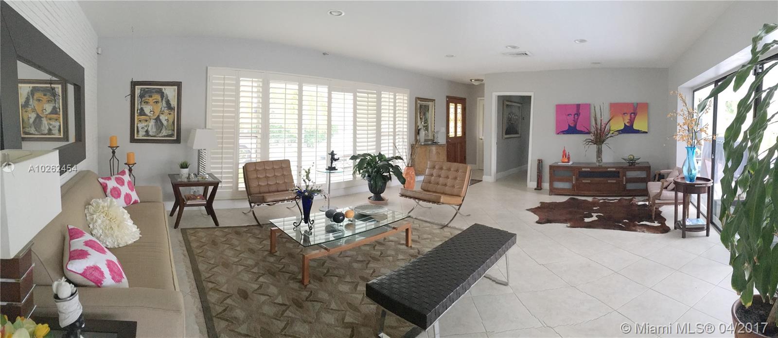 Upgraded Family home with 4 large bedrooms and 3 full bathrooms. Located in desirable Coral Ridge neighborhood. Open floorplan providing stunning views of pool area from most of the house. Designed with entertaining in mind it features large kitchen with island and white cabinets. Remodeled bathrooms. Refinished Pool and paver backyard. New refrigerator, microwave, and 5 ceiling fans. 5-year-old air condition and 7-year-old tile roof, hurricane windows or shutters for all openings.
