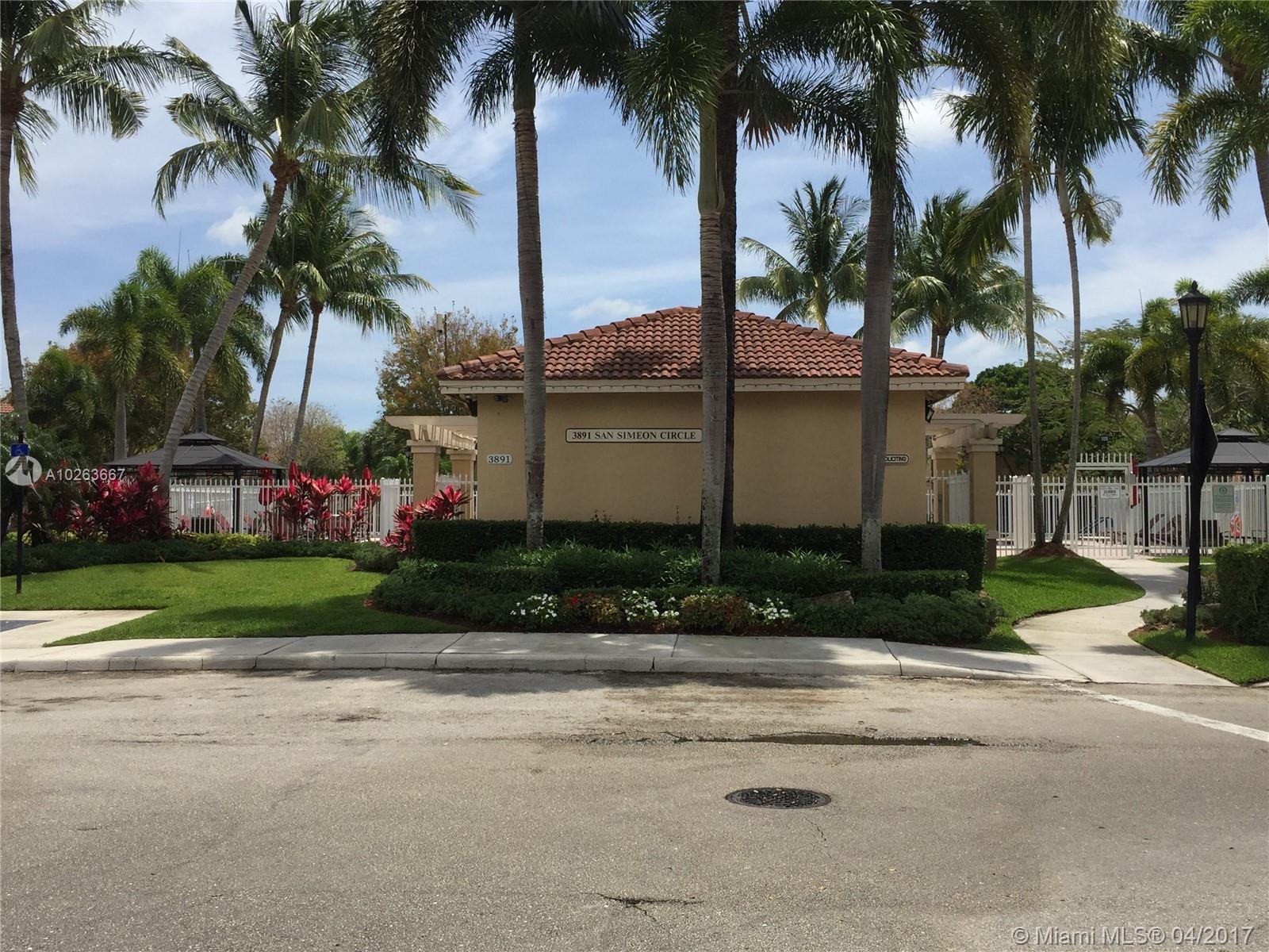 Beautiful 3/2.5 townhouse in prestigious Village of San Simeon. Open first floor plan adjoined by a screened-in patio overlooking the scenic lake. Dine-in kitchen with breakfast counter. Convenient 1st floor half bath. Large master suite on 2nd floor overlooking the patio and lake. Bright and airy bedrooms. Attached 1-car garage. Easy access to community pool and playground. Excellent A+ rated schools. Close to restaurants, shopping, parks, highways. A family friendly Weston community with the rare opportunity for a water-view unit. Seller will contribute $5,000 towards buyer's expenses.
