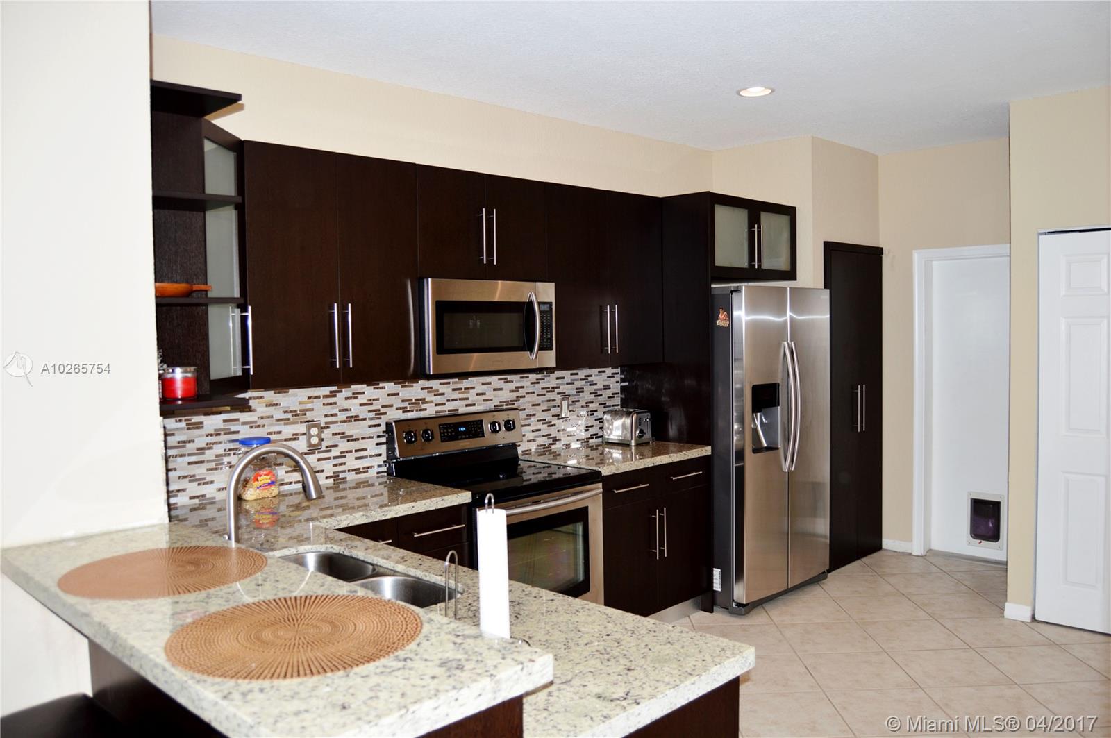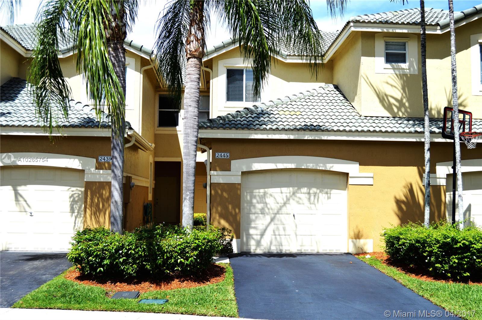 Totally remodeled from Top to Bottom! Modern and clean looking unit. Gorgeous kitchen with light granite, dark cabinets and stainless. Beautiful flooring with high end laminate up the stairs and second floor. Spectacular private preserve view. One car garage, hurricane stutters. Gated community with pool and play area. BEST WESTON SCHOOLS! This is a highly upgraded home with a beautiful view...owner will only consider full price offers not contingent on appraisal.