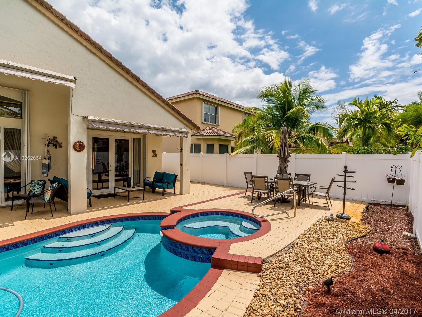 WOW!! 4 bed, 3 bath, 2 car garage corner lot pool home in very desirable gated community Sunset Lakes Miramar (Monaco). Freshly painted exterior and interior (incl pool deck), auto cleaning heated salt water filtration 30x12 pool with jacuzzi (new pump, valves, etc), sprinkler system, 2010 A/C, 2016 tankless water heater, LED lighting throughout, fruit trees, top of the line Samsung appliances in this large kitchen, PVC Fence, landscape lighting, alarm system with glass break and carbon monox. detectors, accordion shutters, upgraded french doors to patio, multi-zone speaker system inside/outside, new ceiling fans, new brushed nickel light fixtures, upgraded baseboards, window treatments included, dual rain shower heads and enclosed toilet in master bath, all bathrooms upgraded. SPOTLESS!!