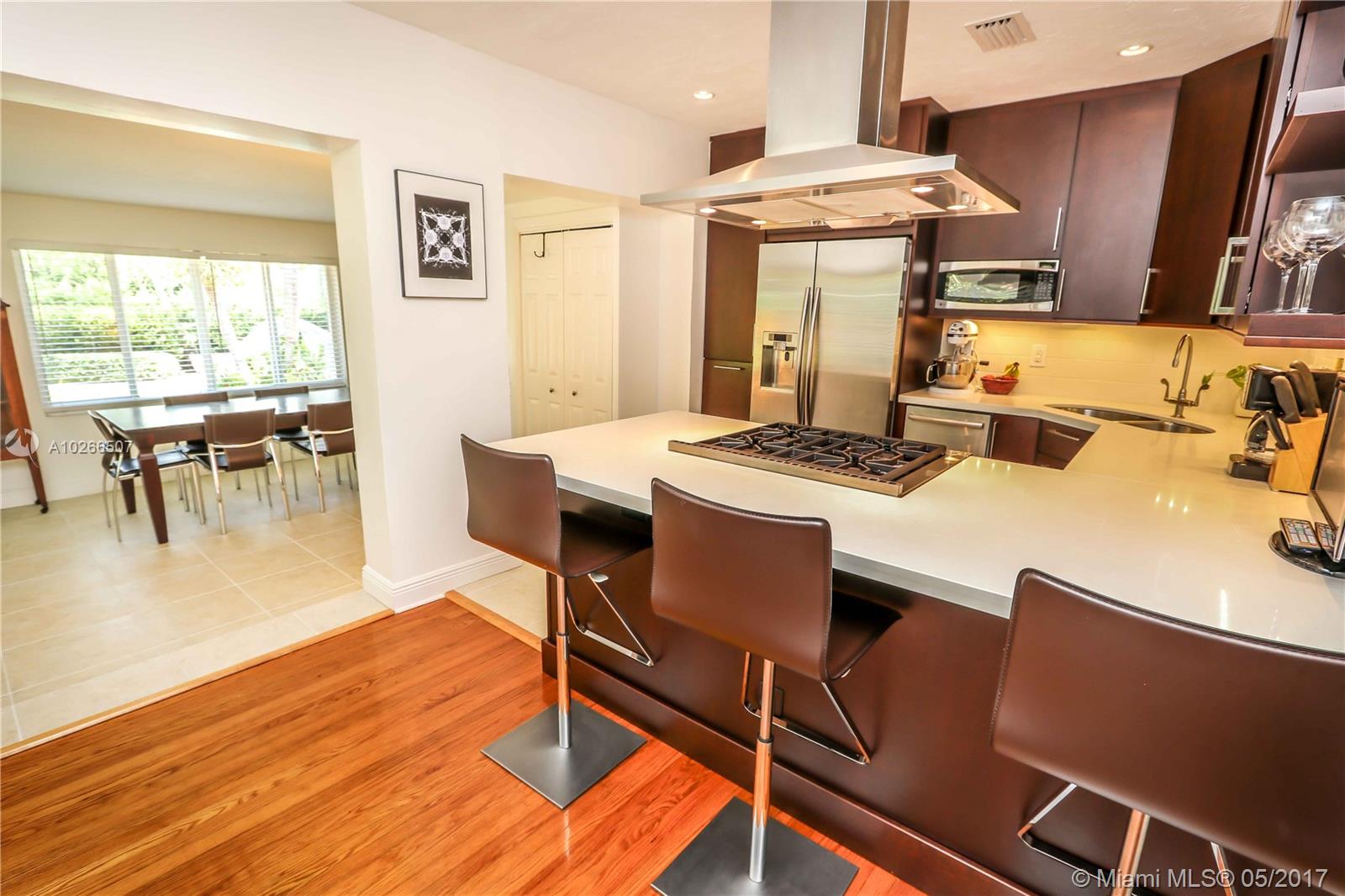 Spacious 3 bedroom 2 bath pool home w/ circular brick driveway leading you to a beautiful entrance~This home features custom designed chef's kitchen~ss appliances~Wolf gas range w/ Ansi hood~double door fridge~double sink, Medallion Silver ginger wood soft close cabinets with Ceasarstone counter tops~Sit down bar area very modern and elegant~Split floor plan with wood/tile floors, crown molding, freshly painted.Family room plus enclosed sitting area~Updated baths, master with shower only~Great outdoor living,newer heated pool w/ Waterfall~Professional Landscape w/ Tropical Foliage for privacy and fenced back yard~sprinkler system. Impact doors and windows,doors including 2 sets of French doors~add'l parking in back for rv or boat~tile roof~ storage shed,stackable w/d,newer tankless gas WH