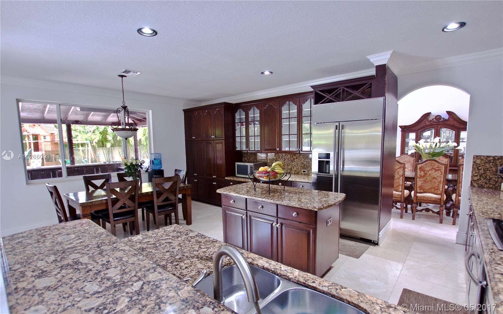 Walk into the most grandeur entry with high ceilings and open spaces with marble flooring and a stunning wrought iron staircase that wraps around an oversized loft space. Formal Living and Dining rooms lead into the open eat in kitchen and family room. Large Master en suite with a remodeled master bath and large walk in closet. 3 additional bedrooms on second floor all with walk in closets, Jack and Jill bath and another full bath near loft area. First floor has a Guest Room and Cabana Bath. Amazing use of Exterior Backyard Space with an Oversized Custom extended complete outdoor kitchen with shaded and paved patio areas sit on a huge private lot with plenty of room for entertaining. Totally remodeled and updated interiors with lots of shaded backyard living spaces compliment this home.