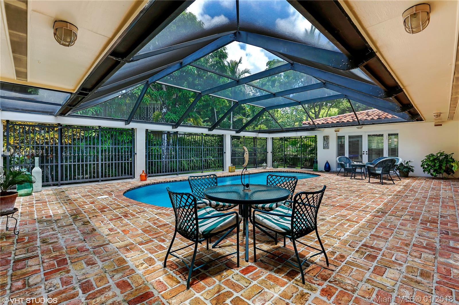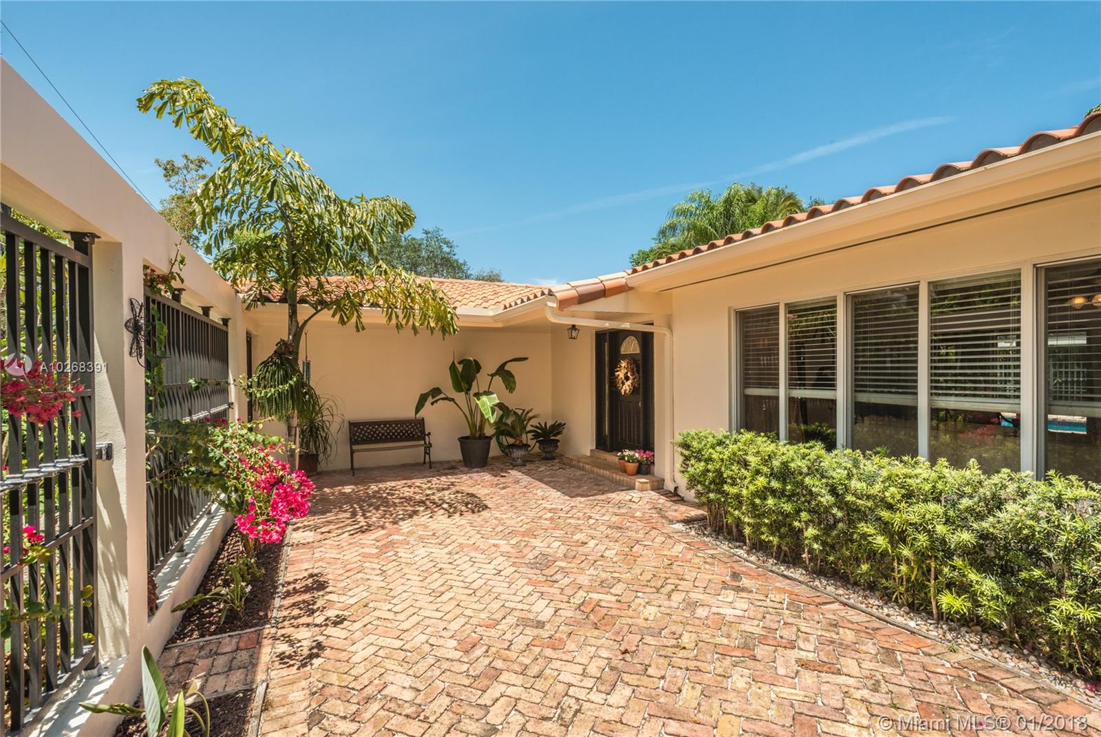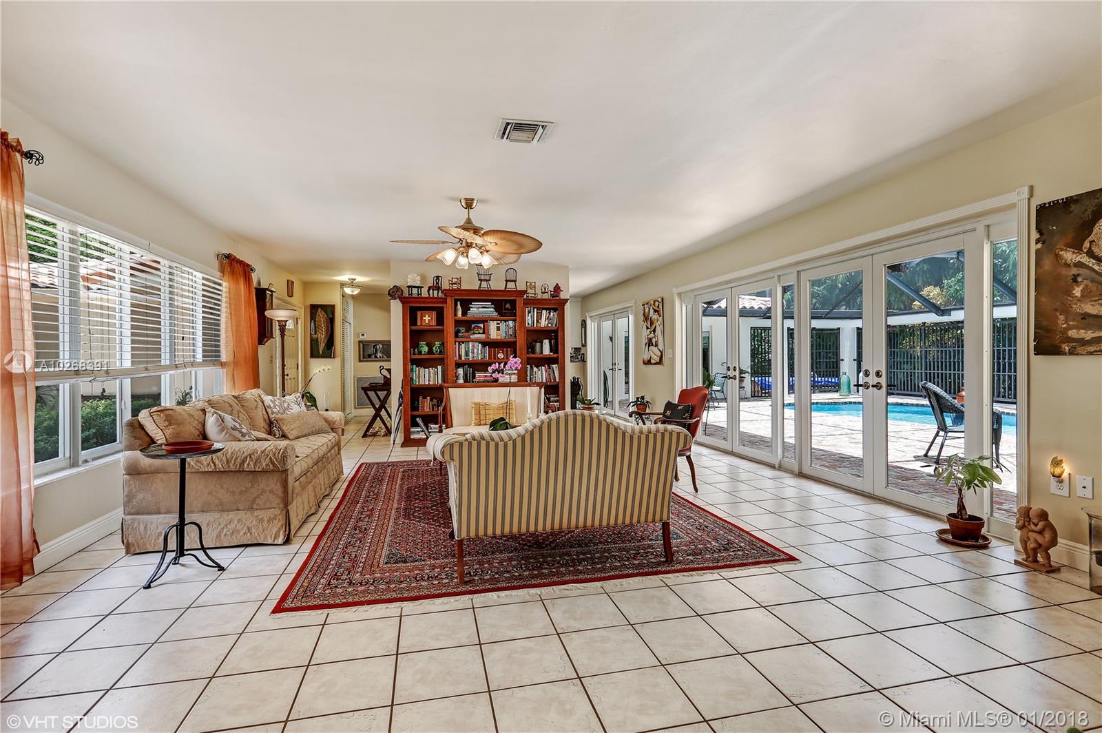 Coral Gables Platinum Triangle location with updated 3 bdrm, 3 bath screened pool home, 2 car garage on 10k sq ft corner lot. Chicago brick courtyard entry opens through front doorway to expansive living area French doors thru-out, open to large screened pool with Chicago brick patio great for entertaining. Split bdrm plan plus convertible room with sliding doors open to living room perfect for den/library/office. Fantastic new kitchen, 3 new baths and impact windows. Adjacent to iconic tree canopied Old Cutler Road one of Miami's most naturally beautiful routes. Highly rated public & private schools. Close to wonderful shopping, fine restaurants and Miami's best parks.