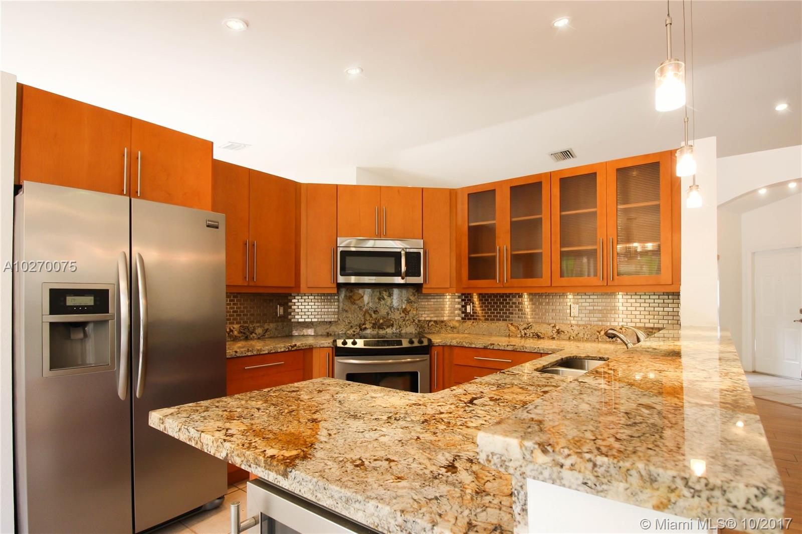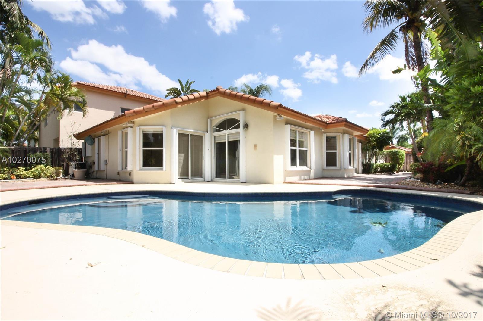 Buyer financing fell through - Their loss could be your gain!!!! Updated pool house in highly desirable Doral Isles. Located in quiet cul-de-sac, this house has a large master bedroom with access to heated pool and sun deck. Vaulted ceilings, updated custom kitchen with stainless steel appliances and wine cooler. Alarm system, accordion shutters, custom built closets in all rooms, blinds in all windows . Modern light fixtures throughout the house. Beautiful back patio ready to entertainment. Clubhouse amenities include: beautiful pool and restaurant, tennis courts, soccer and baseball fields, gym, etc.