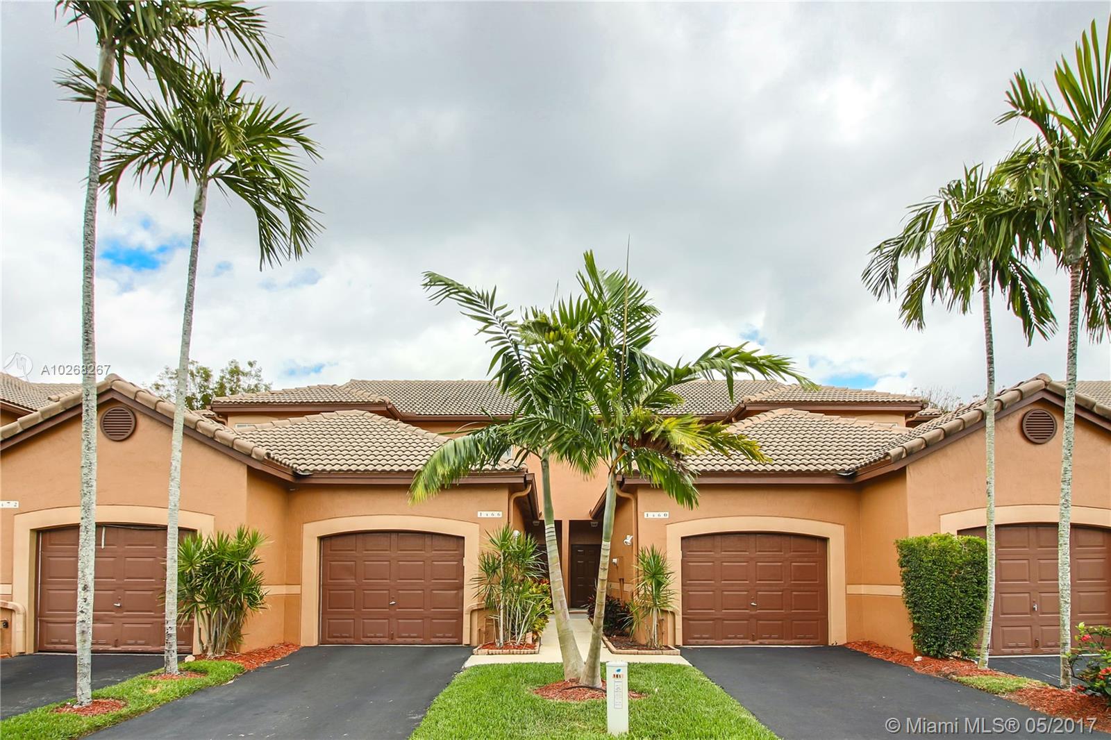 Do not miss this lovely 2/2.5 Townhome with 1 car garage in Weston's desirable San Sebastian community! Not a foreclosure! This home has been freshly painted with neutral colors, brand new carpeting in all rooms upstairs. 2 spacious master bedrooms upstairs with walk in closets. You will love this well maintained community with great amenities for the family, community pool and playground. Excellent location, conveniently located near to A schools, highways, shopping plazas.