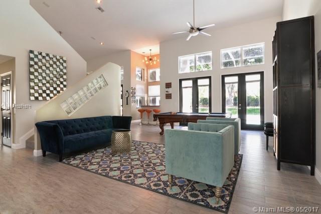 Stunning Weston Hills Country Club home, completely renovated with $175K in upgrades! This 5/3 home features a partial 2-story design.Master & 2nd bdrm are on the main level.Features dramatic 18 ft ceilings in living areas. A Chefs kitchen w/double Thermador 30 inch ovens, induction cooktop & oversized farmers sink,all surrounded by custom built European cabinets. The master suite includes his/her closets & a gorgeous spa-like shower. Five sets of 8 ft French doors lead to screened pool/patio area w/additional fenced yard for play. Full 3 car garage w/built in cabinets, accordion shutters & new HVAC systems.Furniture is negotiable.This home is pristine, close to the WHCC Clubhouse and in A+ school district.Will not last!
