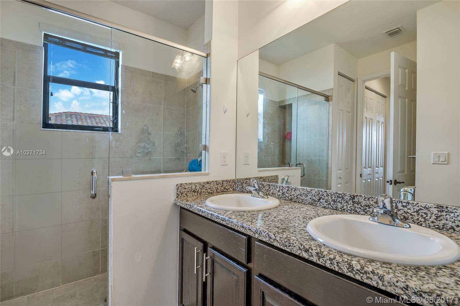 Beautiful 2-story Mediterranean-style home just built in 2015 in a private, gated community on a premium lot w/ a large empty grass area next door & no back neighbors. The house features a spacious, open-concept floorplan w/ tons of upgrades: 10 ft ceilings, lots of windows & natural light, espresso wood cabinetry, granite counters, s/s appliances, center island & cute, built-in sitting area + hardwood stairs, paved driveway, porch & back patio, garage & W/D. Master suite w/ double vanity, his/her's closets & large walk-in shower. Fantastic location w/ easy access to main roads (I95, Turnpike, Ives Dairy) & close to schools, shopping & dining. Gated community includes a pool/cabana, play area & 24h security all w/ a very low HOA fee! Tremendous value for a new owner or investment property.