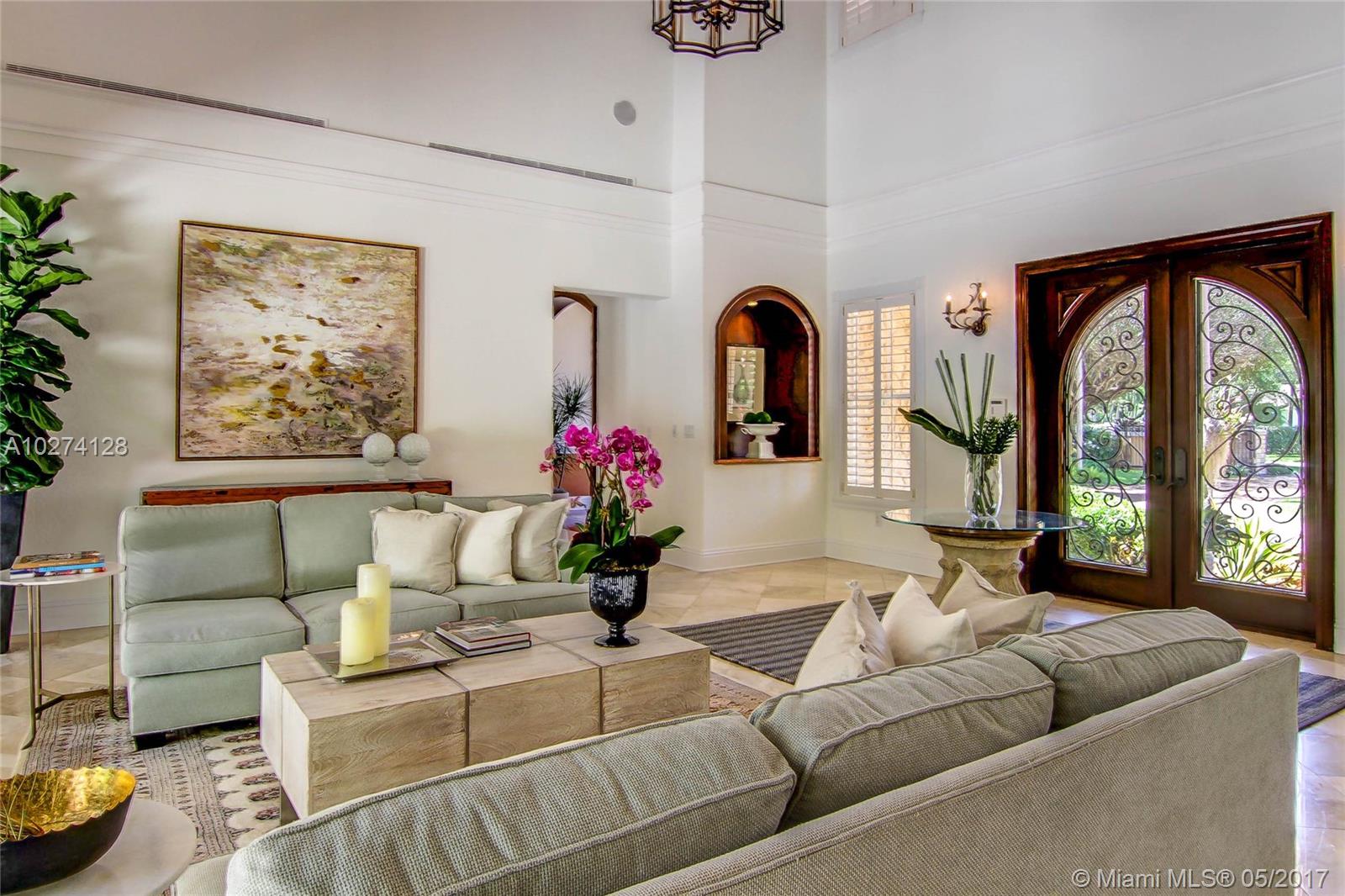 Beautifully appointed with fresh, new & modern touches added to this well distributed home. Indoor/outdoor entertaining areas abound. Smart house has several family rooms, patio areas, & sports courts. Other features include propane gas generator, impact windows and doors, summer kitchen, state of the art security system, and heated pool with saline treated water system. Above garage there is 1400 sq. ft. of livable space with wet bar and half bath easily converted to full. Furniture negotiable.