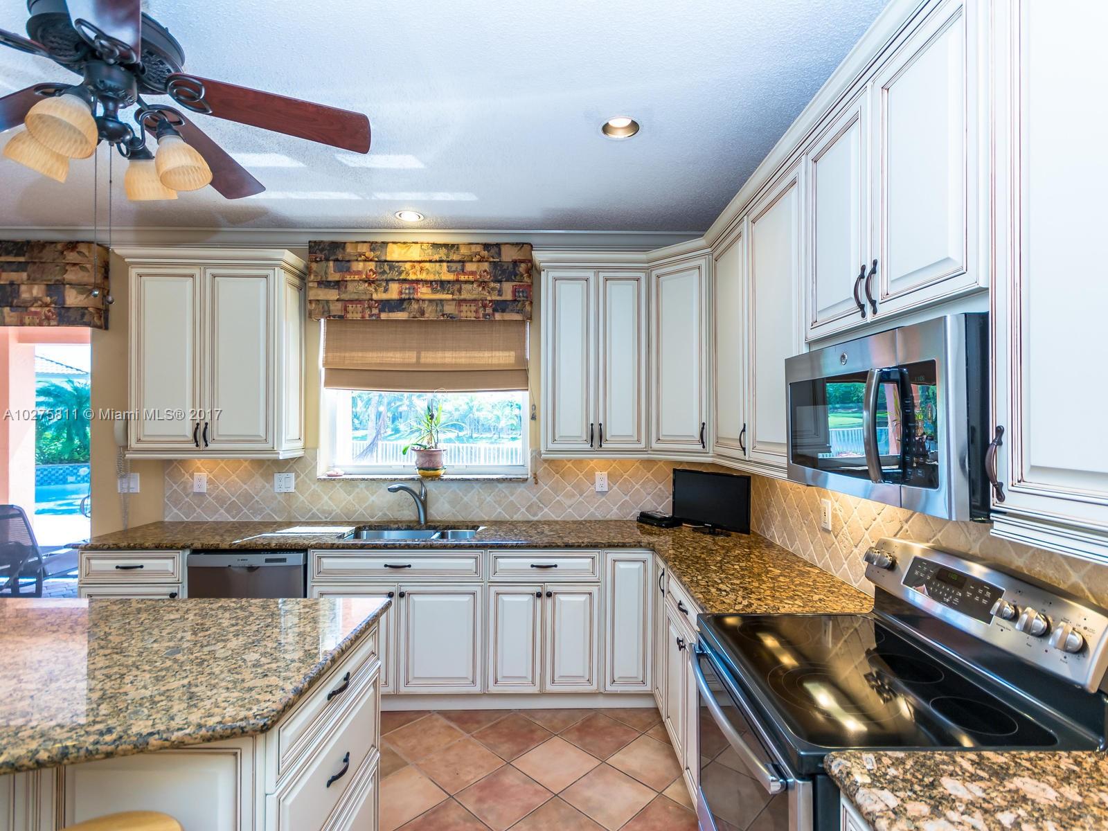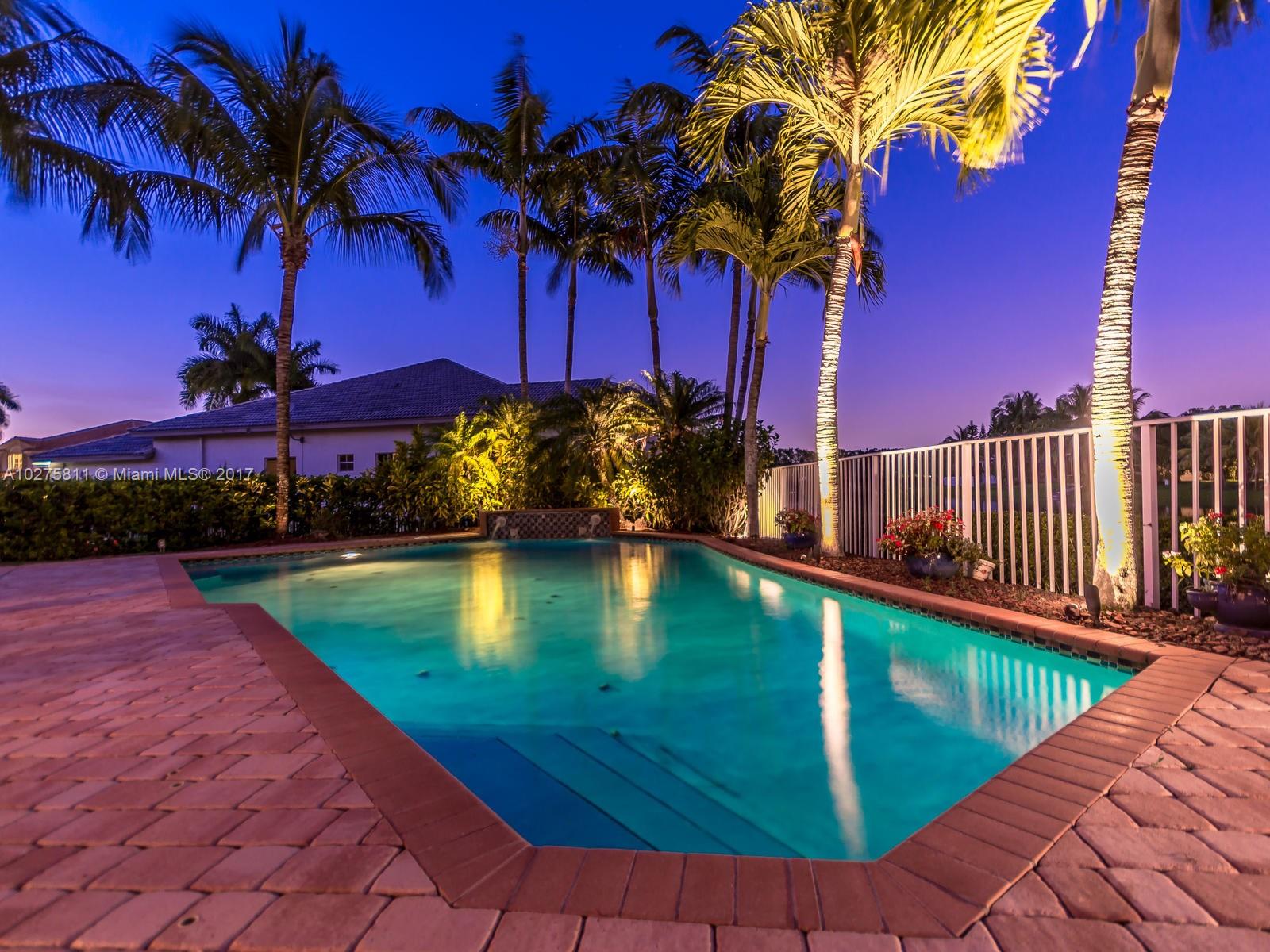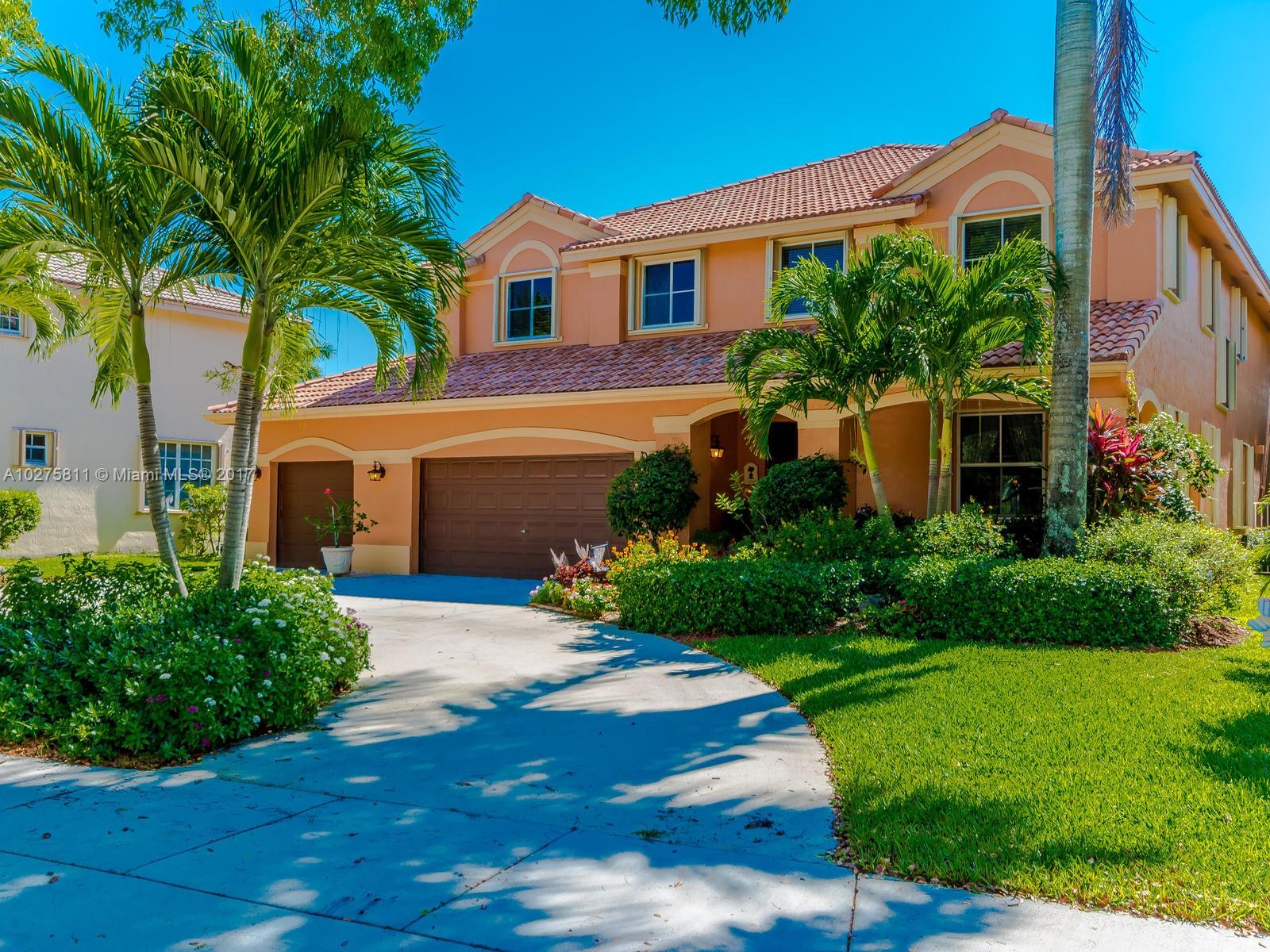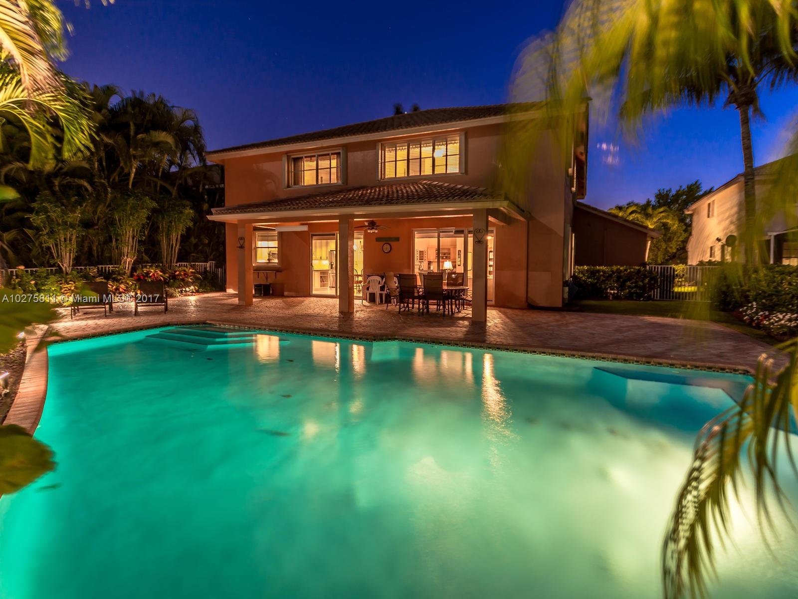 Fabulous Glendale model in sought after Heron Ridges features 5 BR plus office, 3 BA and 3CG on private, lakefront lot. This beautifully maintained home offers a spacious & functional floor plan, updated chef’s kitchen, tile throughout 1st floor living areas and Brazilian cherry hardwood in bedrooms and stairs. Wonderful pool and patio area with great lake views; perfect for entertaining! Accordion shutters, security system and oversized circular driveway that fits over 8 vehicles. Enjoy everything the city of Weston offers including A rated schools and library within walking distance, parks, fine restaurants all with easy access to highways and shopping, A Must See!
