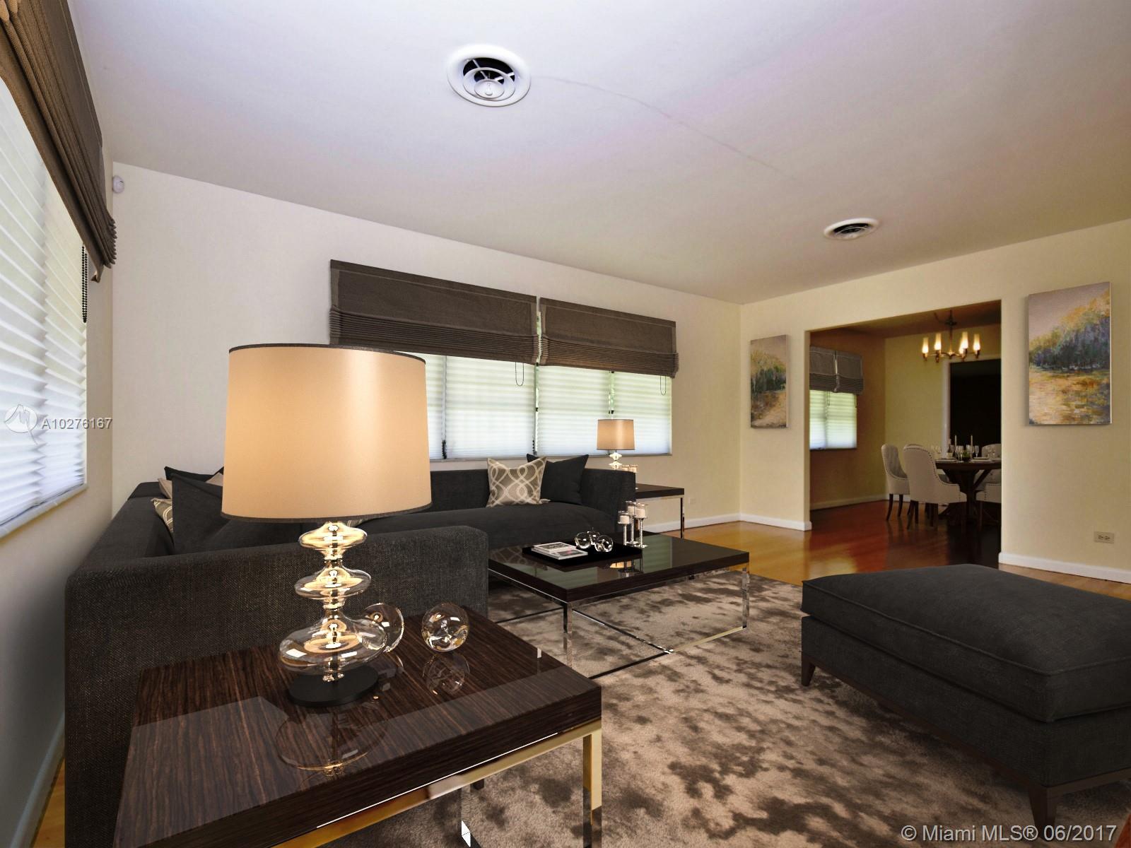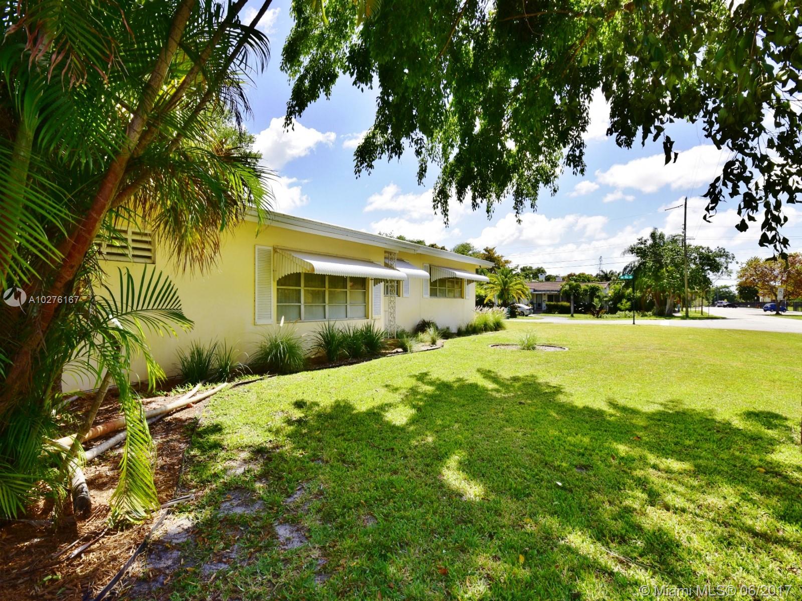 GRAND MIAMI SHORES STYLE RANCH on a 13,000+ SF corner lot in Miami Shores. This charming 2,715 SF home features a brand new roof, an amazing layout, 3 bedrooms, 2.5 bathrooms, 2 expansive light filled family rooms, wood & terrazzo floors, a garage with storage, and recently updated appliances. Fabulous living areas! The main oversized Florida has a beautiful chimney & walls of glass overlooking the backyard. Perfectly located on a quiet, tree-lined Miami Shores street.