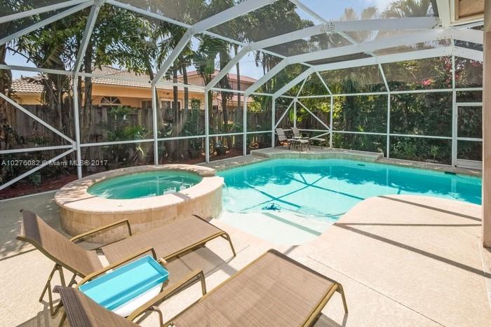 Beautiful 3/2/1 w/pool home in 24 hour manned guard gated community of Poinciana Parc. The stunning pool and waterfall spa are both heated salt water in upgraded larger backyard. Gorgeous lushly landscaped backyard is both fully fenced for privacy and screened in and features a covered patio, an outdoor kitchen perfect for entertaining and even an outdoor shower. Most of the household appliances are high end Bosch stainless steel. Large master bedroom has 2 closets, one is a walk in. Hurricane shutters are included. Excellent Davie schools. Located minutes from Sawgrass Mall shopping, major highways and airport.