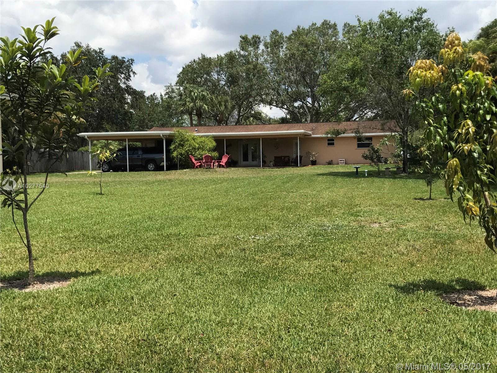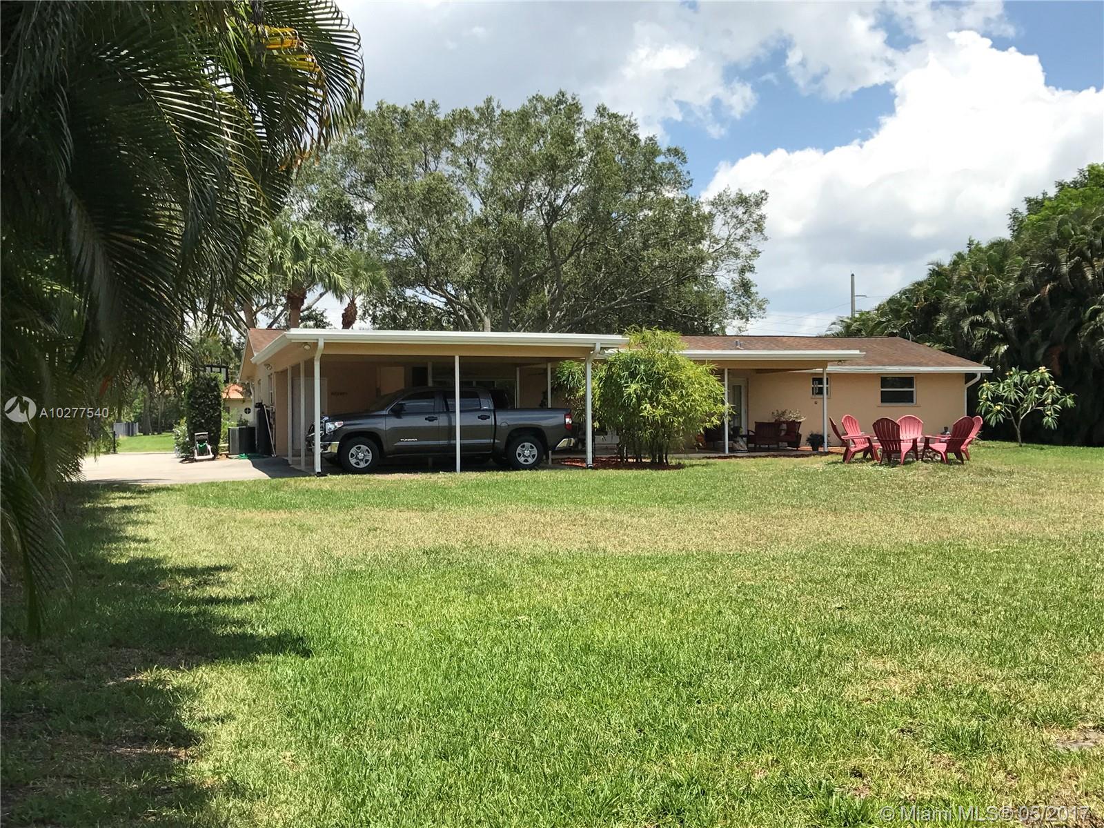 Beautiful Davie Ranch Home, remodeled throughout, modern kitchen, appliances, spacious bedrooms and a huge master with his and hers closets and sitting area. Large covered terrace can be easily enclosed and is pre-plumbed to add an outdoor kitchen. Large circular driveway with gated entrances. Huge detached ~1,000 sq ft garage. Property is almost 1 acre, all fenced, very private and no neighbors to the rear. Hurricane impact windows/doors garage & house. Centrally located close to Weston/schools/shopping.