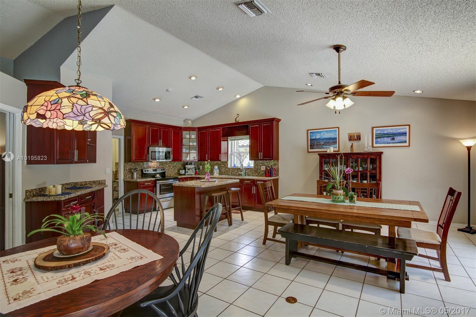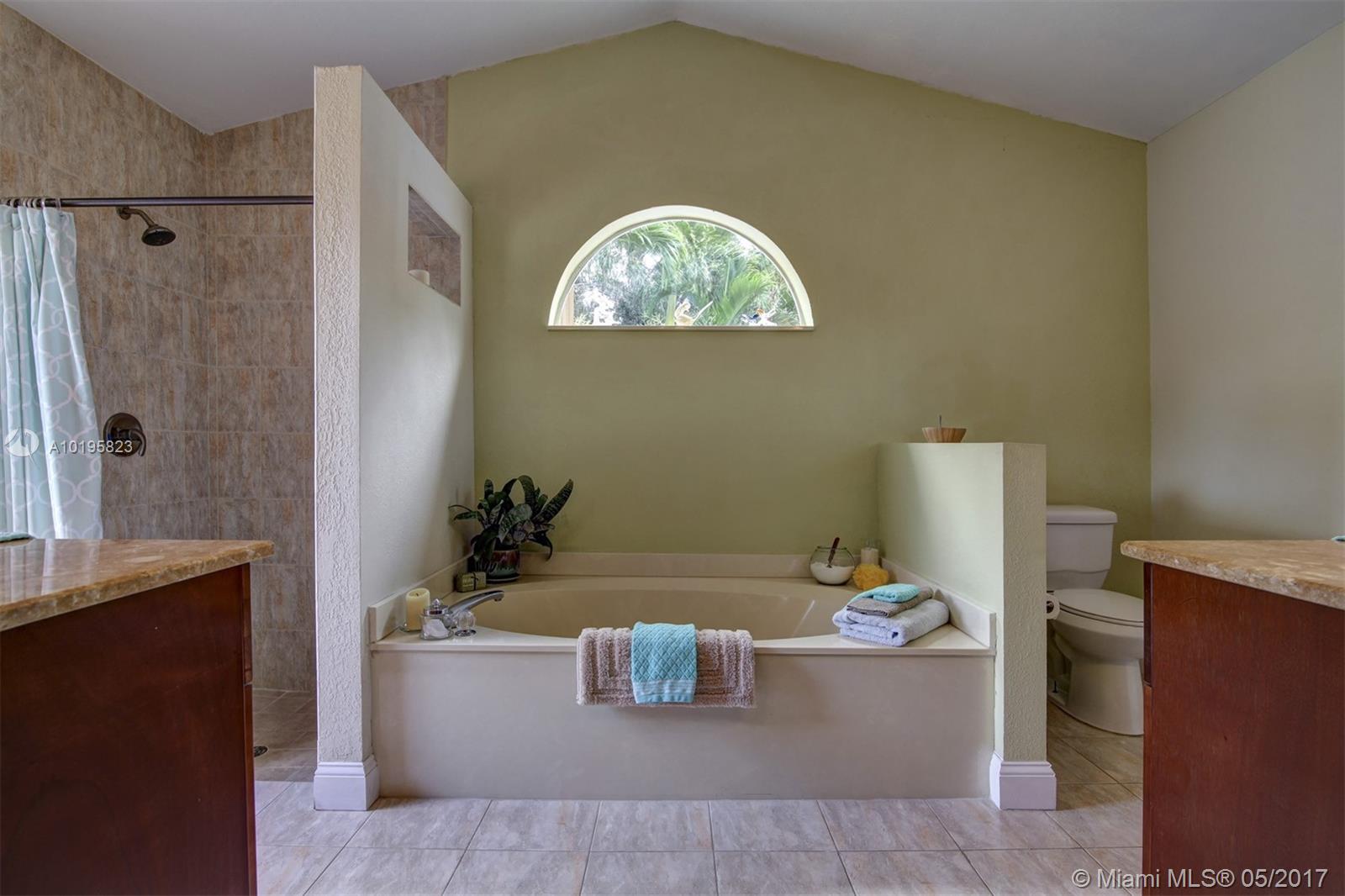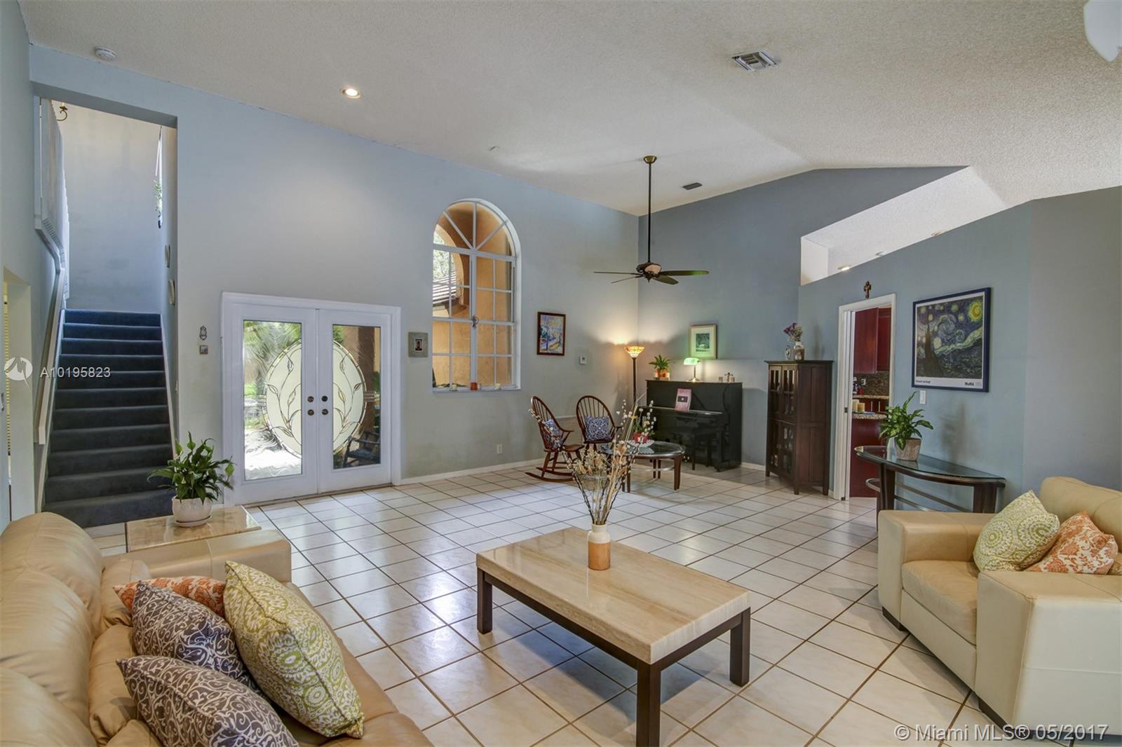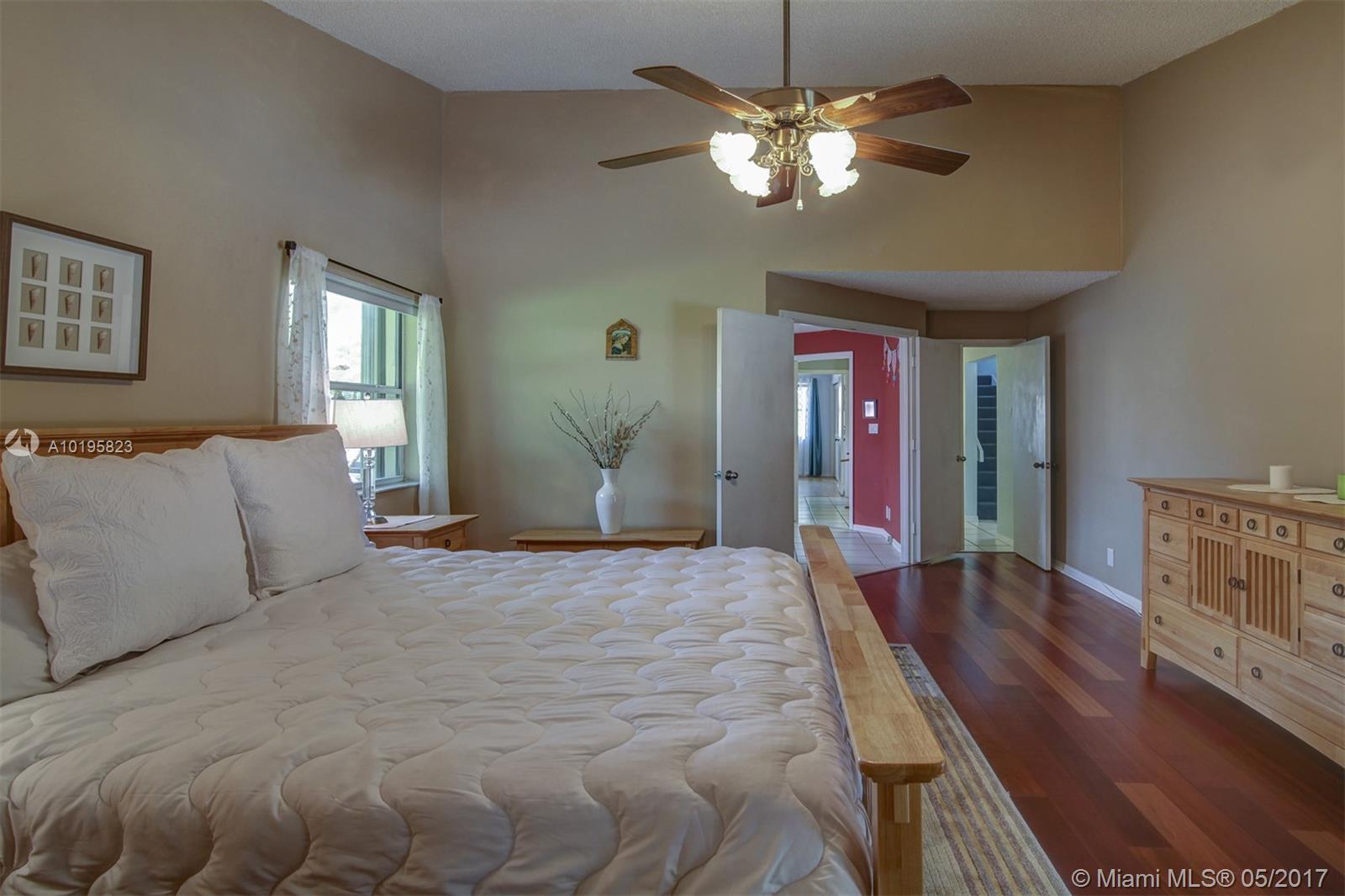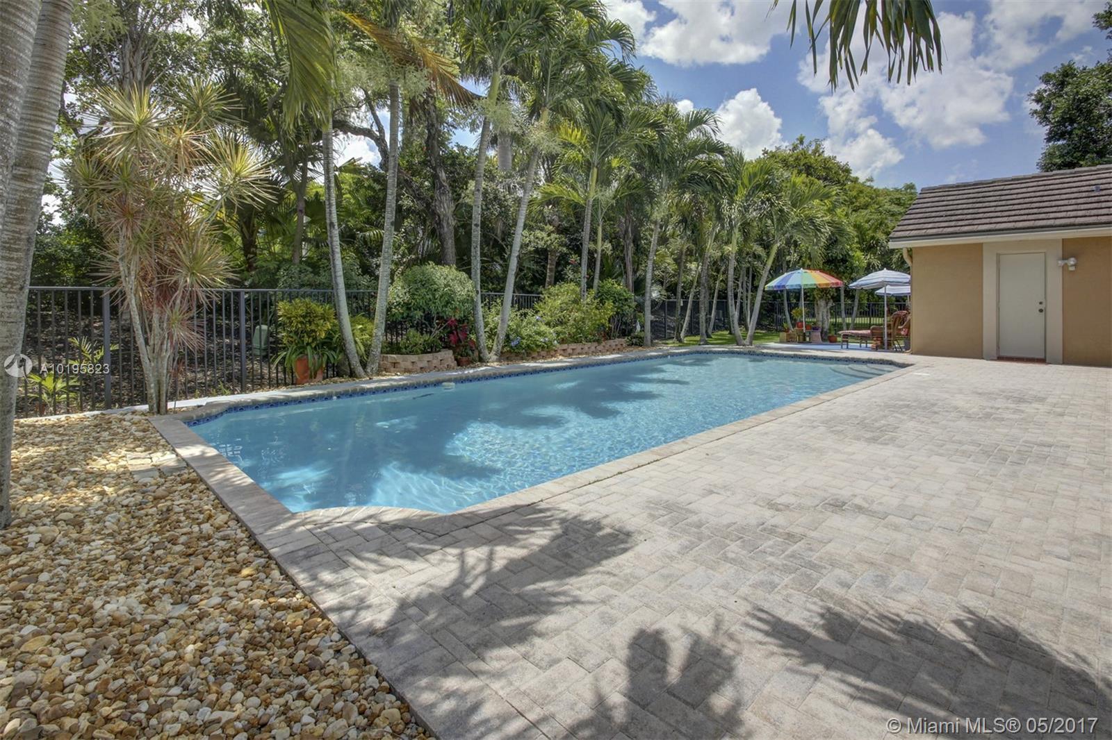 4 Bedroom, 3 Full Bathroom, Office (optional 5th Bedroom) well-kept home on quiet street near culdesac, A+ schools (Country Isle Elementary, Tequesta Trace Middle, Cypress Bay High, parks in walking distance, Weston Town Center in walking distance, sidewalks on both sides of the street, partial lake view, 40 x14 pool, roof 7 yrs, new sprinkler, accordion shutters, aluminum fence, two car garage, 4 car driveway, over 20 mature palm trees on property, all appliances included, high ceilings, new refrigerator and stove, granite counter tops, 44 inch cabinets (cherry wood), recessed lights, separate pantry, separate washer and dryer room, master BDR on ground floor with hardwood floors, 2 walk in MBR closets, large master suite with 2 cabinet sinks, shower, separate garden tub plus cabana door