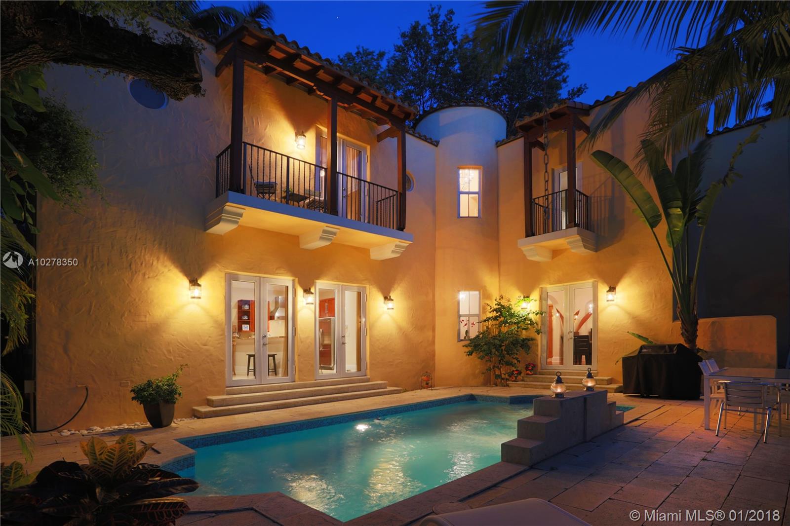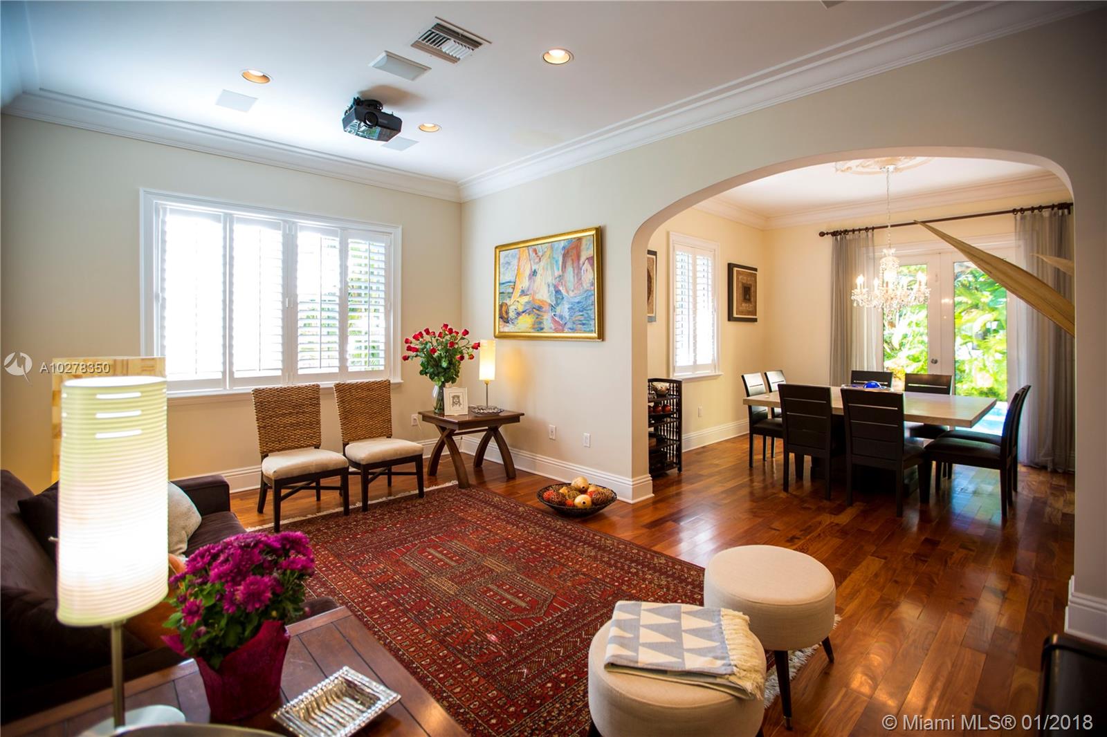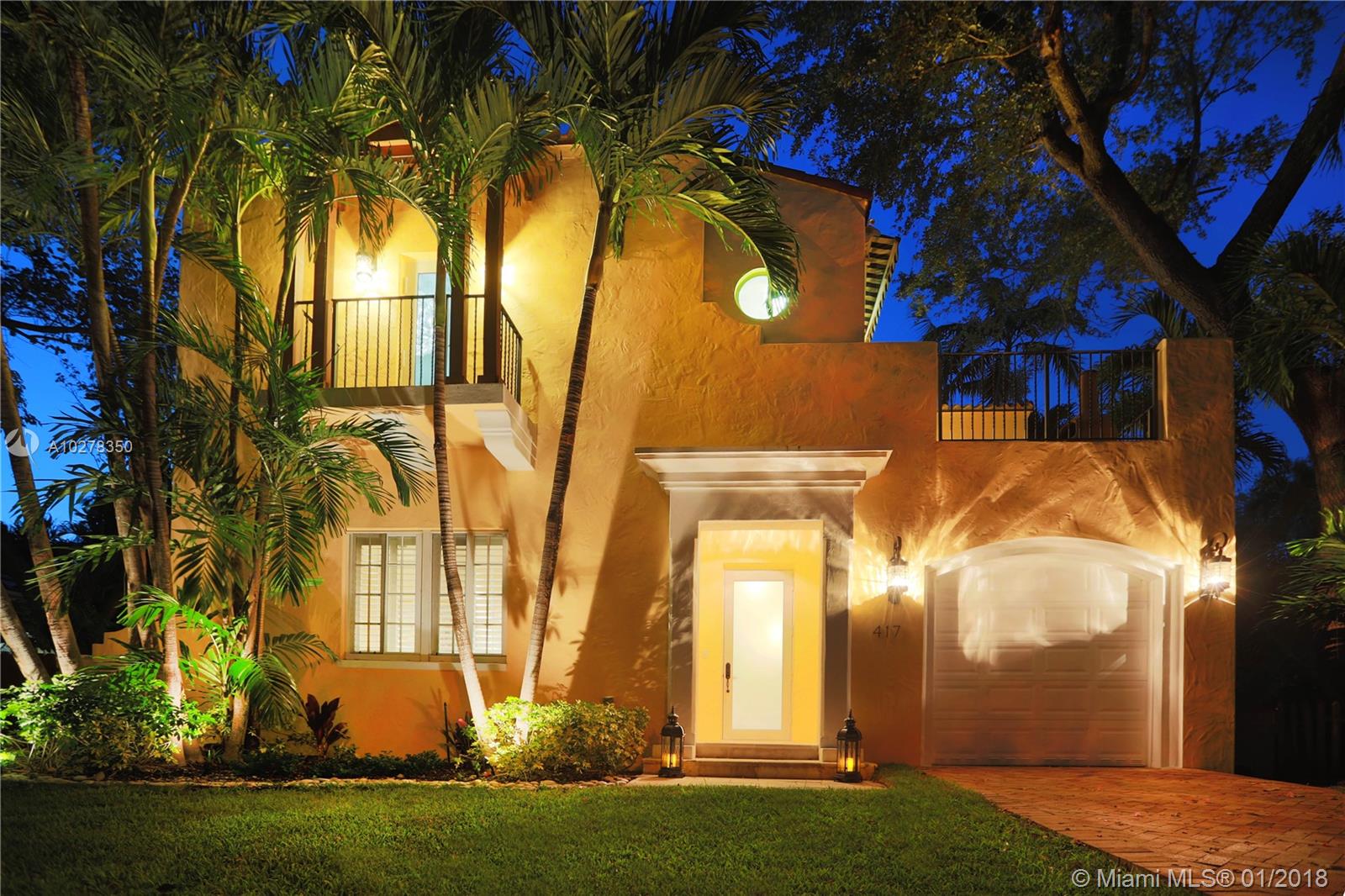 Classic elegance meets new world comfort in this newer construction home in the South Gables, just East of US-1. This lovely 2 story 3-bedroom home, built in 2009, is ready for you to move in. Romantic balconies, lovely open plan kitchen, with stainless steel, granite and glass backsplash. 10 foot ceilings, hardwood floors and impact windows that flood this home with light, offer you a great place to live. Beautiful pool with waterfall and a great patio to relax after a hard day. The living room includes a projector and retractable screen to enjoy a movie or two. Only a 15 minutes drive to the Airport and downtown Miami. You will live close to restaurants, parks, shopping and the best that Coral Gables has to offer.