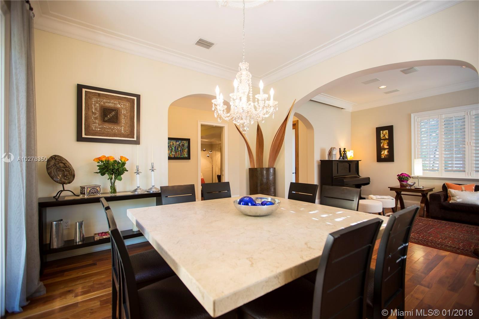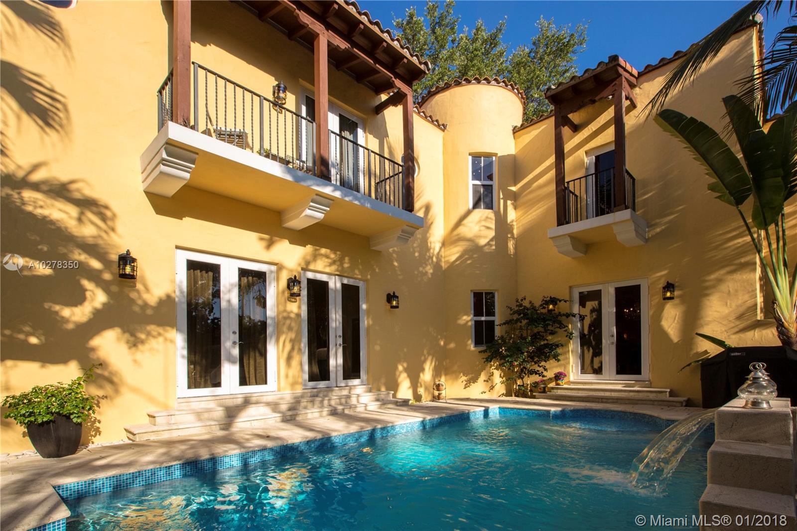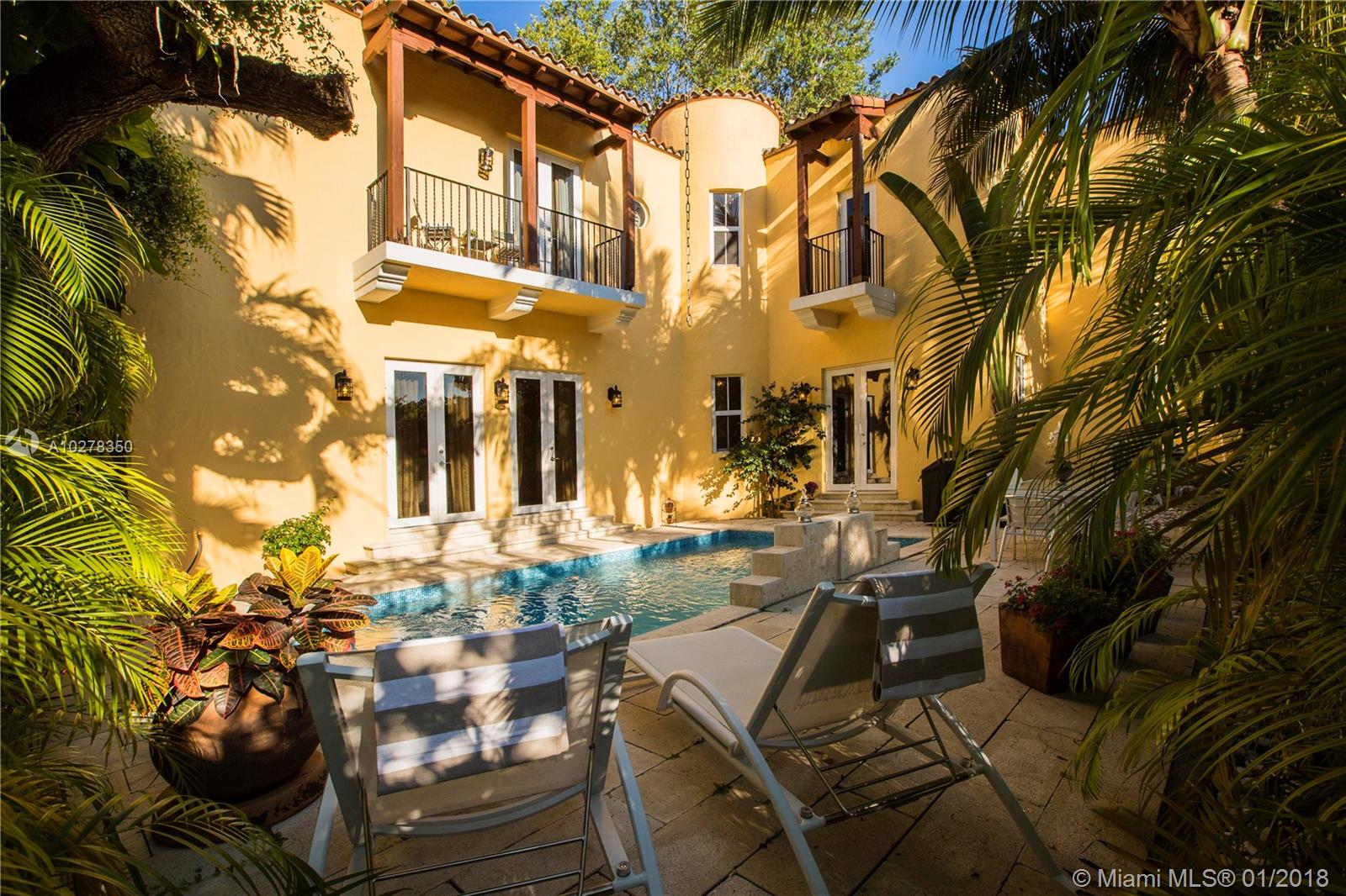 Classic elegance meets new world comfort in this newer construction home in the South Gables, just East of US-1. This lovely 2 story 3-bedroom home, built in 2009, is ready for you to move in. Romantic balconies, lovely open plan kitchen, with stainless steel, granite and glass backsplash. 10 foot ceilings, hardwood floors and impact windows that flood this home with light, offer you a great place to live. Beautiful pool with waterfall and a great patio to relax after a hard day. The living room includes a projector and retractable screen to enjoy a movie or two. Only a 15 minutes drive to the Airport and downtown Miami. You will live close to restaurants, parks, shopping and the best that Coral Gables has to offer.