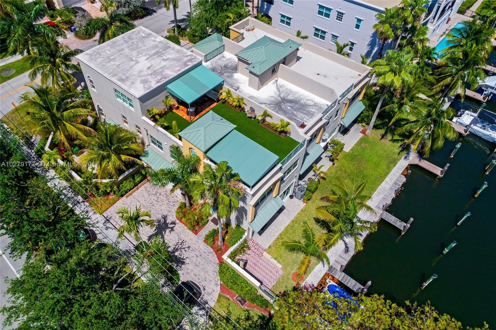 Waterfront, 3 bedroom, 2.5 bath town home. ocean access, no fixed bridges, dock for a 38' boat. Custom renovation featuring Omega cabinetry, granite, stainless appliances. Travertine floors, engineered planks on the stairs and 2nd floor. 1,200 sq. ft. private tropical rooftop oasis with Saltillo tile and artificial turf. 42' wide patio ont he water. Impact windows throughout, accordion shutters for the doors. Corner town home with circular driveway and a 2 car garage. Community pool and Bayview school district.