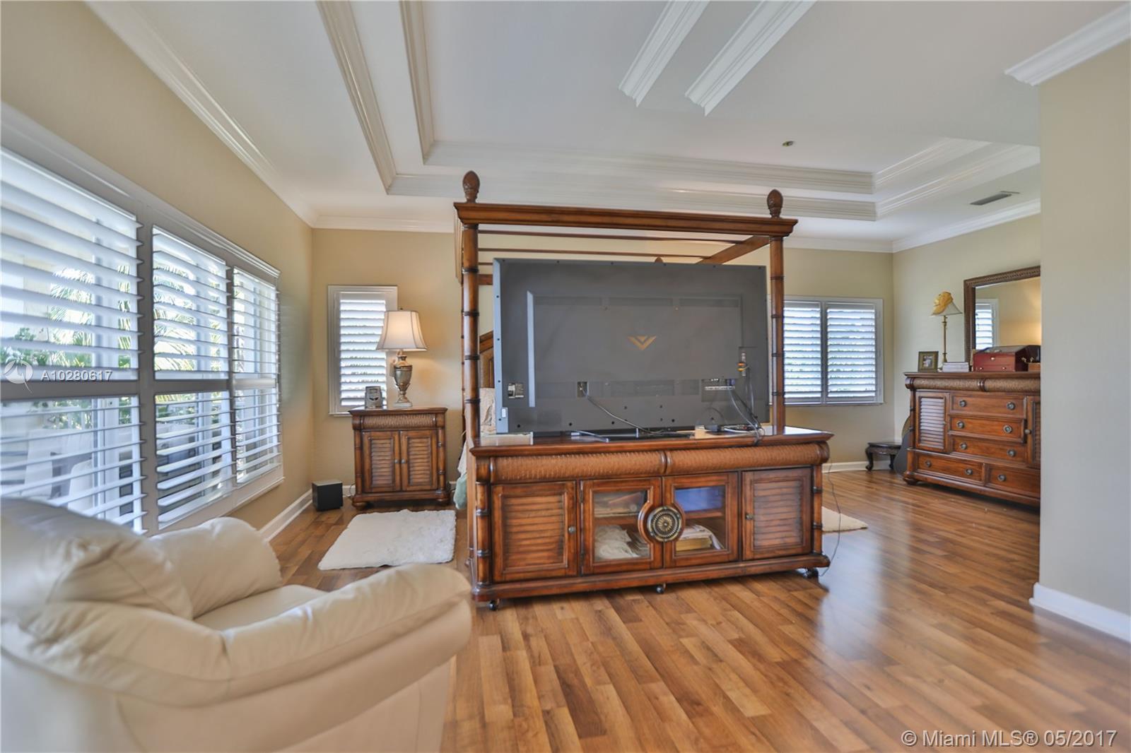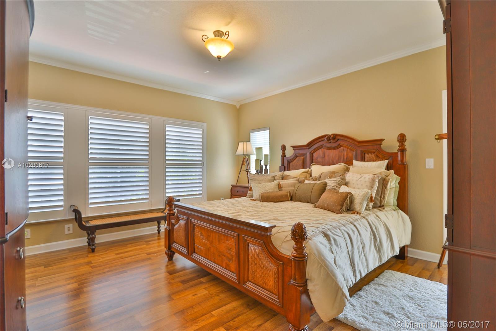 Stunning Mediterranean pool home overlooking a beautiful lake. Spacious 4 bed/ 3 bath. One bedroom downstairs with a full bath & private entrance. Master suite has sitting area, private balcony, large his/her walk-in closets and upgraded master bath. Large gourmet kitchen with granite countertops, wood cabinets and SS appliance. Huge family room, built-in cabinets, walk-in pantry and more! This home is in a private gated community with pool, gym, basketball ct and tennis ct. Schedule a showing today!