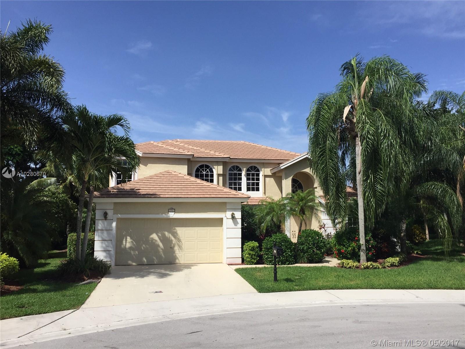 Enjoy the lake view and lounge at your pool admiring a beautiful sunset! Located in the gated and desirable boutique community of Jasmine Island, this stunning 2 story home is based in a private cul-de-sac, with wide lake view and sparking large pool. Hard wood and tile floors, this 4 bedroom house has all gorgeous closets designed by Elfa; 3 full baths, (two with marble counter top), kitchen with new stainless steel appliances and granite counters; hurricane shutters and French doors. "A" rate schools.