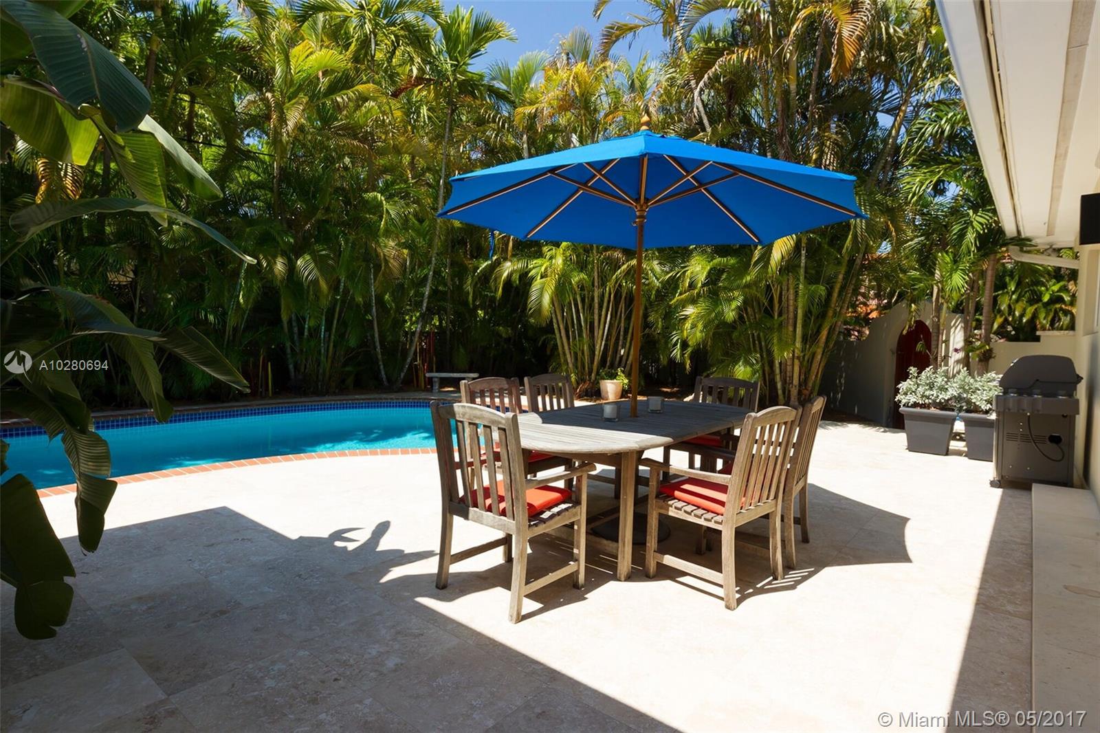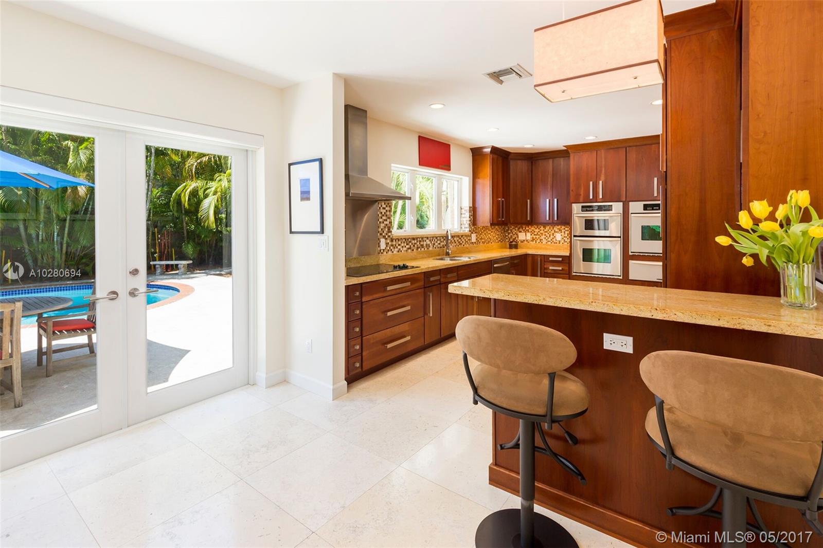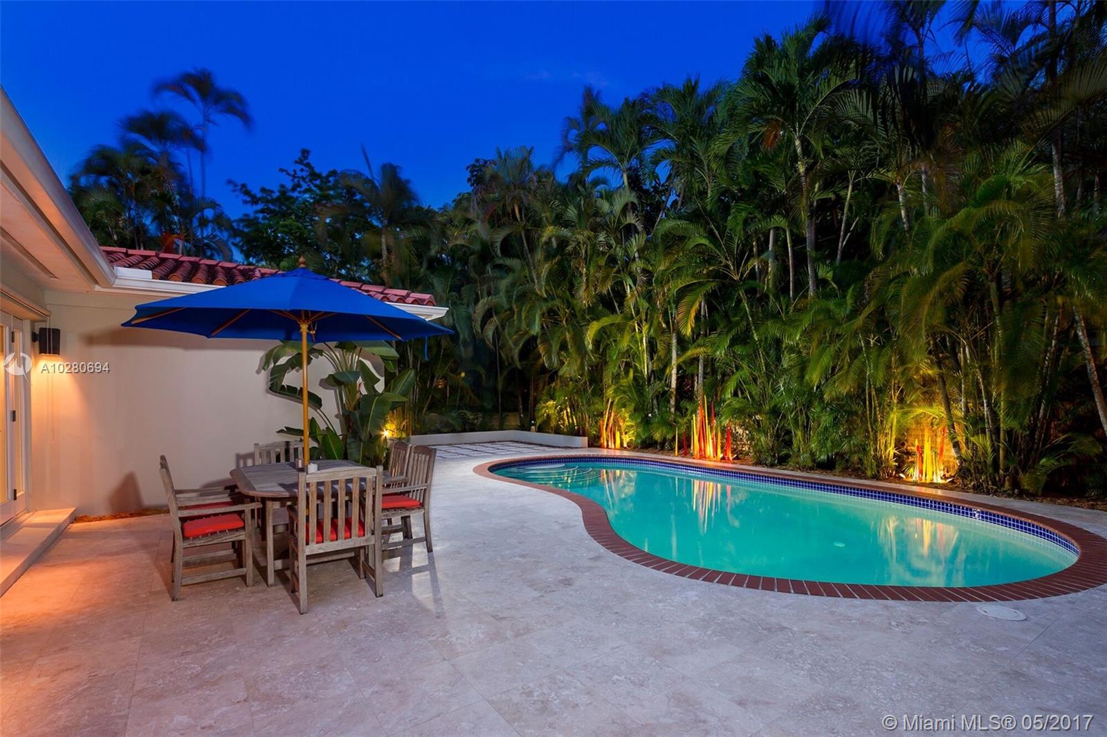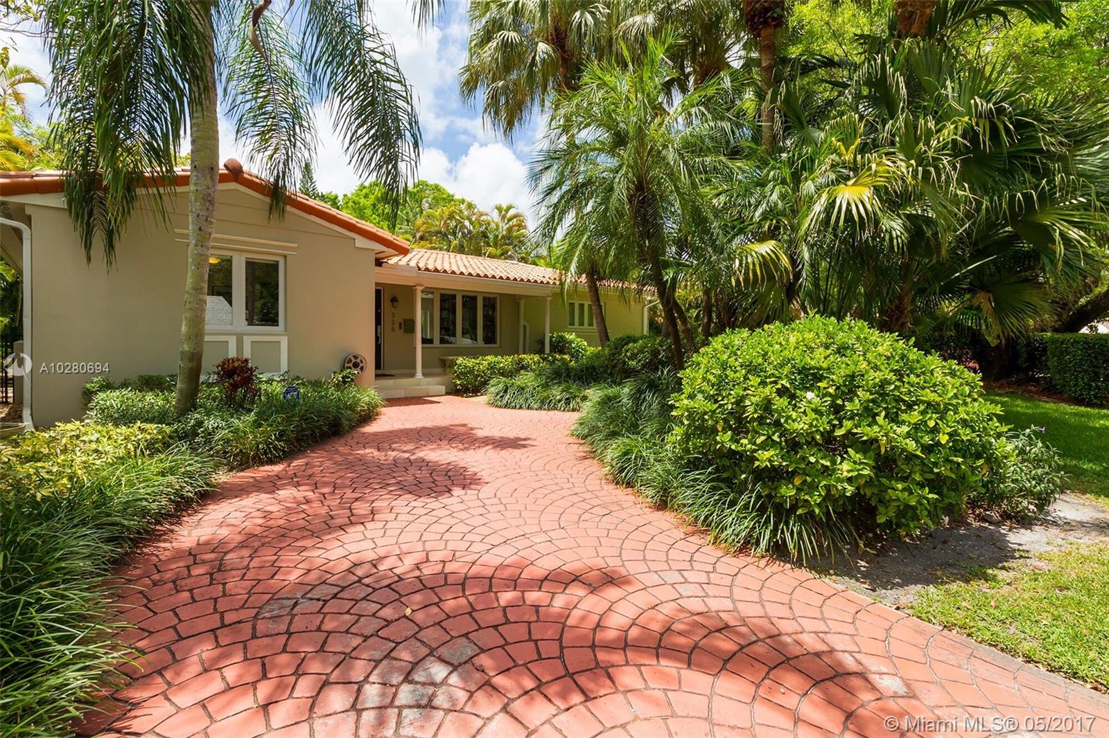Completely renovated South Gables home with a bright open floor plan and gorgeous tropical views of the lushly landscaped backyard & pool. This 3 bedroom / 2 bath home was gut renovated in 2005 and has all new electrical, plumbing, impact windows/doors and much more all done with permits. Updated kitchen with granite counters and stainless appliances, elegant bathrooms, custom built-in cabinetry and more complete this warm and inviting home. If you are looking for a move-in ready South Gables home, this is the one!