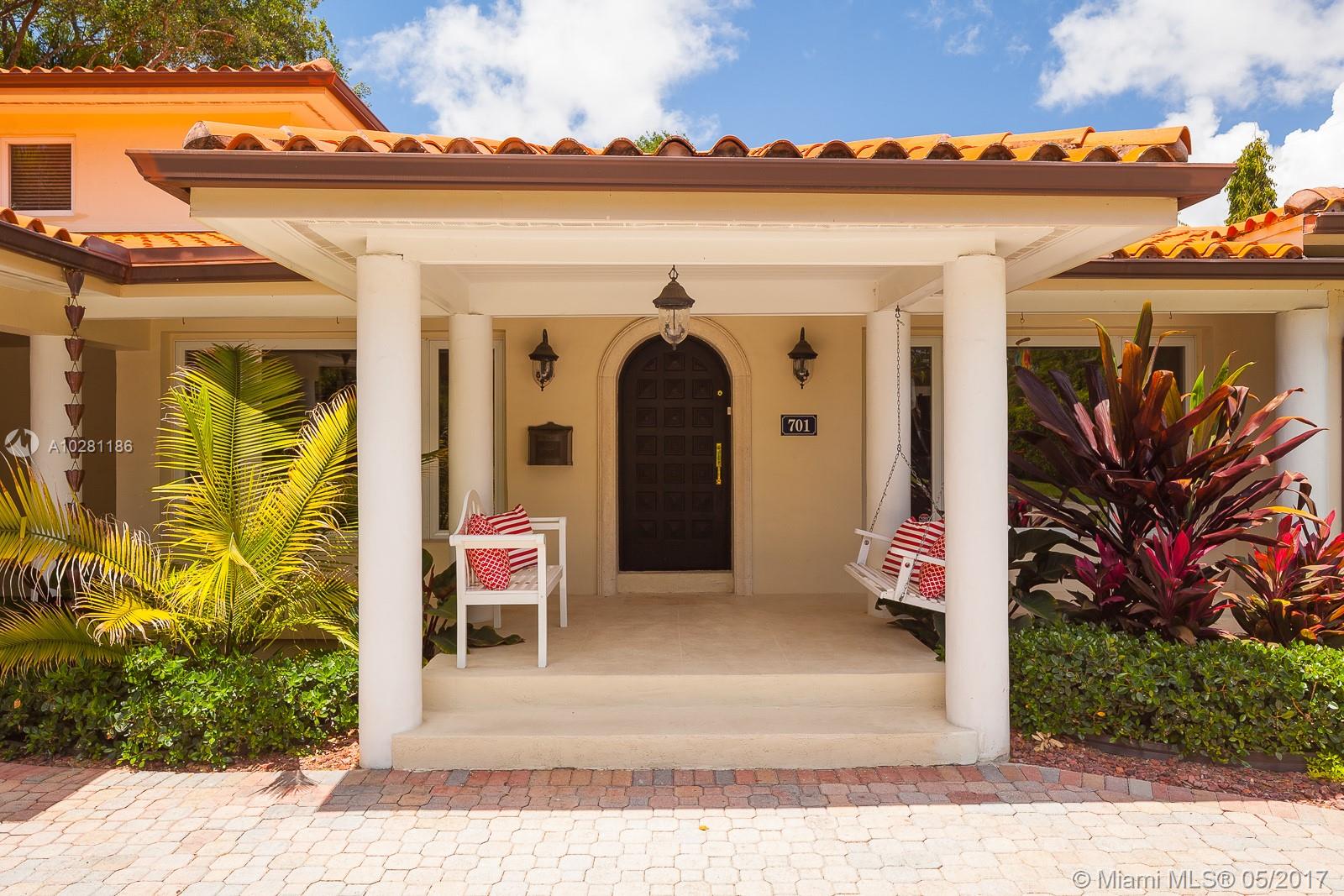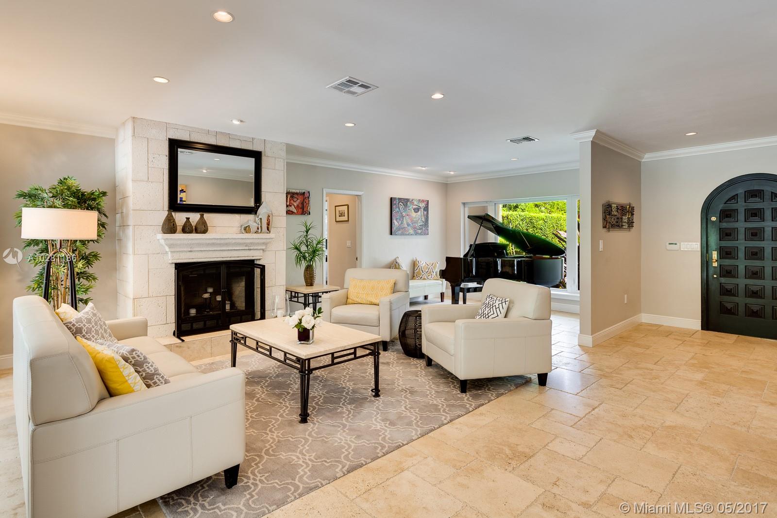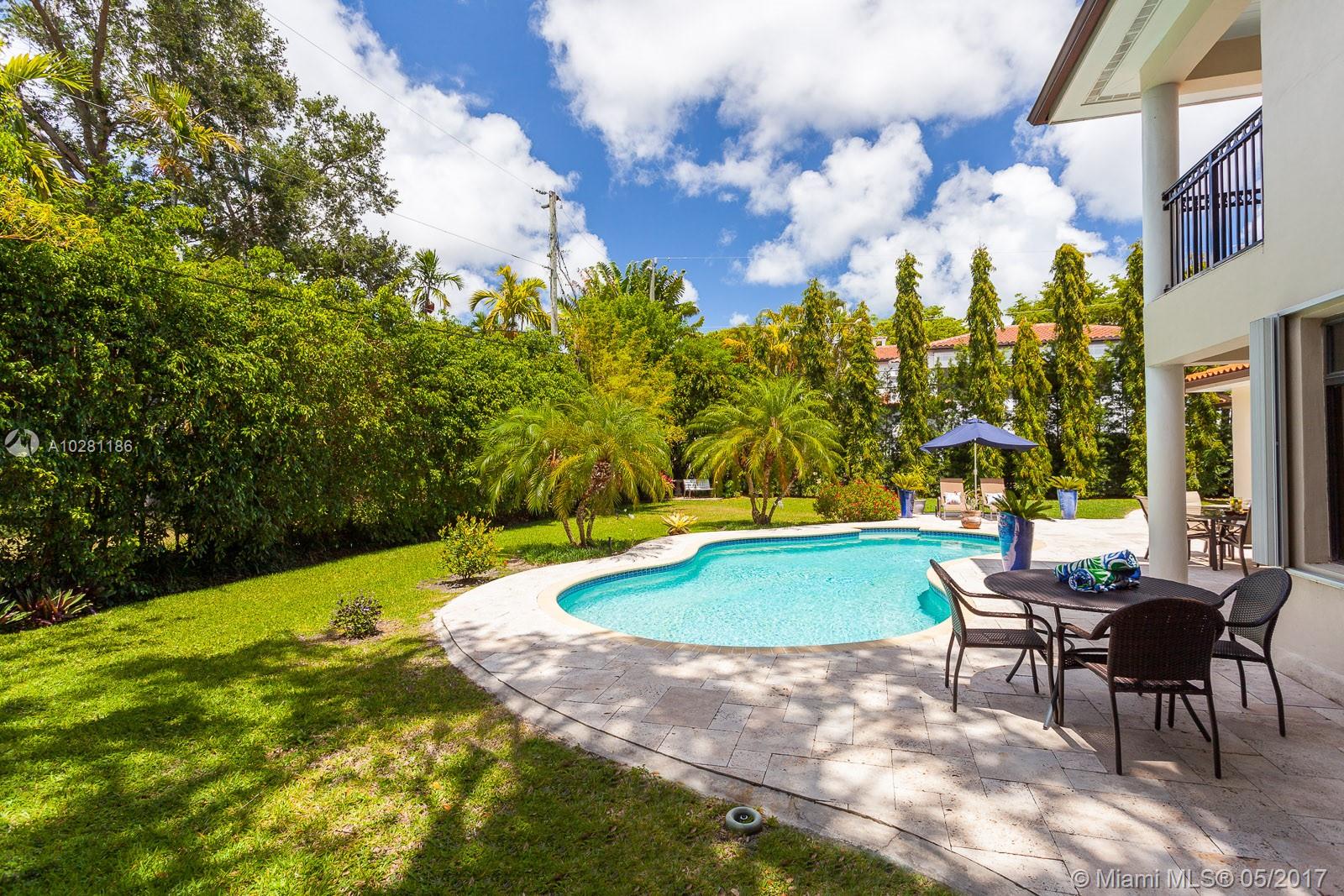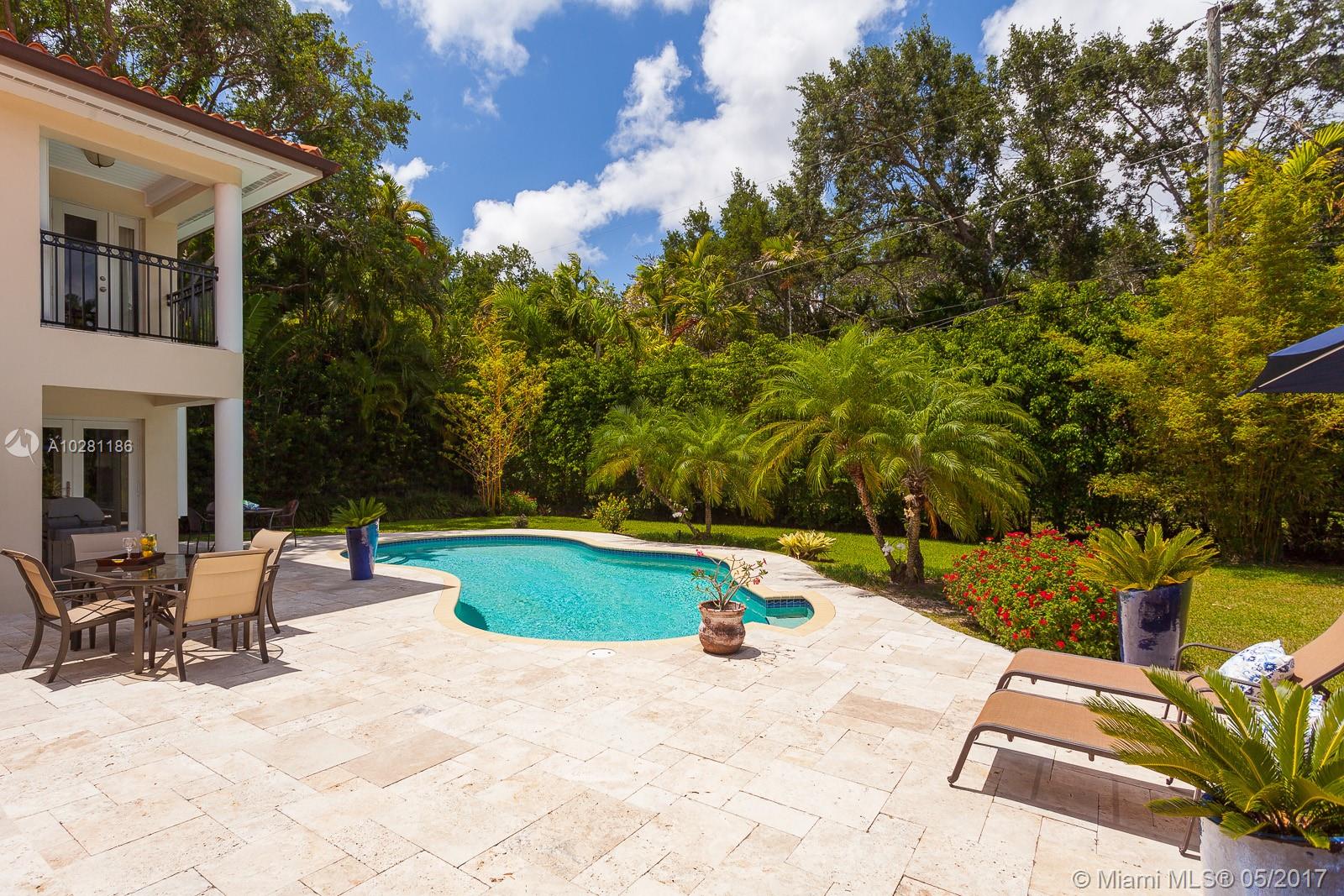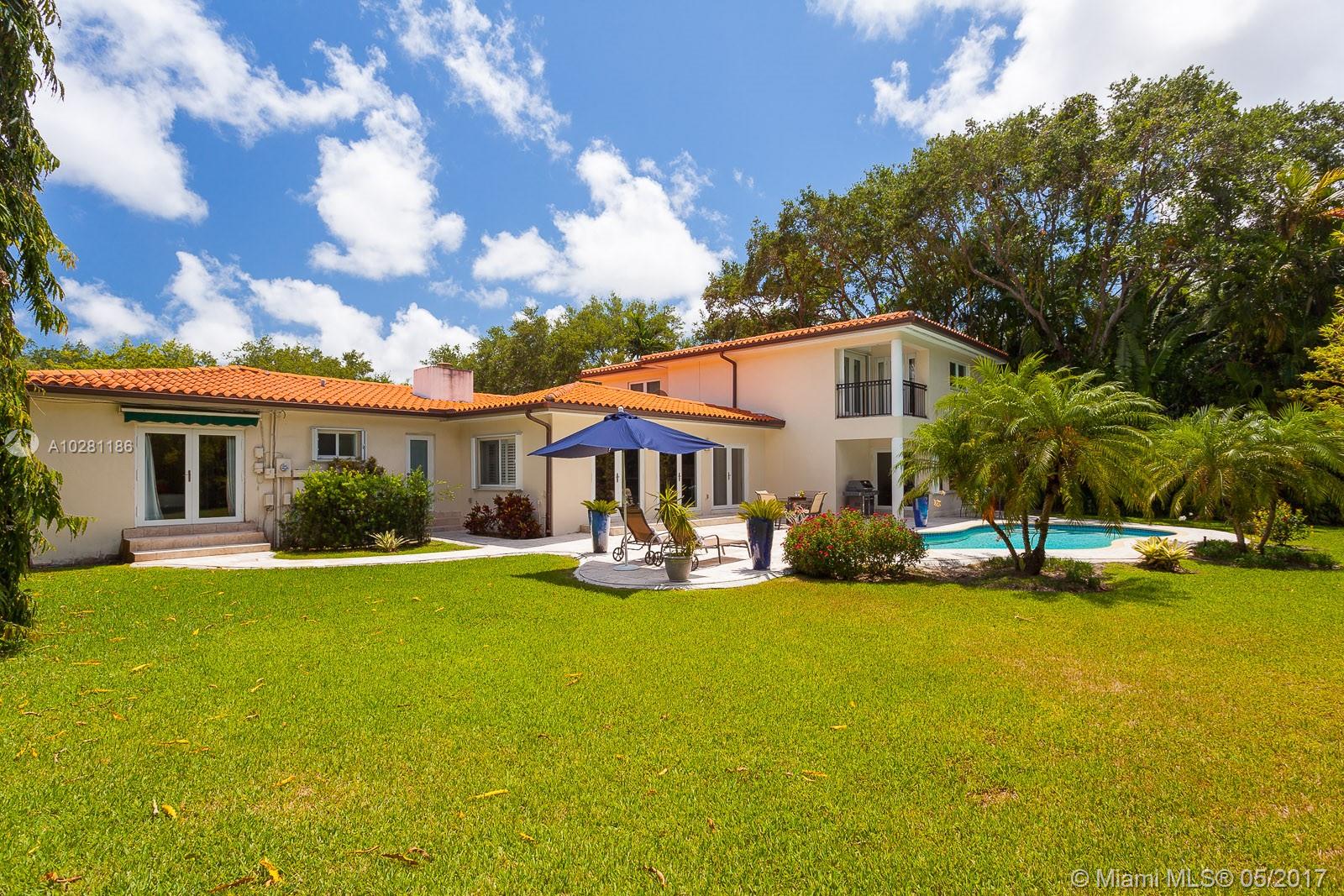 Live in Coral Gables famed Platinum Triangle! This gorgeous, updated 6-bedroom home (Master + 1BD ensuite upstairs & 4 BD/3BA down), features a stunning eat-in kitchen w/ butlers pantry, living dining & family rooms that open to an inviting pool & garden (13,747 sq ft lot), built-ins, ample closets, laundry room, stone & hardwood floors & impact glass & shutters. Truly a treasure, this home will be the center for many happy gatherings with family & friends. A Very Special home.