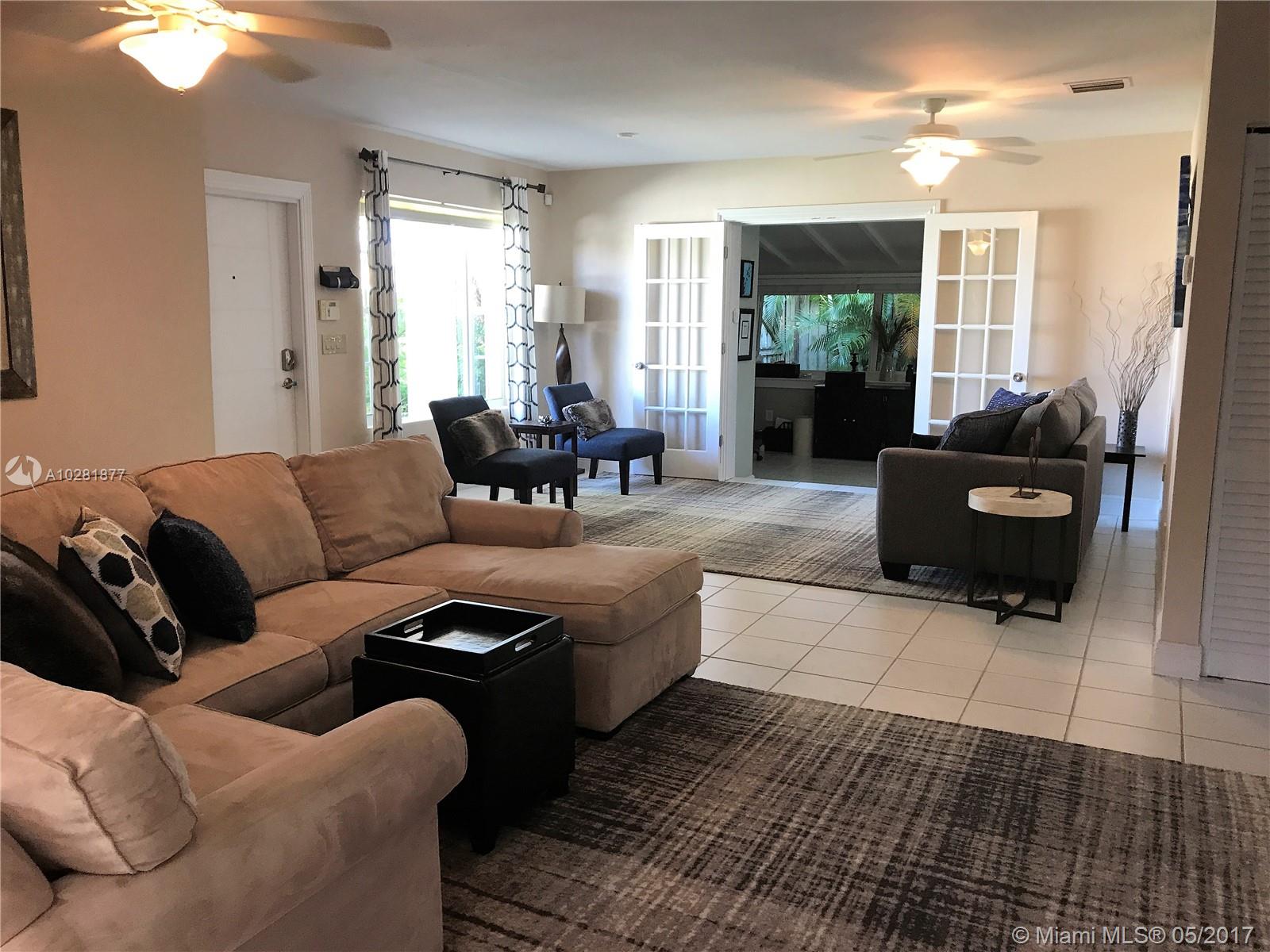Lovely mid-century modern home in desirable Highland Lakes, a gated community. This 3br/2ba home is move-in ready. House boasts a large, eat-in kitchen with stainless steel appliances, a sizeable island, and granite counter tops. Tons of storage space throughout. Very short walk to houses of worship and excellent schools. fenced in yard with easy-entry pool includes a child safety fence. Accordion hurricane shutters and impact resistant windows, brand new entry door, brand new impact resistant glass rear door, and new concrete driveway. Minutes from I-95 and the Aventura Mall.