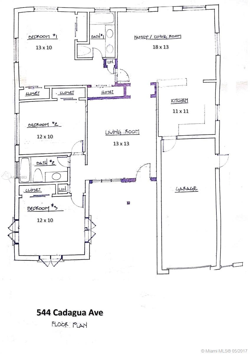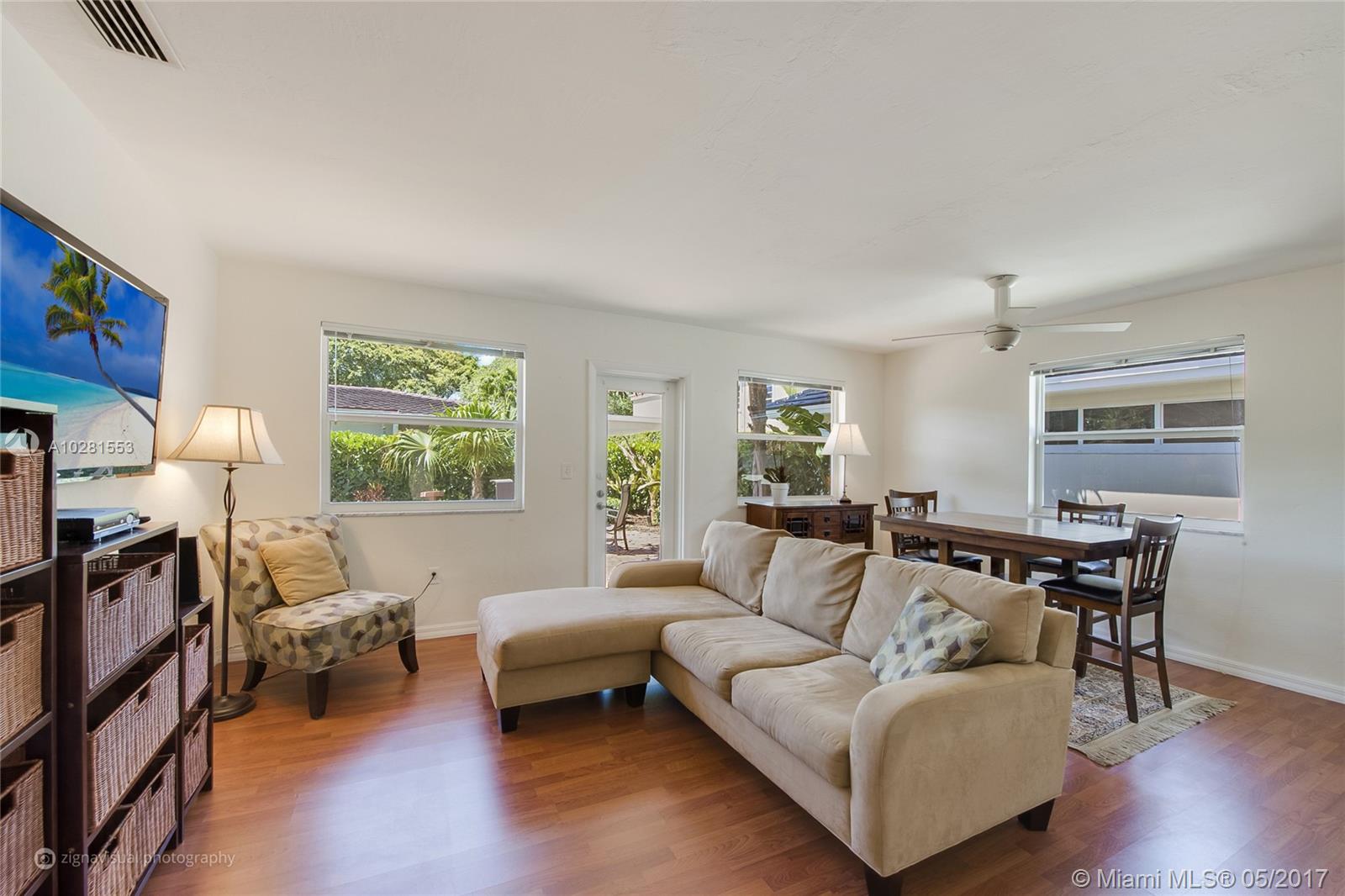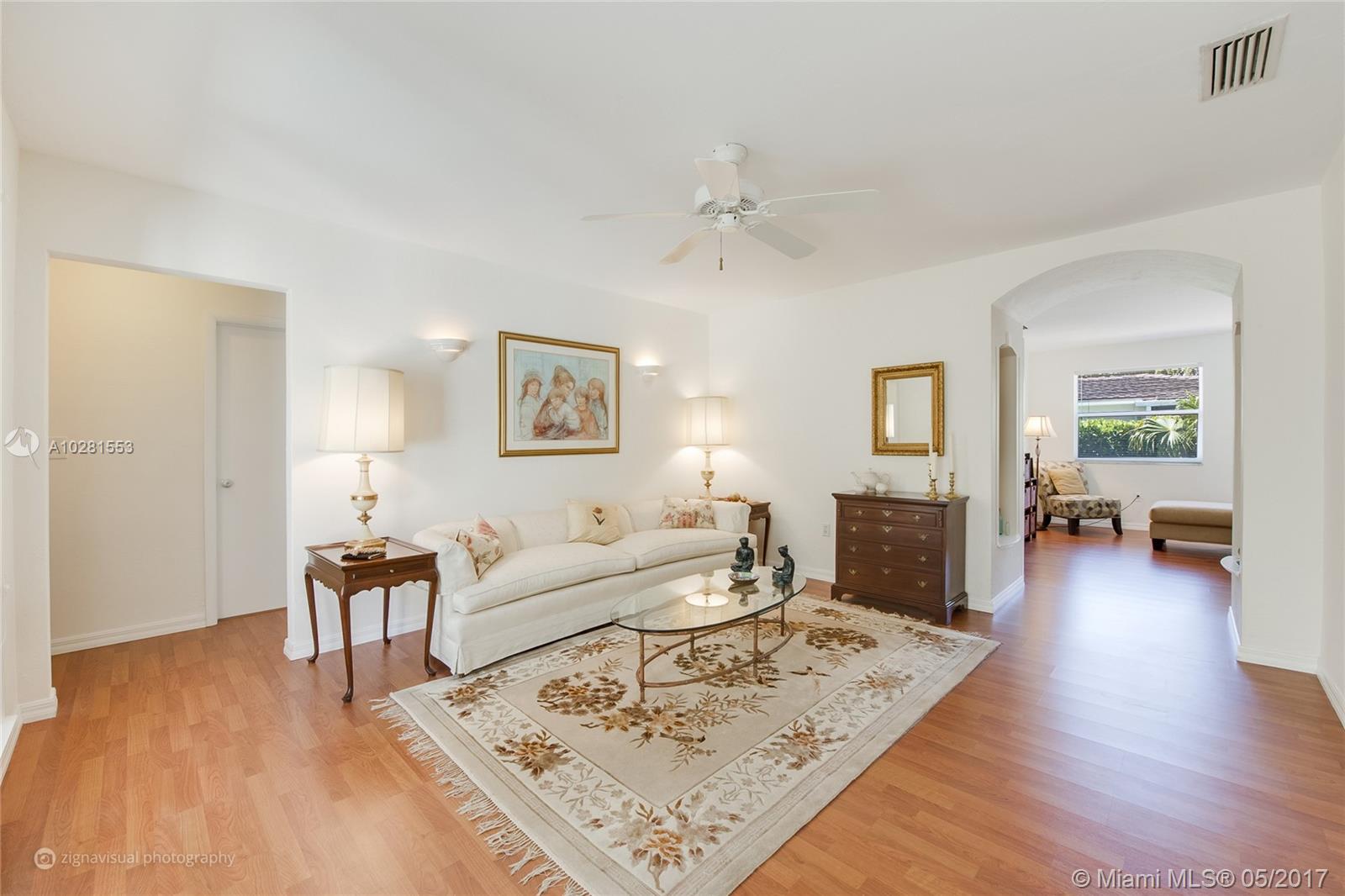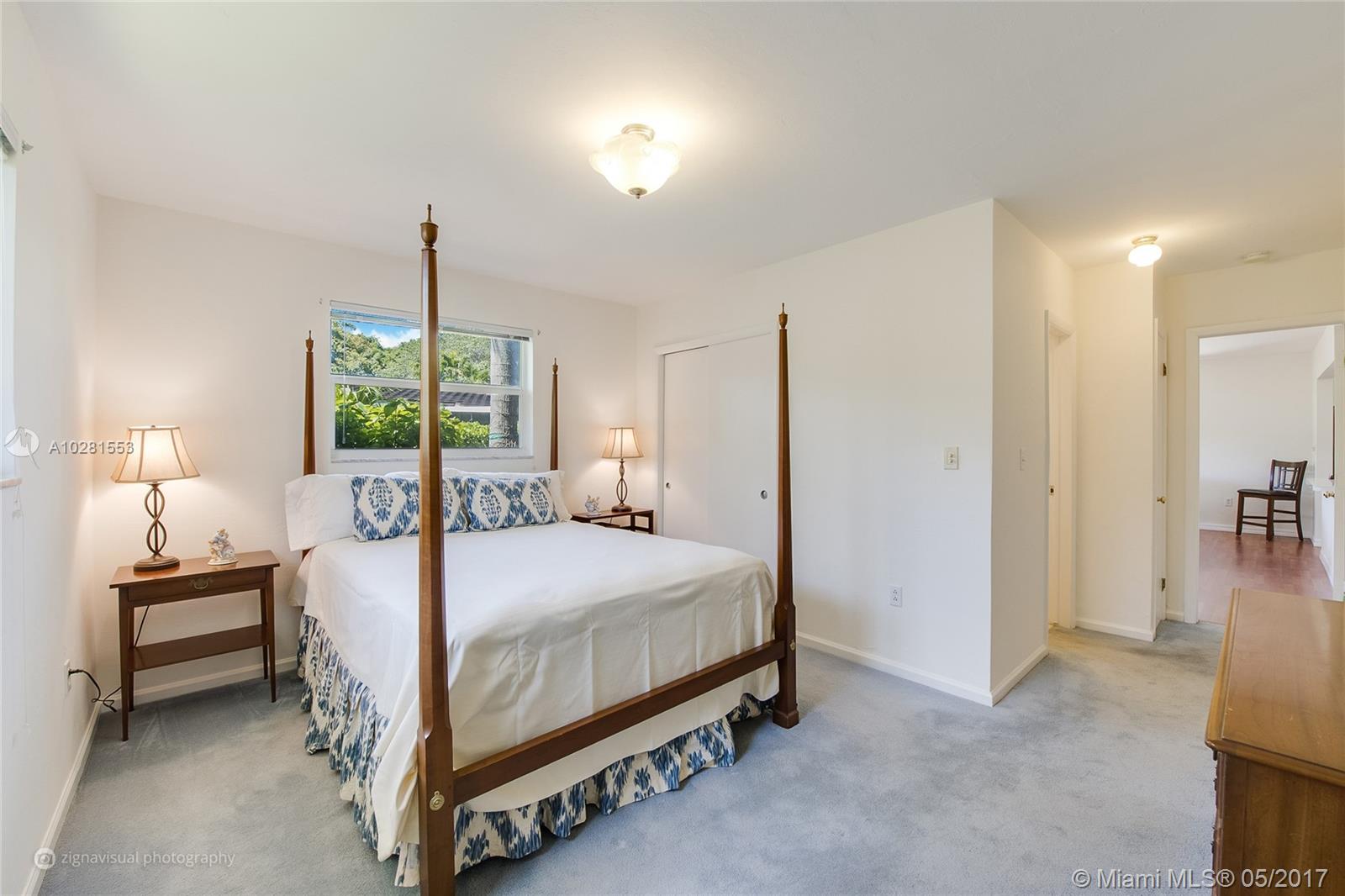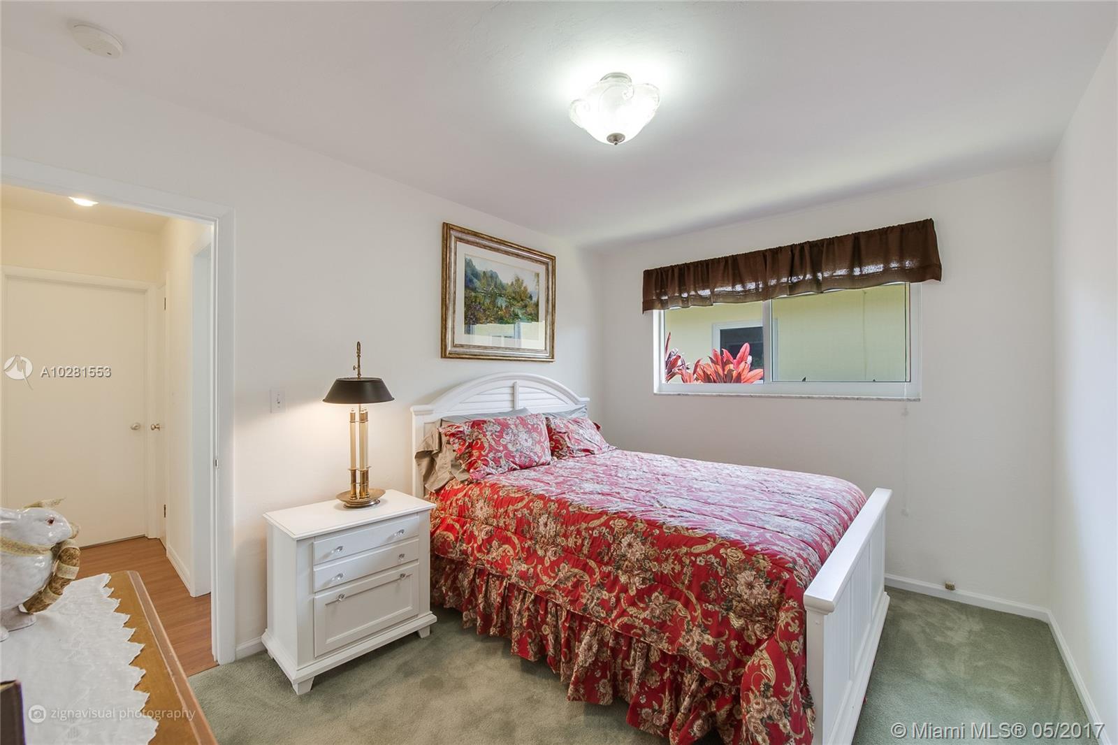 Light & bright, pristine home on elevated lot with brick driveway and backyard brick patio surrounded by privacy hedge and fence. New 2011 impact windows & doors. Kitchen 11x11 open to 18x13 family room & dining area. New 2014 central A/C. Painted inside 2017 & outside in 2014. Master has 3 closets. Laminate wood floors in kitchen, living & family rooms. Limited access to quiet street only 1 block long. Walk to Merrick Park, 1 mile to UM & Doctor’s Hospital and 1 mile to Miracle Mile.