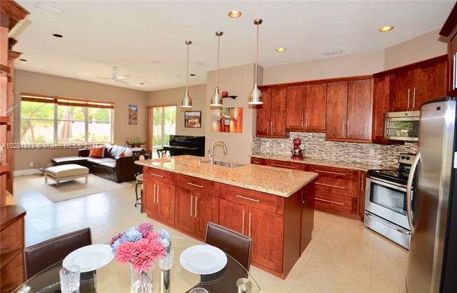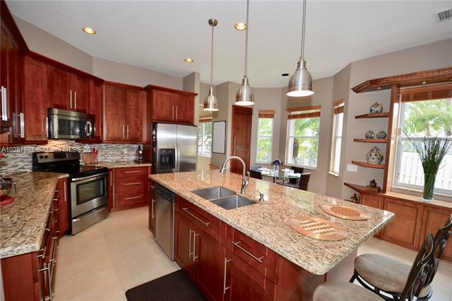 Get the best of Weston lifestyle in this impeccably maintained 5 Bedroom, 3 Bathroom pool home on a corner lot in the exclusive community of The Lakes. 24" seamless porcelain floor, 5 1/4 baseboards, new neutral paint. SPECTACULAR KITCHEN with 42" wood cabinets, soft-close drawers, pull-out spice racks, HUGE center island with massive, one-piece granite top, top-of-the-line SS appliances, backsplash and more. Remodeled master bath. Relax on the large landscaped patio by the pristine salt water pool, huge corner lot with extended fence, accordion shutters. New top of the range air conditioning unit with NEST unit, New top of the range boiler and so much more. Want a trouble free property? Recent inspection had very few minor issues that seller has fixed for YOU"
