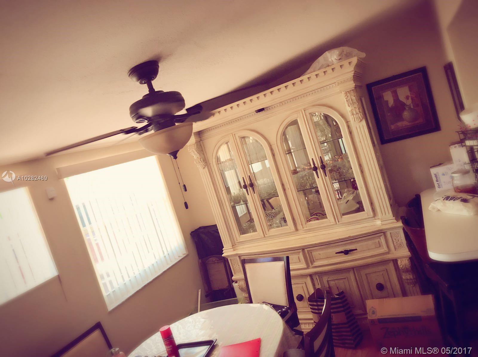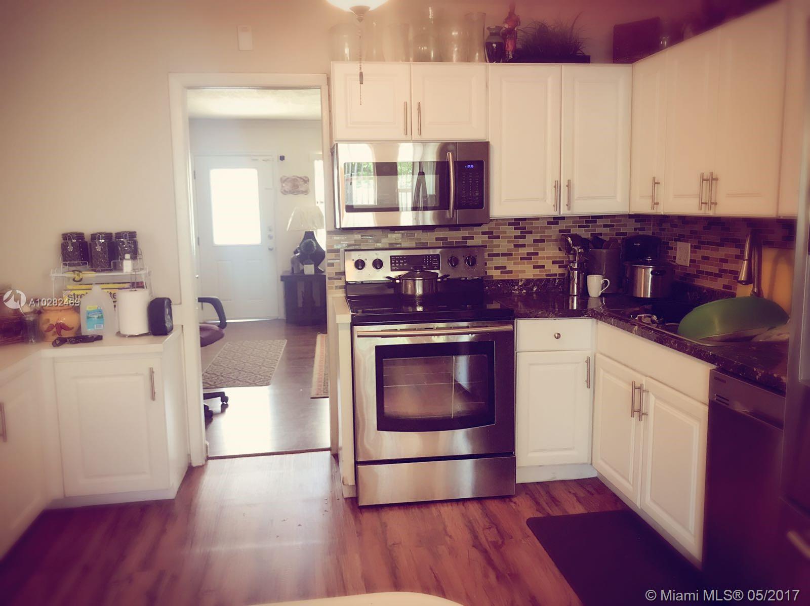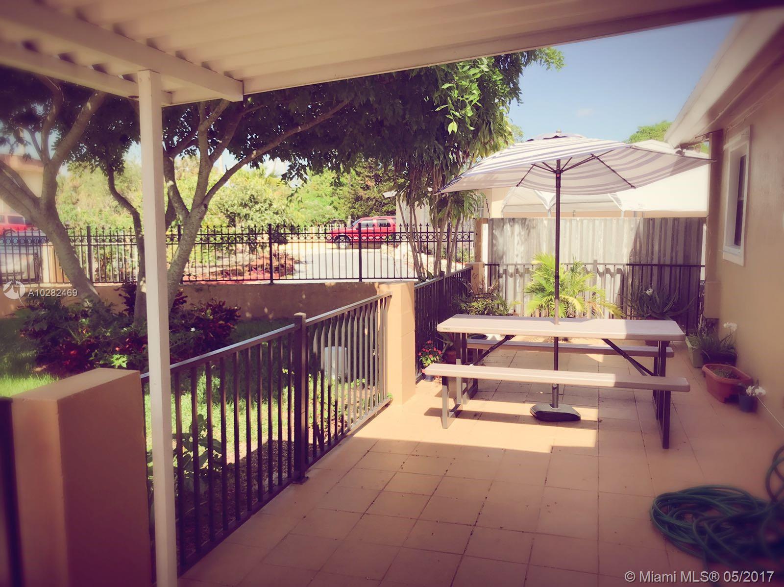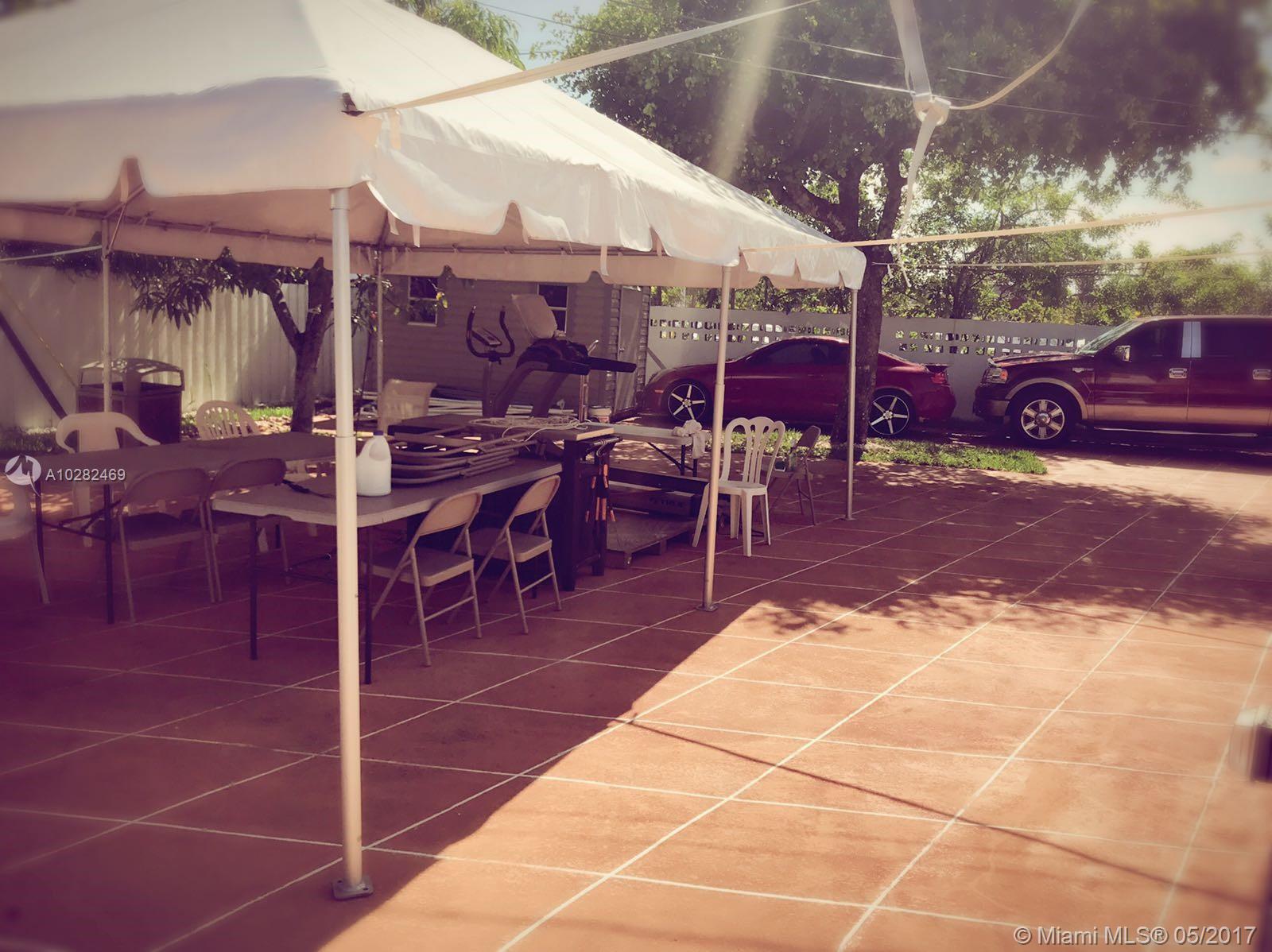 4 bedrooms, 3 baths with huge carport with electric gate enough for 4 cars , laminated wood floors throughout, updated kitchen cabinets, stainless steel appliances, updated bathrooms, newer windows, newer A/C, Crown moldings in living room, fenced in back yard and concrete designed pavilion 25x14, lots of room for family gathering and entertainment. 10 yrs old roof, Sprinkle system and hurricane shutters.