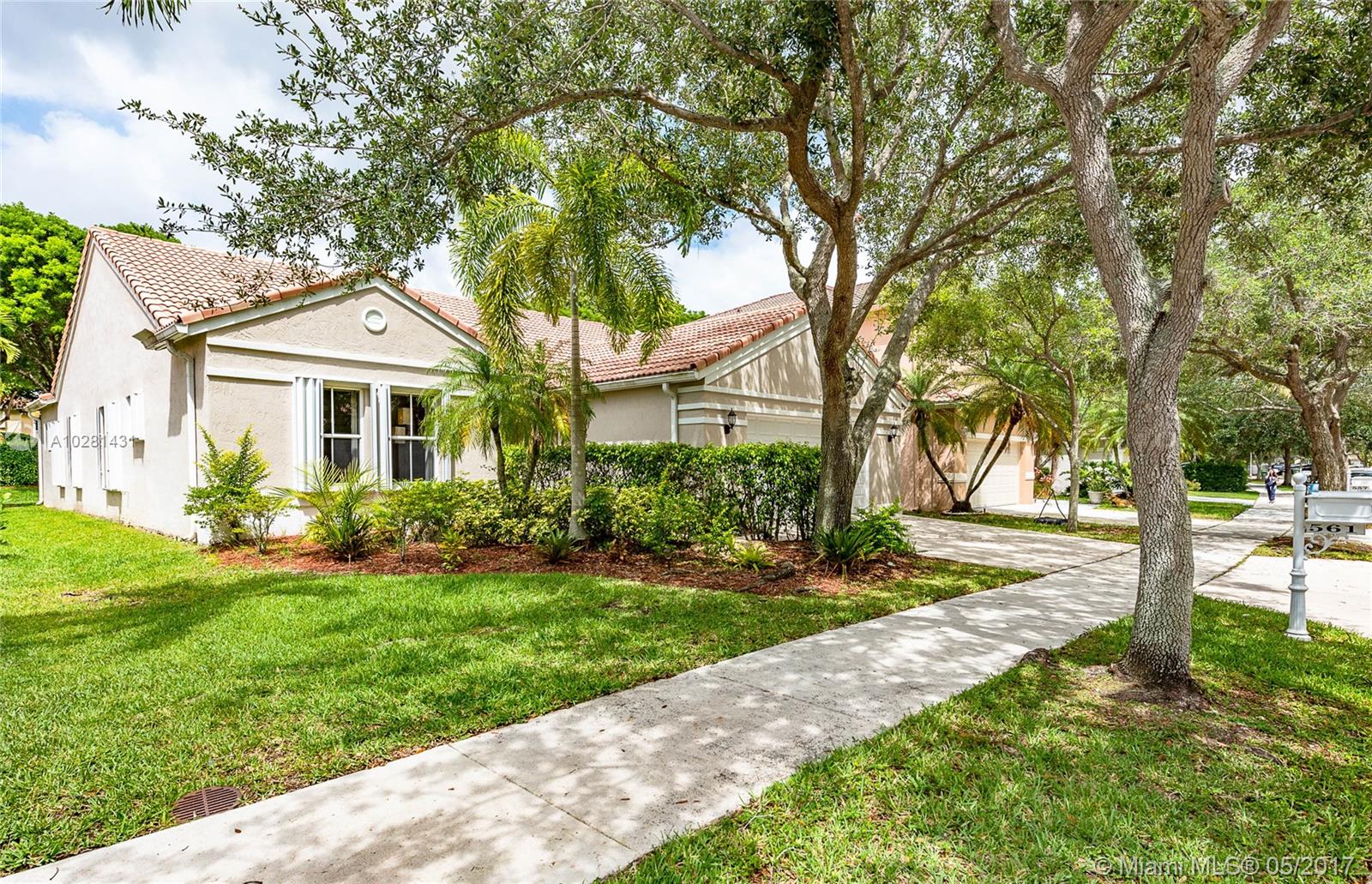 Located in the gated community of The Falls you will find this beautiful home with a desirable and very functional floor plan. Home features 3 bedrooms, 2.5 baths with formal dinning room, formal living room plus a separate family room area. Remodeled kitchen with stainless steel appliances and granite counter tops.( Refrigerator and Rage/Oven are brand-new) Neutral tile in all living areas, Wood flooring in bedrooms , Remodeled master bath, HE washer and drier, New up to code garage door, Accordion Shutters, Great patio area with plenty of room for a pool. Walk your kinds to one of the best elementary schools in Weston. Community offers; Guard 24/7, Pool, Basketball court, Sand Volleyball and Kids playground. Great Location a Must see!