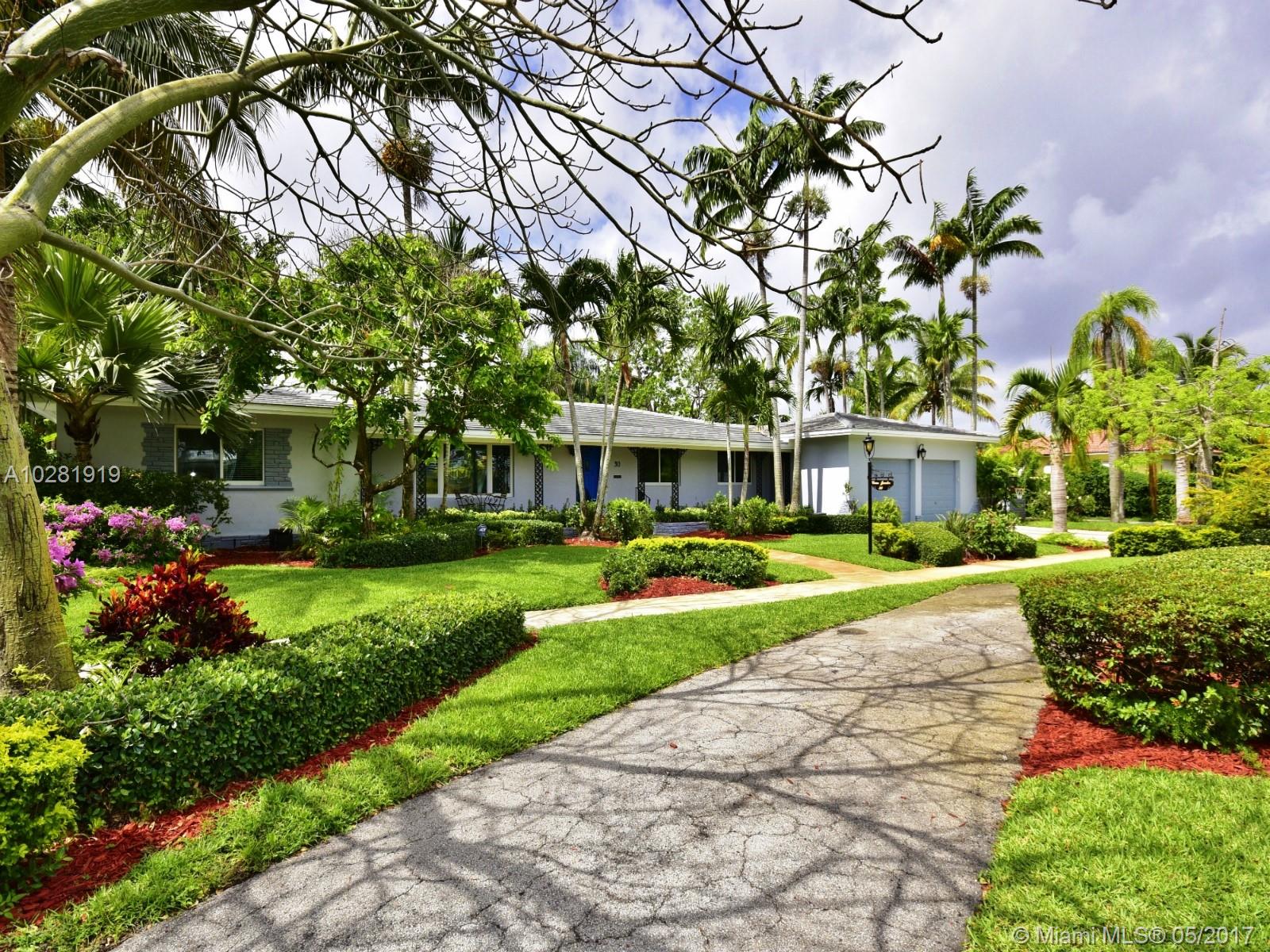 EXQUISITE & FABULOUS 1950'S MIMO STYLE RANCH on a 15,350 SF lot in Miami Shores. THIS SPACIOUS 4,200+ SQFT MIDCENTURY MODERN MASTERPIECE has been beautifully remodeled & features: 5 BD/4.5 BA, high ceilings, wood & terrazzo floors, impact windows & 2 car garage. Gorgeous light filled open living spaces, huge & open eat-it kitchen w/ new appliances, new roof & more! Enjoy the homes private & expansive outdoor living areas,covered patio & magnificent resort style pool surrounded by tropical landscaping.