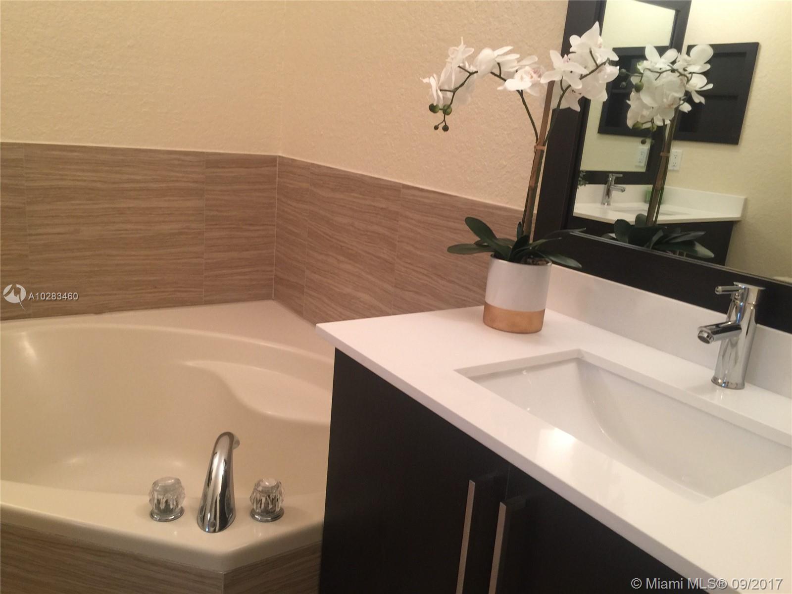 Gorgeous home-Mediterranean styled Island at Doral. Fully renovated with high-end materials and fixtures. Ceramic tile on 1st and durable Berber carpeting on 2nd floor. New kitchen with solid wood cabinets, granite counters with a sleek glass backsplash plus new stainless steel appliances! A total of 4 bedrooms and 3 full bathrooms updated with modern custom-made wood vanities and designer fixtures. One bedroom and a full bath located on the 1st floor, perfect for guests and privacy, and 3 bedrooms and 2 full baths on the 2nd floor. The Master en suite bath includes a garden tub and separate shower. You will be delighted with the community’s immaculate landscaping and all the amenities including a beautiful clubhouse, pool, tennis courts and a full gym. Over $35K in remodeling features!