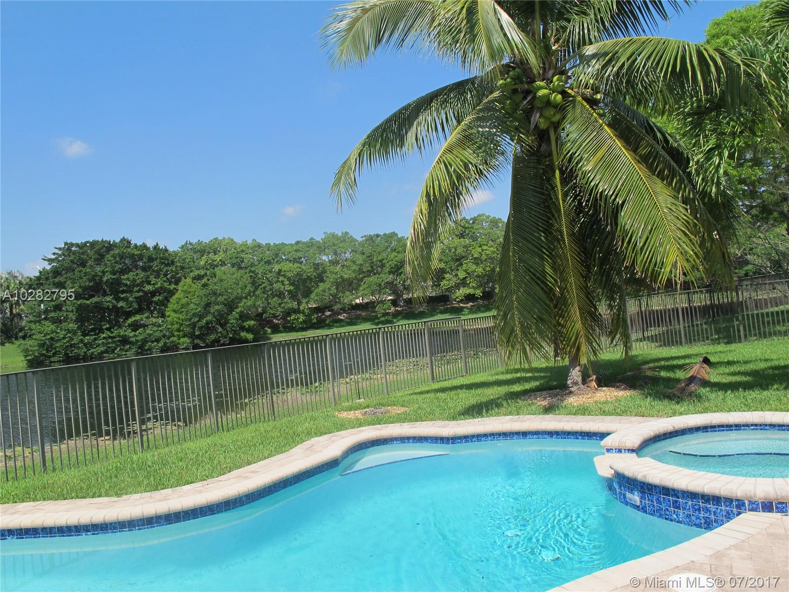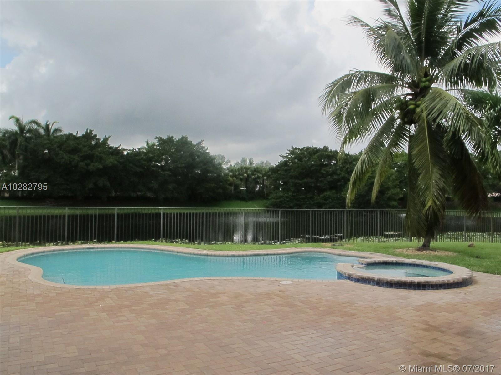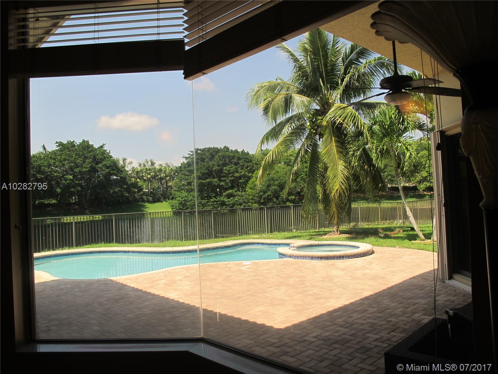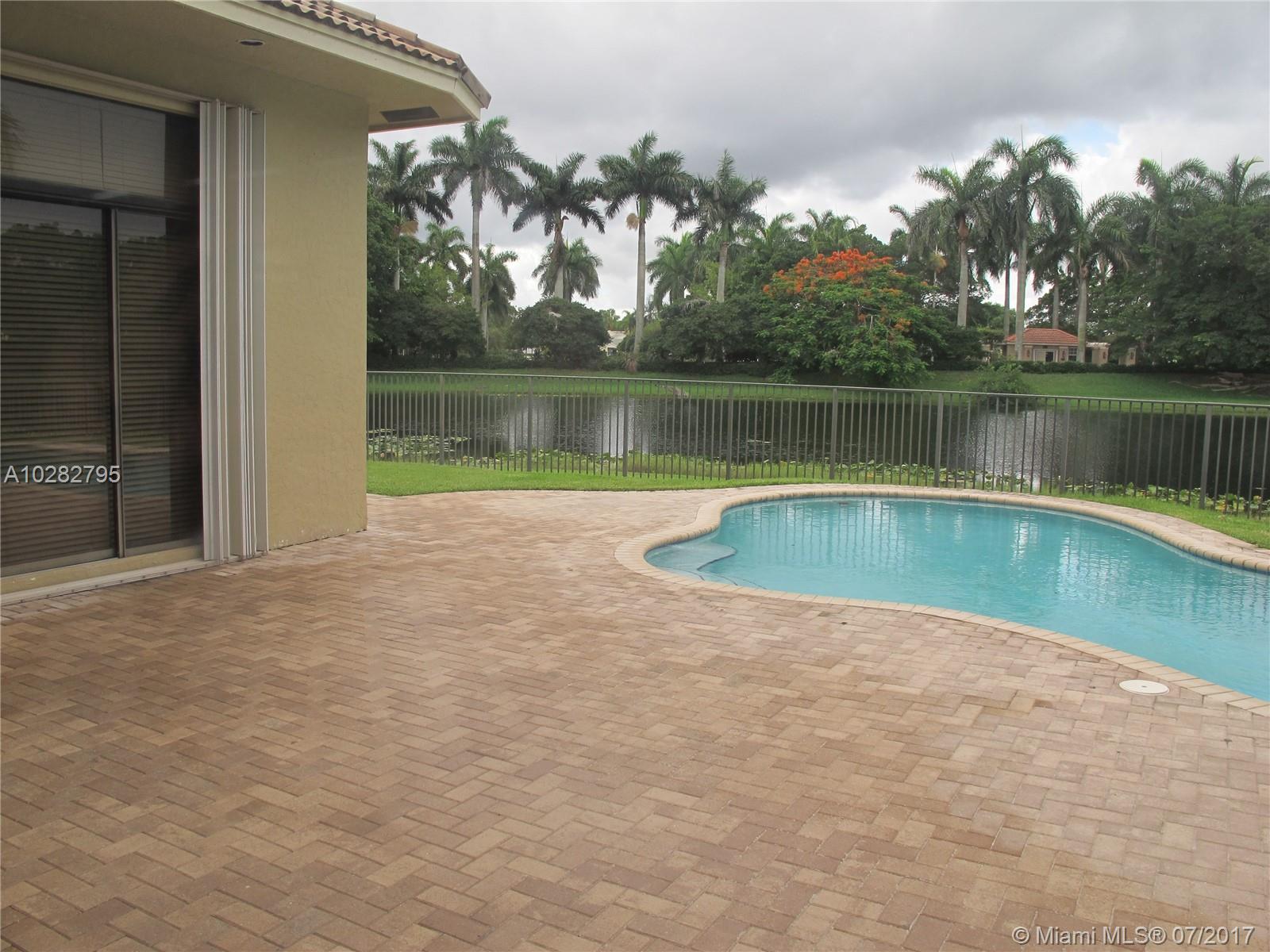 5/3 one-story lakefront home on cul-de-sac with 15' volume ceilings & crown molding throughout. Jacuzzi tub & stand-up shower in master bath. 5th bedroom can be used as an office/den. Walk-in closets, Kitchen has granite countertops with breakfast bar, stainless steel appliances, 32" cabinets, cooktop and self-cleaning wall oven. Backyard is fenced with pool, brick pavers, and overlooks the lake. Tropical landscaping. Close to A+ schools and shopping center including Publix & CVS. A MUST SEE! Also listed for Rent. Owner is very motivated to sell.