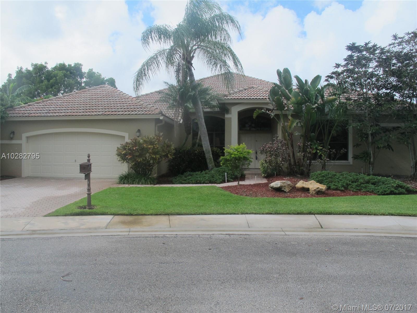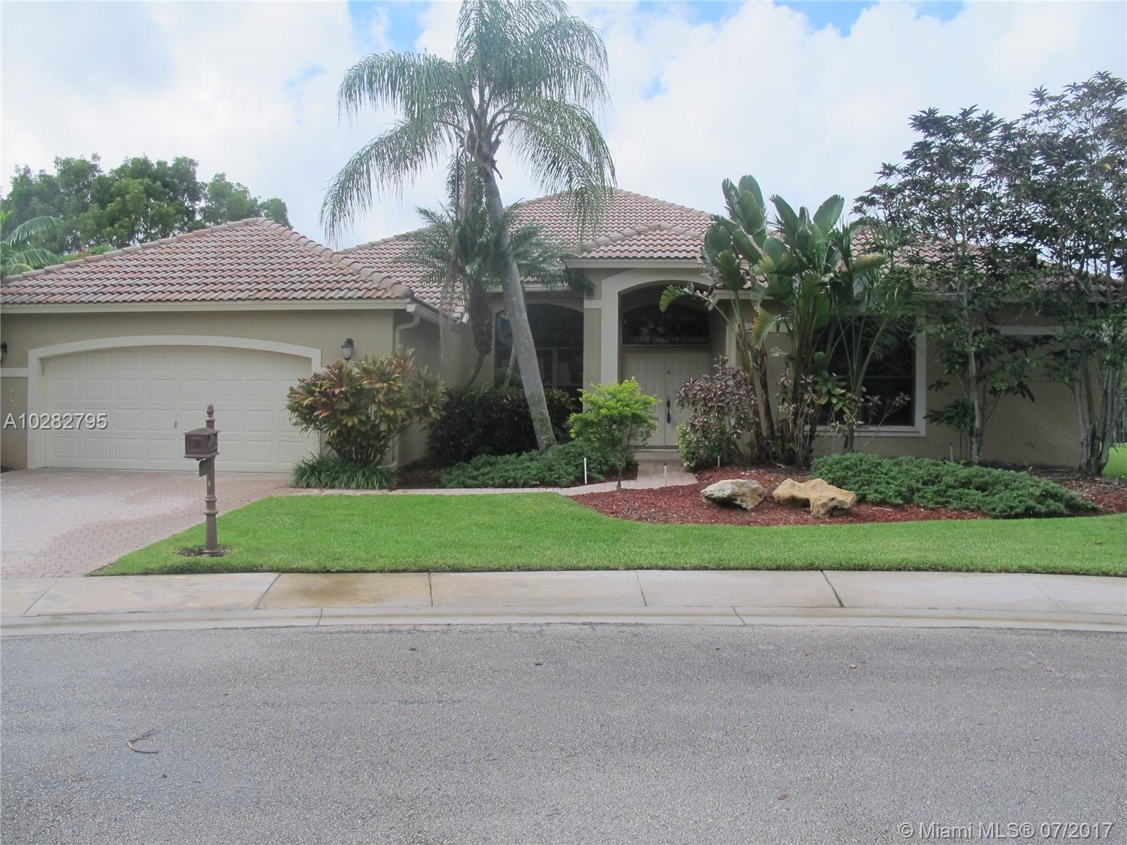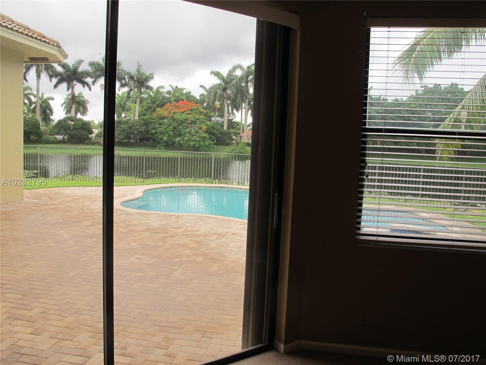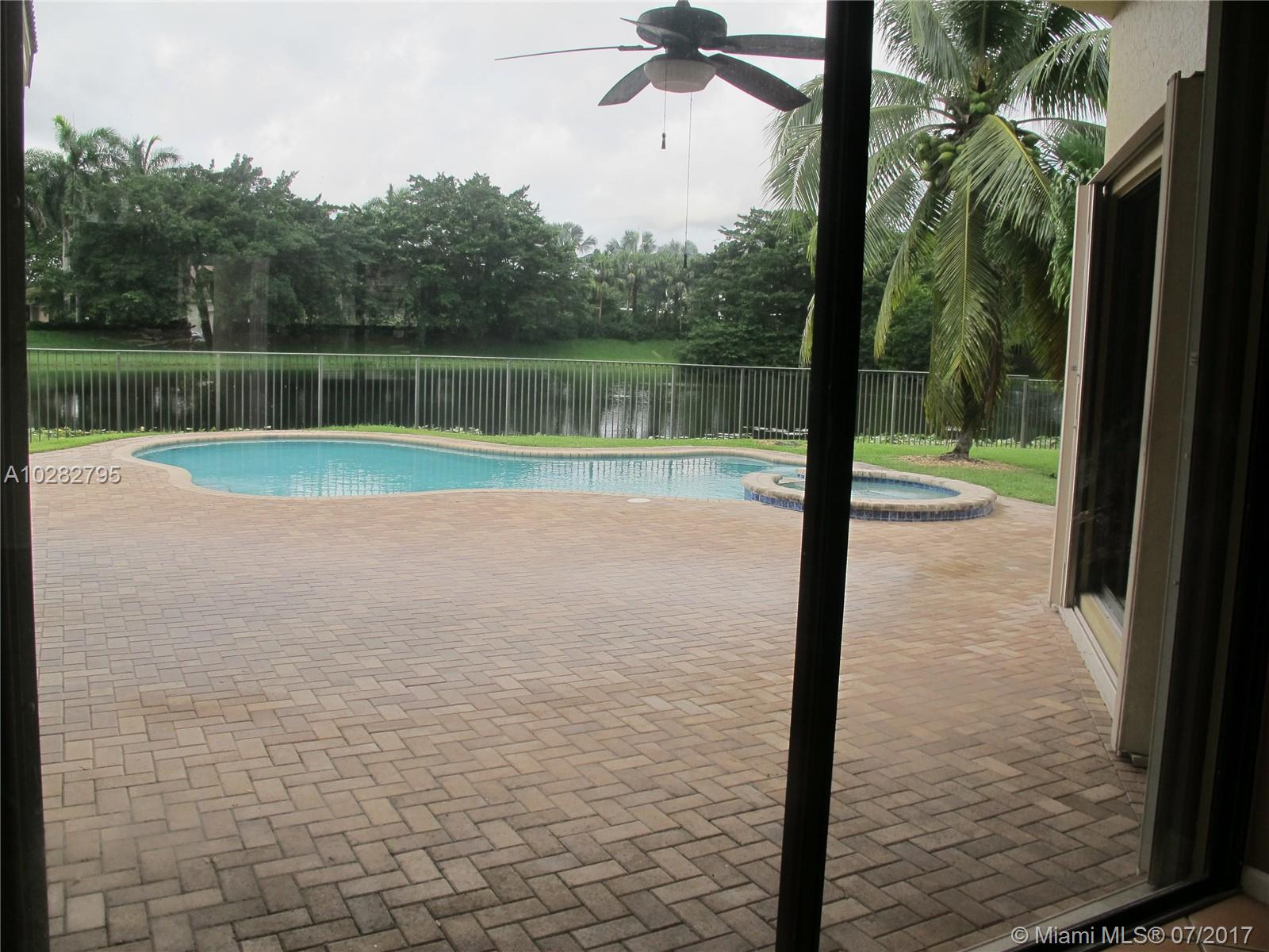 5/3 one-story lakefront home on cul-de-sac with 15' volume ceilings & crown molding throughout. Jacuzzi tub & stand-up shower in master bath. 5th bedroom can be used as an office/den. Walk-in closets, Kitchen has granite countertops with breakfast bar, stainless steel appliances, 32" cabinets, cooktop and self-cleaning wall oven. Backyard is fenced with pool, brick pavers, and overlooks the lake. Tropical landscaping. Close to A+ schools and shopping center including Publix & CVS. A MUST SEE! Also listed for Rent. Owner is very motivated to sell.