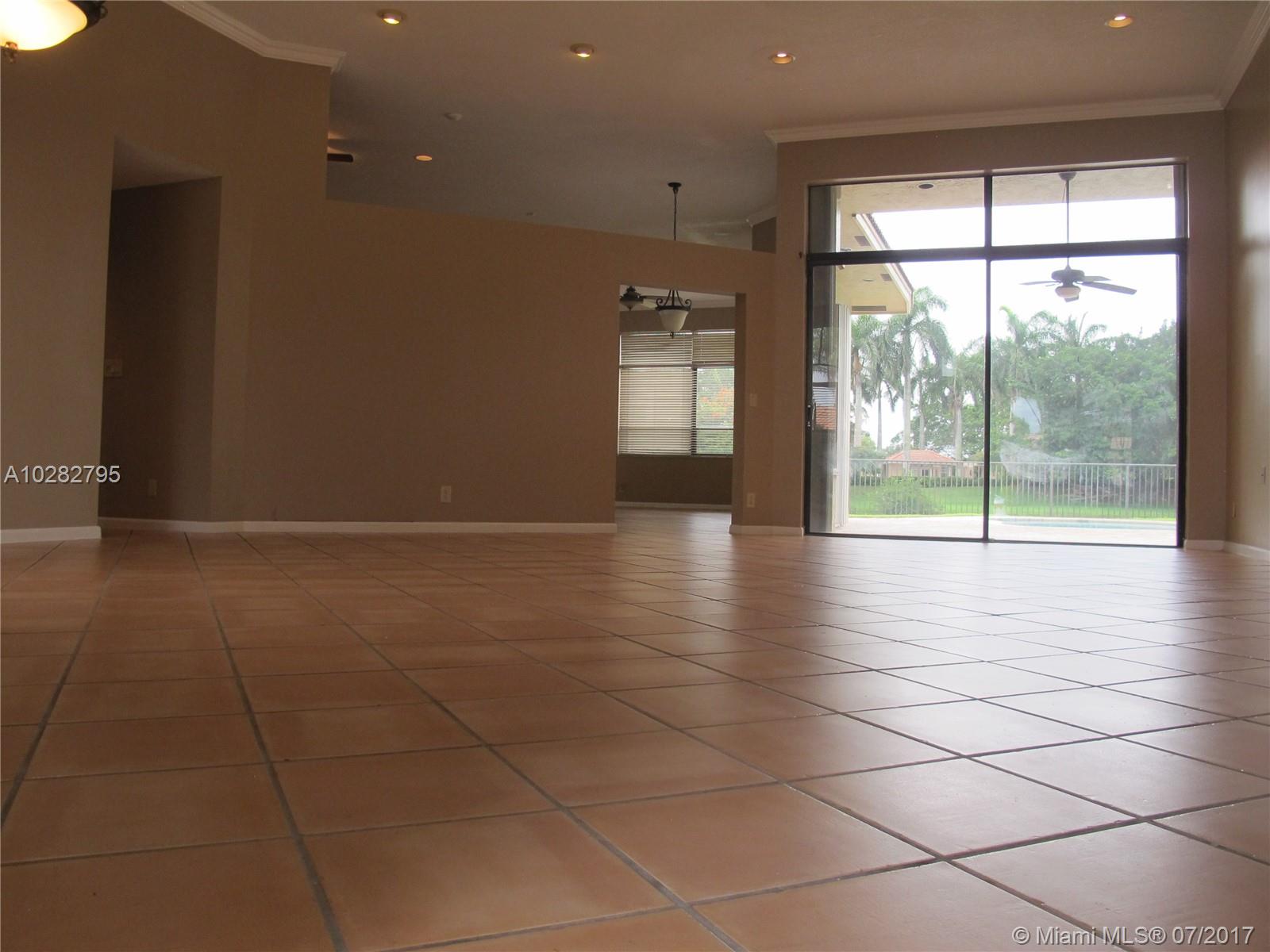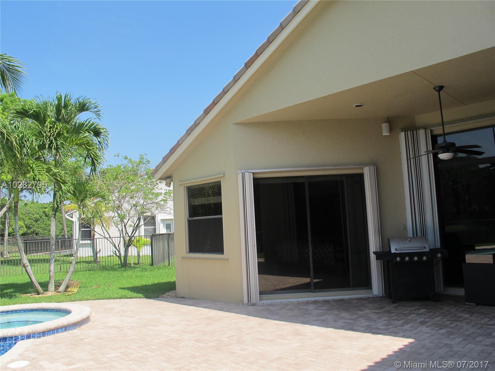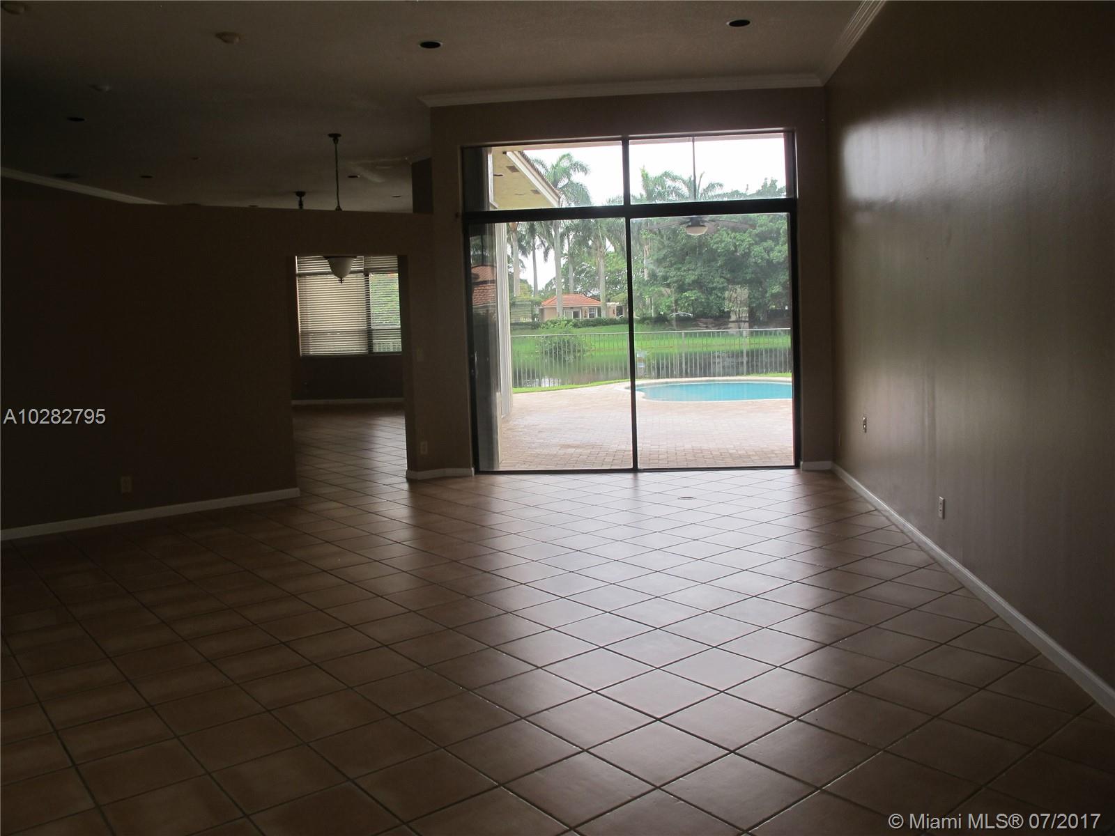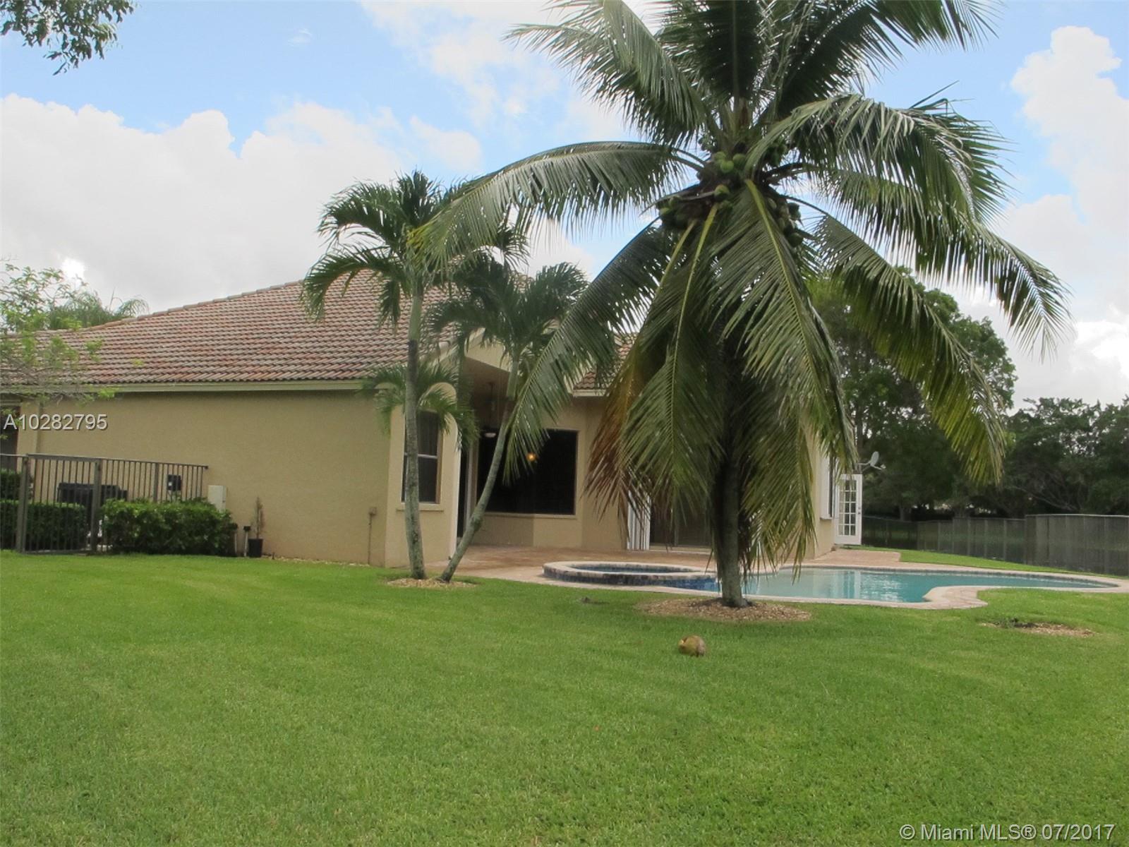 5/3 one-story lakefront home on cul-de-sac with 15' volume ceilings & crown molding throughout. Jacuzzi tub & stand-up shower in master bath. 5th bedroom can be used as an office/den. Walk-in closets, Kitchen has granite countertops with breakfast bar, stainless steel appliances, 32" cabinets, cooktop and self-cleaning wall oven. Backyard is fenced with pool, brick pavers, and overlooks the lake. Tropical landscaping. Close to A+ schools and shopping center including Publix & CVS. A MUST SEE! Also listed for Rent. Owner is very motivated to sell.