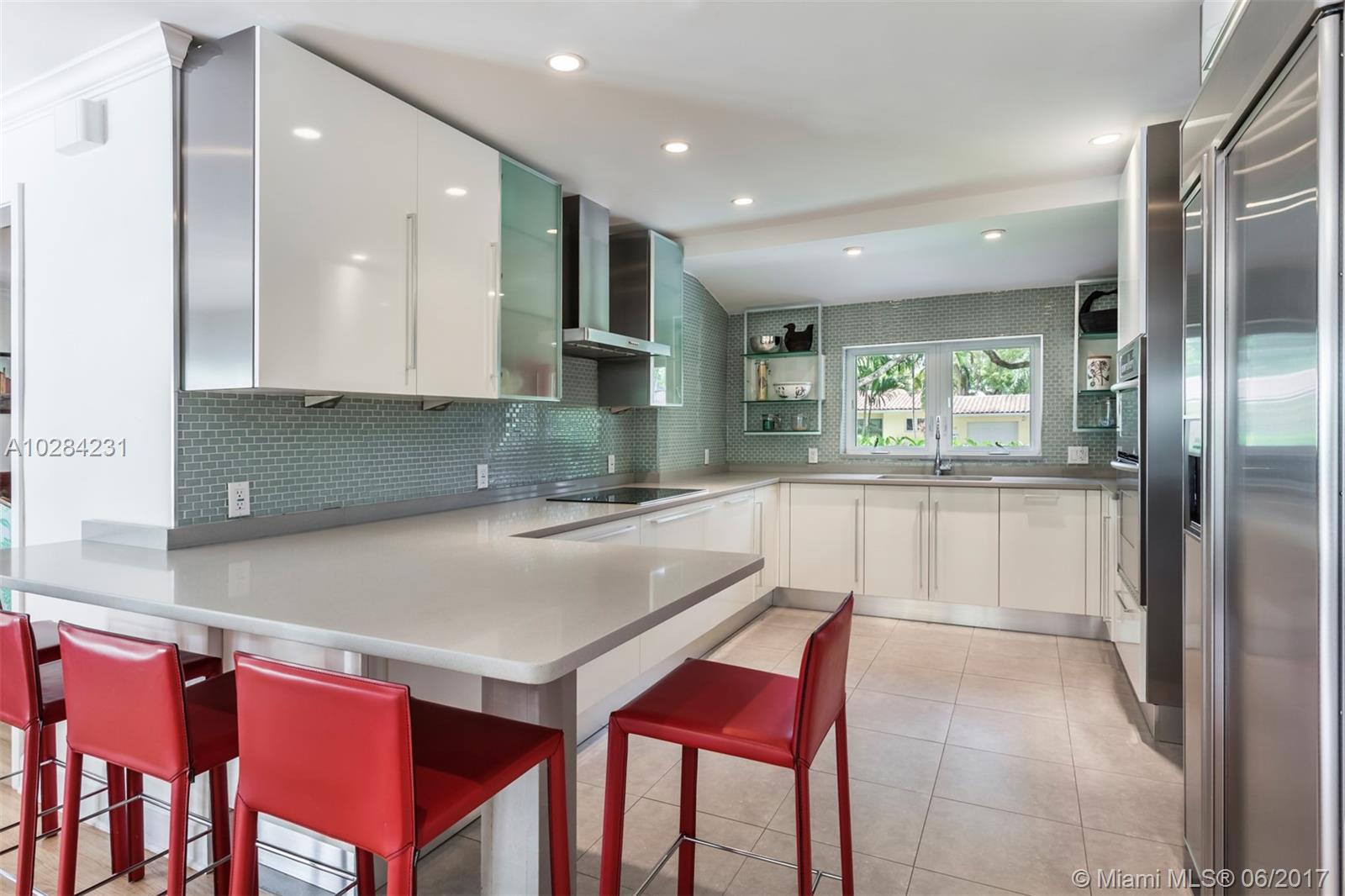 Located in Coral Gables near Old Cutler Road, this 4 BR/4 BA home has been beautifully renovated. French doors and spacious layout contribute to the bright nature of the home. The gourmet Mia Cucina kitchen features Scavolini cabinetry, mosaic tile backsplash, porcelain tile floors and top-of-the-line appliances. Gorgeous wood floors are used throughout the homes living spaces and bedrooms. In addition to a living, dining and family room, the home also has an office. The master suite has his-and-hers walk-in closets with built-ins and French doors that open to the backyard. Great for entertaining, the wood paneled covered patio with ceiling fans and speakers overlooks the heated saltwater pool. 4th bedroom has been converted to an office.