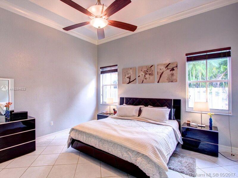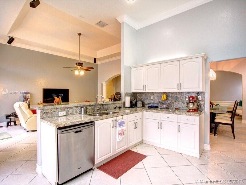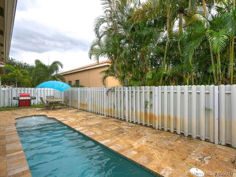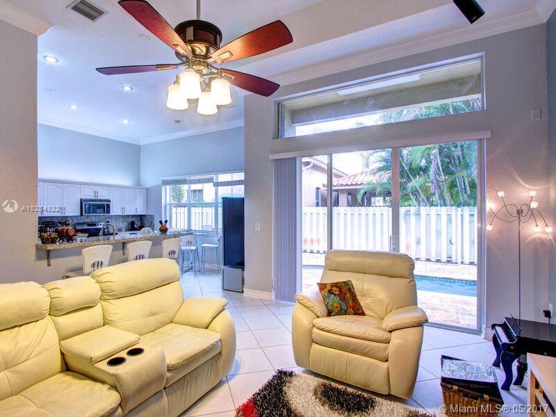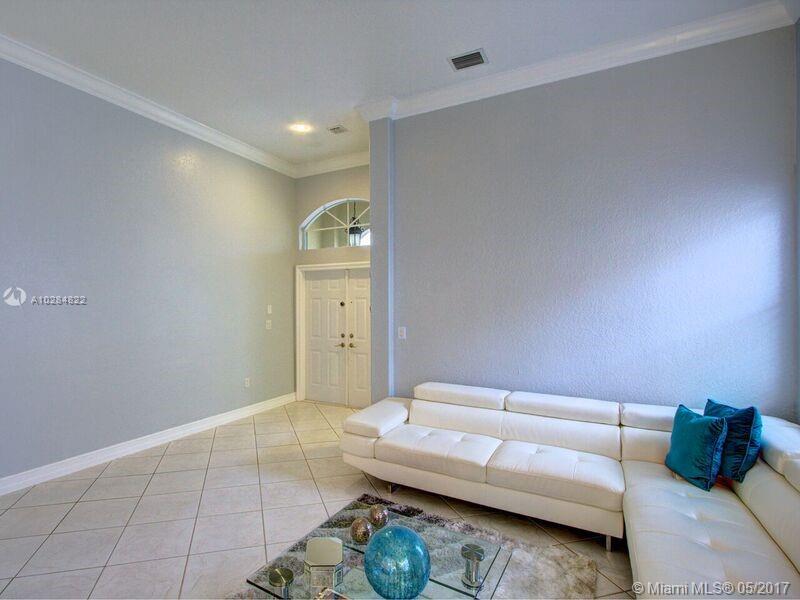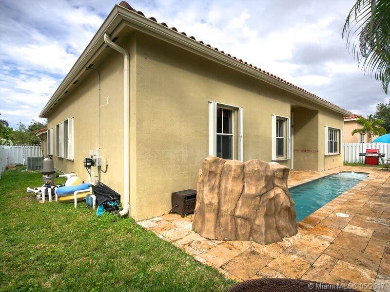 Beautiful cozy 1 story home. This home offers a great open floor plan with high ceilings. 5 bedrooms, 3 full bathrooms, 3 car garage. Lap pool with water cascade. Renovated kitchen with newer appliances. Master bedroom with custom built walk-in closets, new High Efficency A/C. All walls have mid outlets for flat screen TVs. Hurricane shutters. Home is located one light away from the highway. Walking distance from schools...