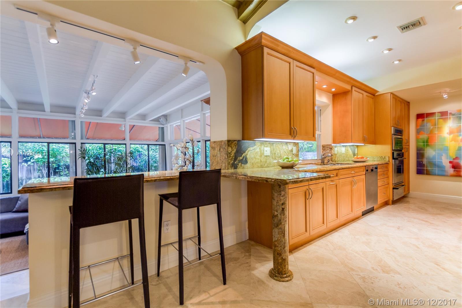 Best Value & Location in Coral Gables!!!Charming S.Gables 5 bedroom/3 baths home on beautiful oak tree lined street w/well maintained sidewalks. Walking distance to Sunset Place, U of M, and Sunset Elementary. Natural light flows through all rooms w/views of lush landscaping on this wide lot. Chicago brick back patio off family room & wraparound backyard.Granite wet Bar entertaining area in large family room. Updated kitchen with Granite countertops Gas Range, Sub-Zero refrig.,SS appliances. Luxurious master bedroom and updated bath with his and her sinks. Fabulous Natural oak wood flooring in bedrooms & beautifully polished Marble flooring in living,dining,and kitchen. 5th bedroom has optional 2nd entry. Fully fenced yard, Room for large Pool and Accordion storm shutters. Move in ready.