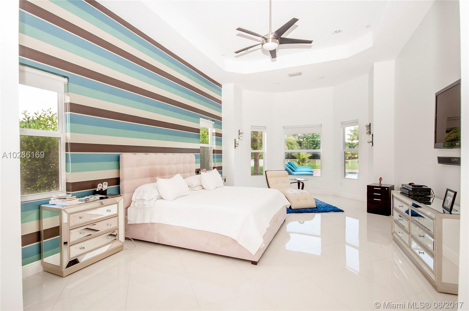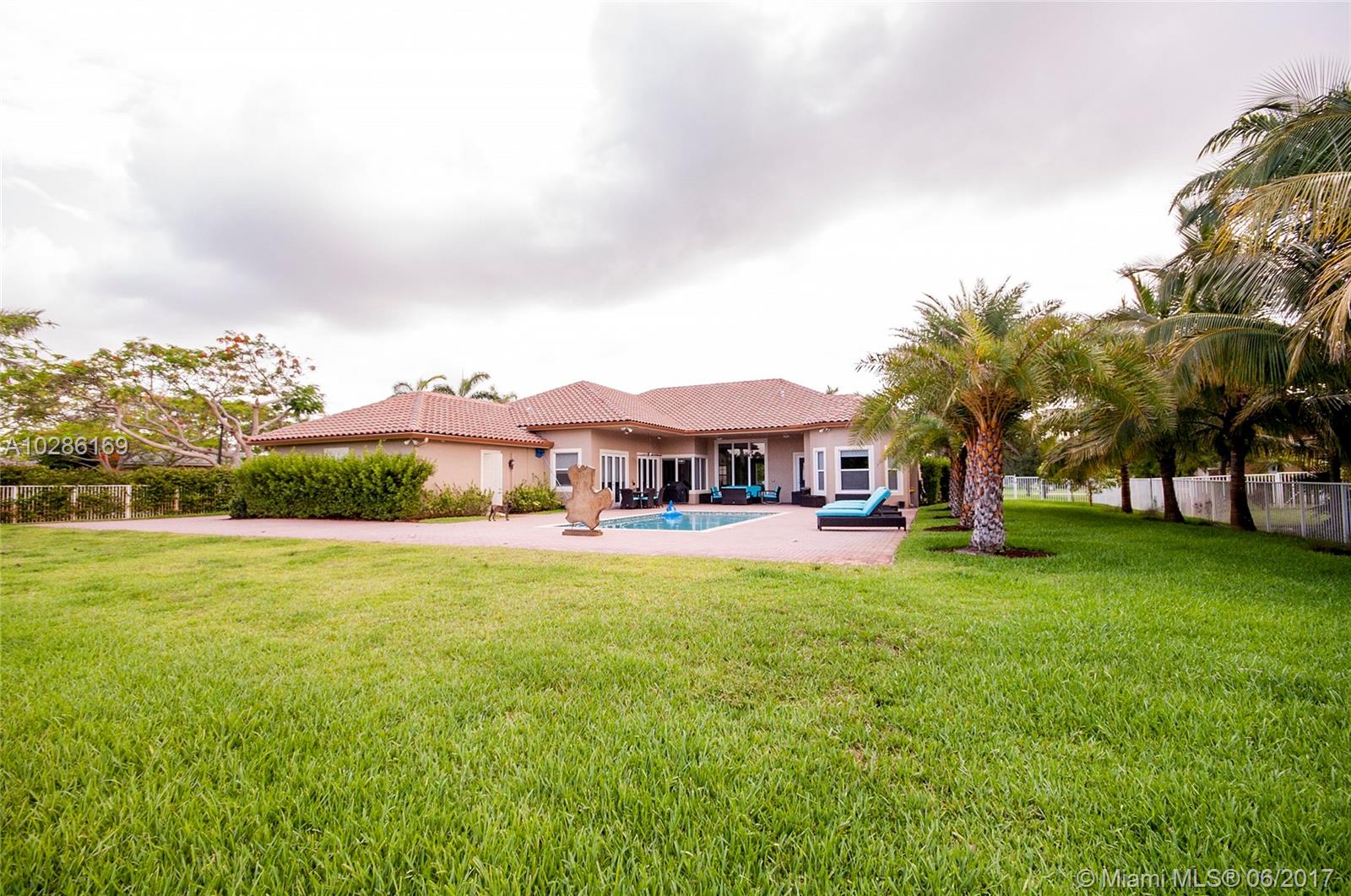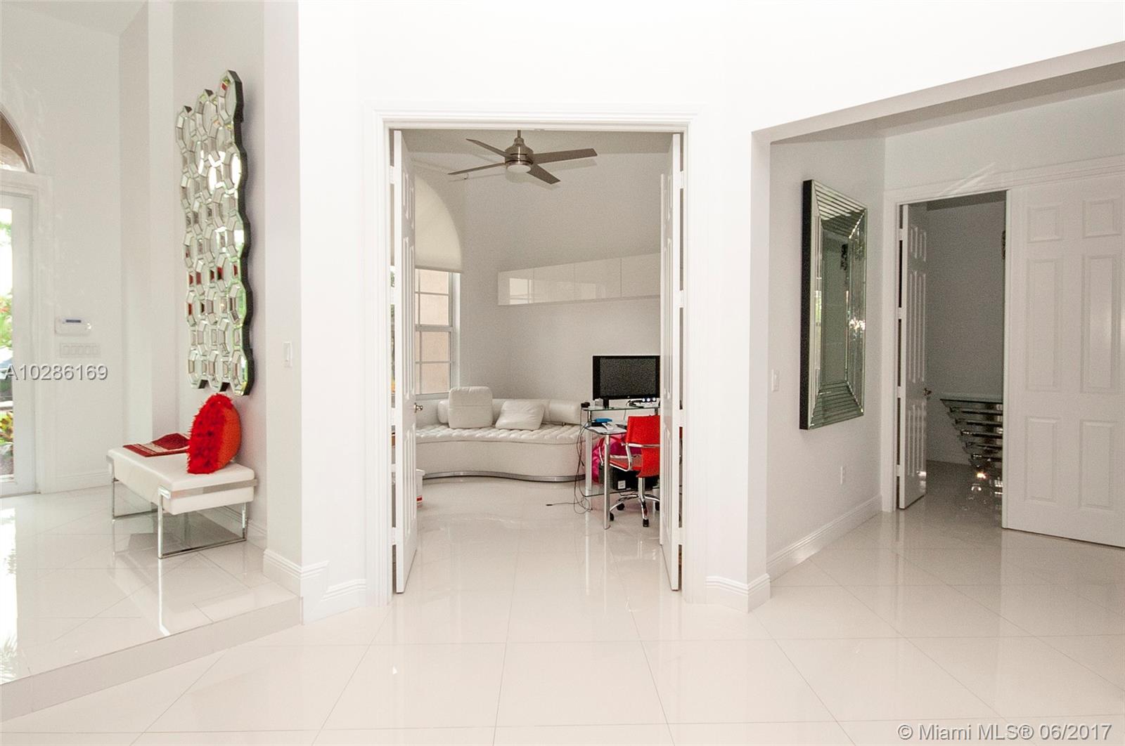 Fabulous 1 story custom made home on over size corner lot in the desirable gated community Grove Creek in Davie.This home has all details you can imagine. Porcelain floor, great kitchen with granite counter top, stainless steel appliances, pantry, formal dinning room. Breakfast area and family room overlooking the pool area with pavers. Huge master bedroom with a design bathroom, dual sinks and closet. The office can be use as a 6th bedroom if needed. 2 oversize garages for 3 and 2 cars. Circular driveway with pavers. Impact windows, alarm system, huge laundry room with cabinets, all closets in the house are custom made.